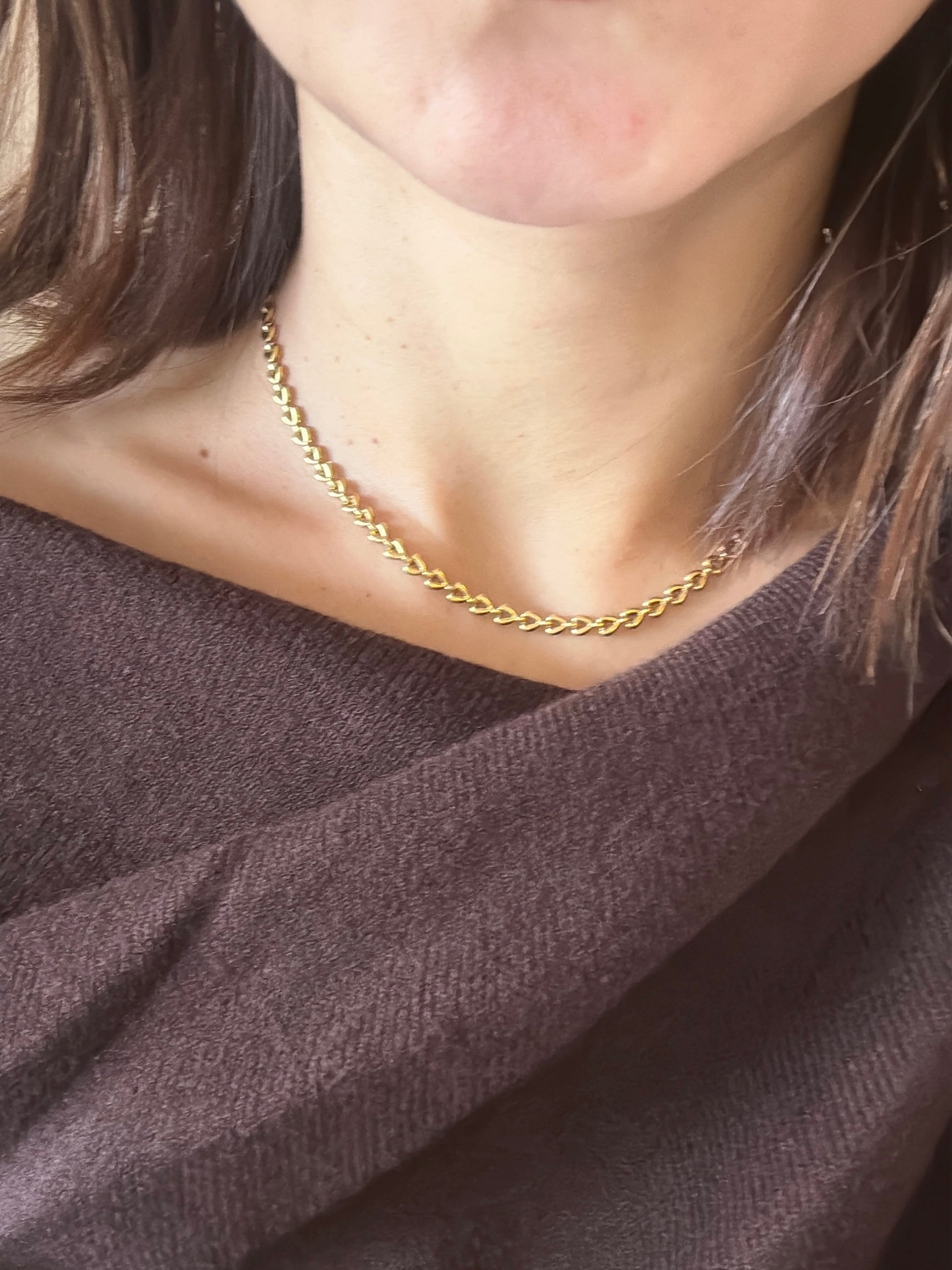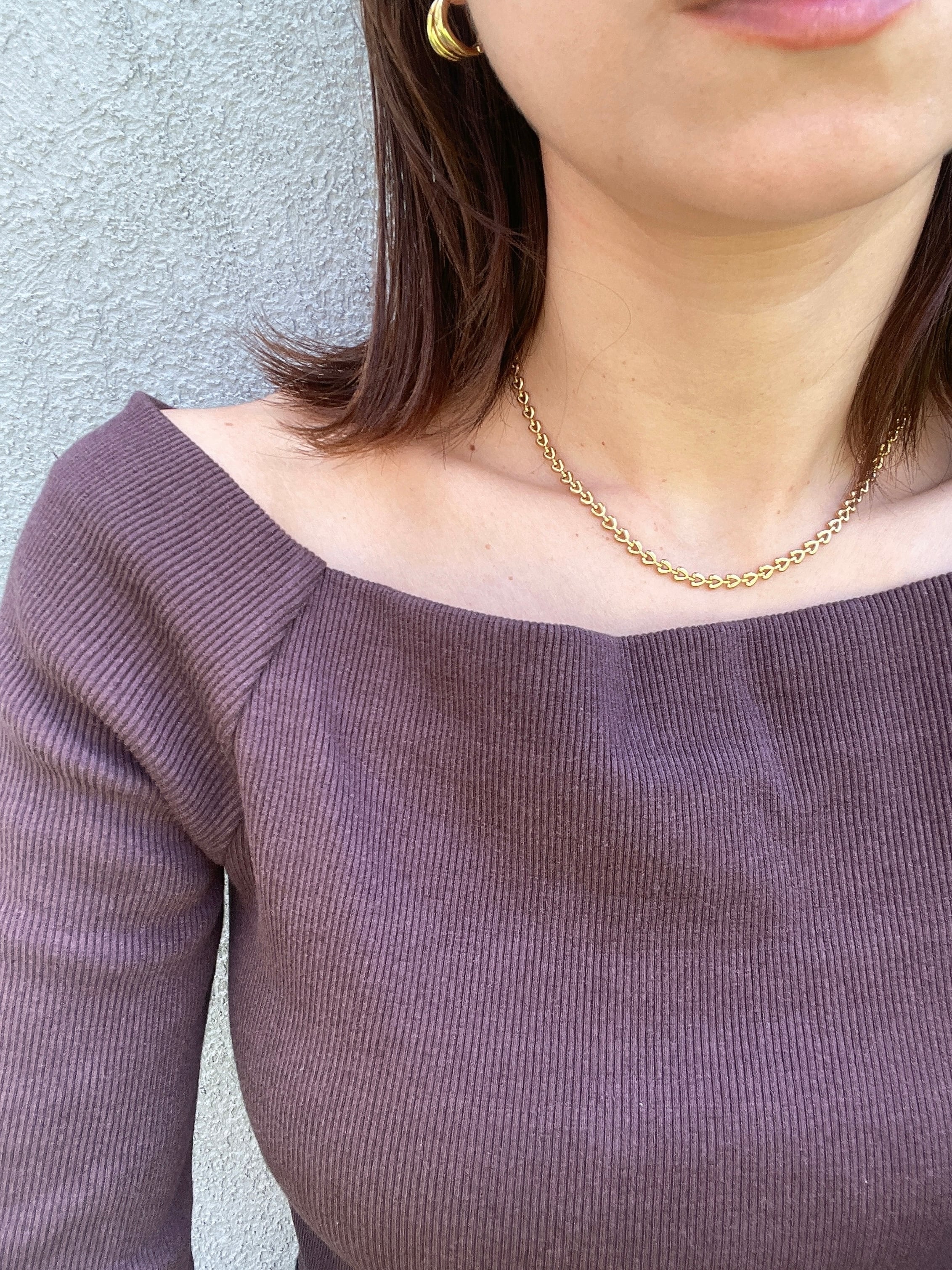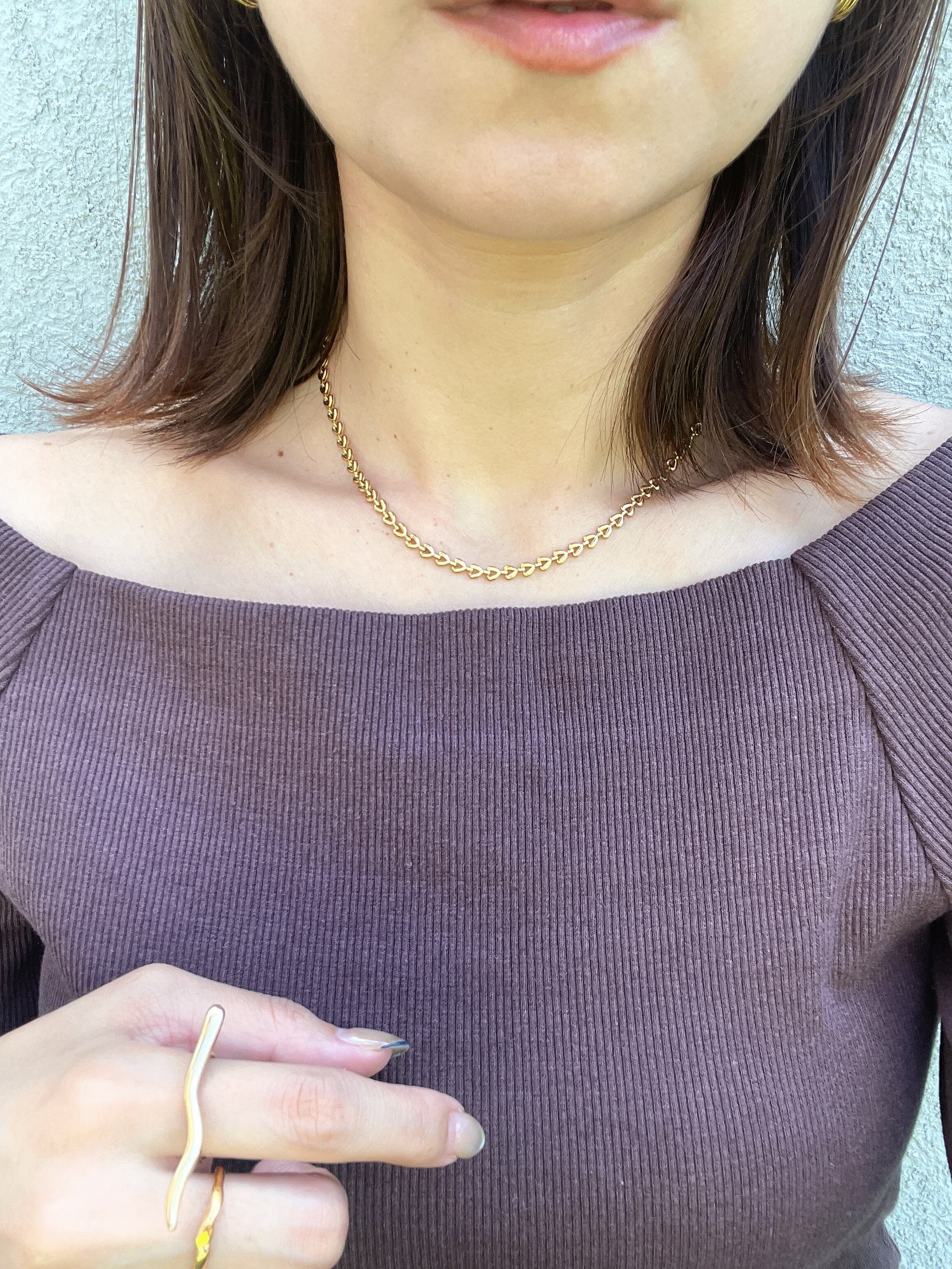 小さなハートモチーフが連なり、程よい存在感を持ちながらも上品な印象に仕上げました。