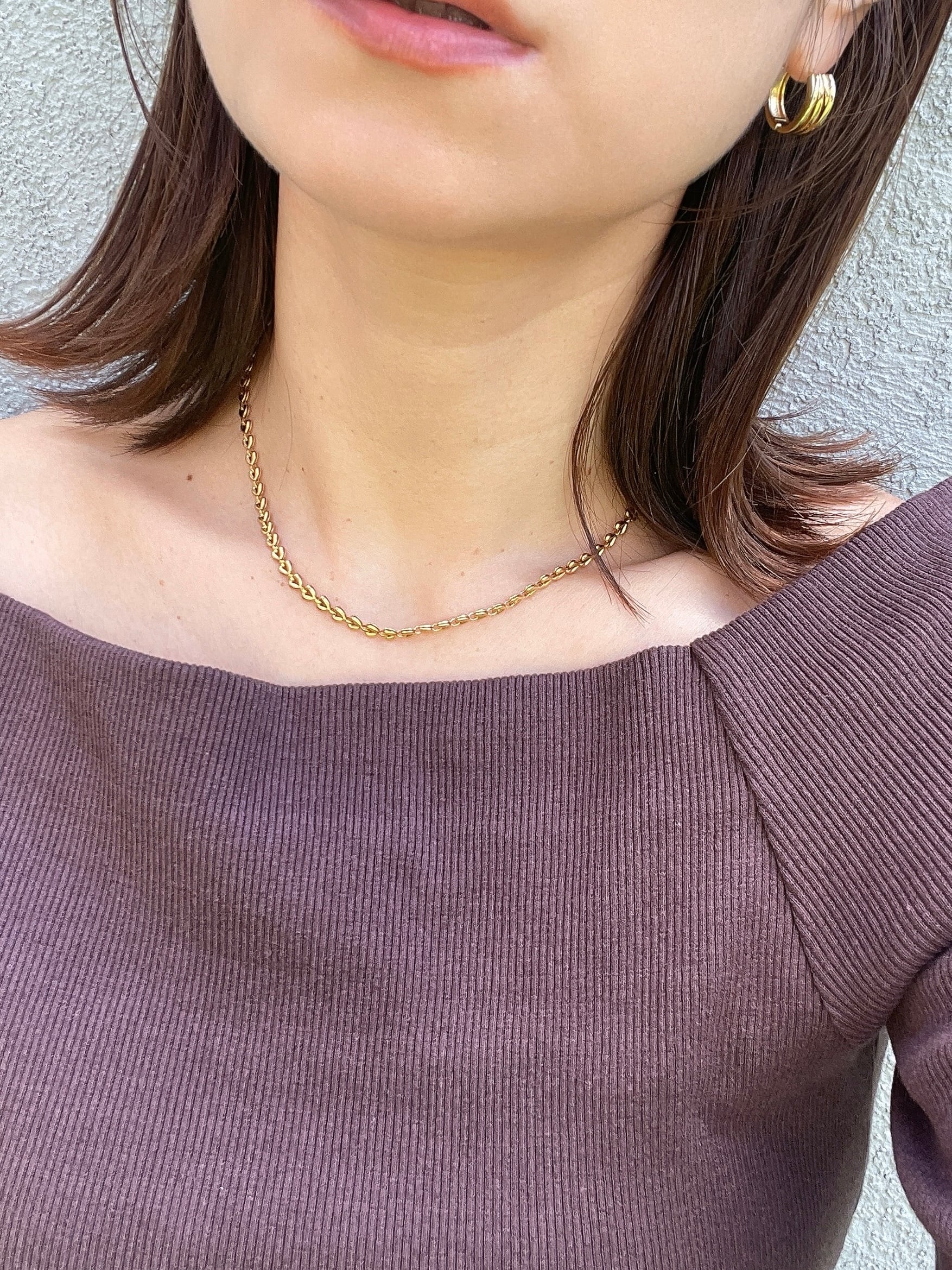 シンプルなTシャツやニットに合わせるだけで華やかさをプラスできるので、コーディネートに自然と溶け込みます。