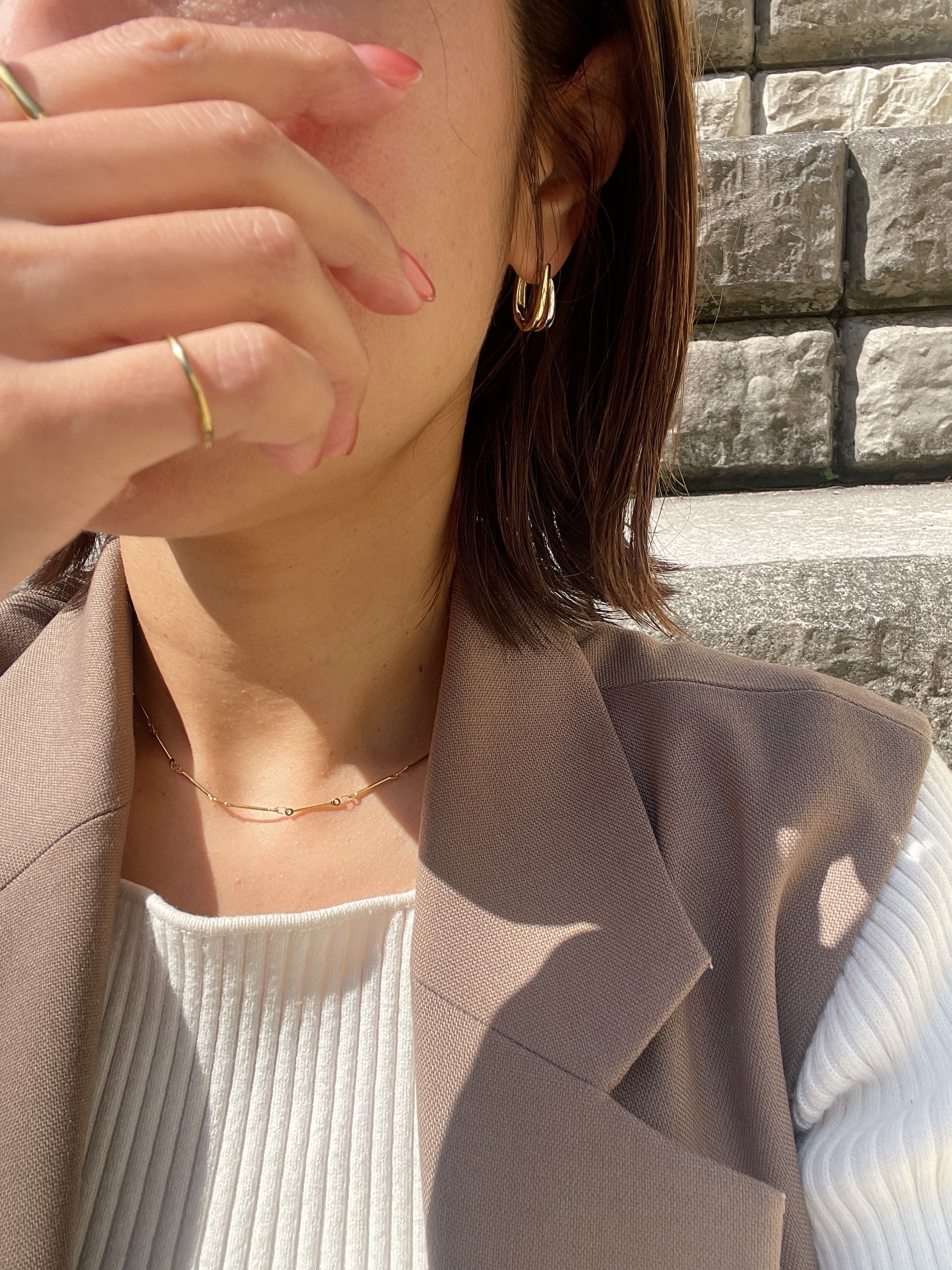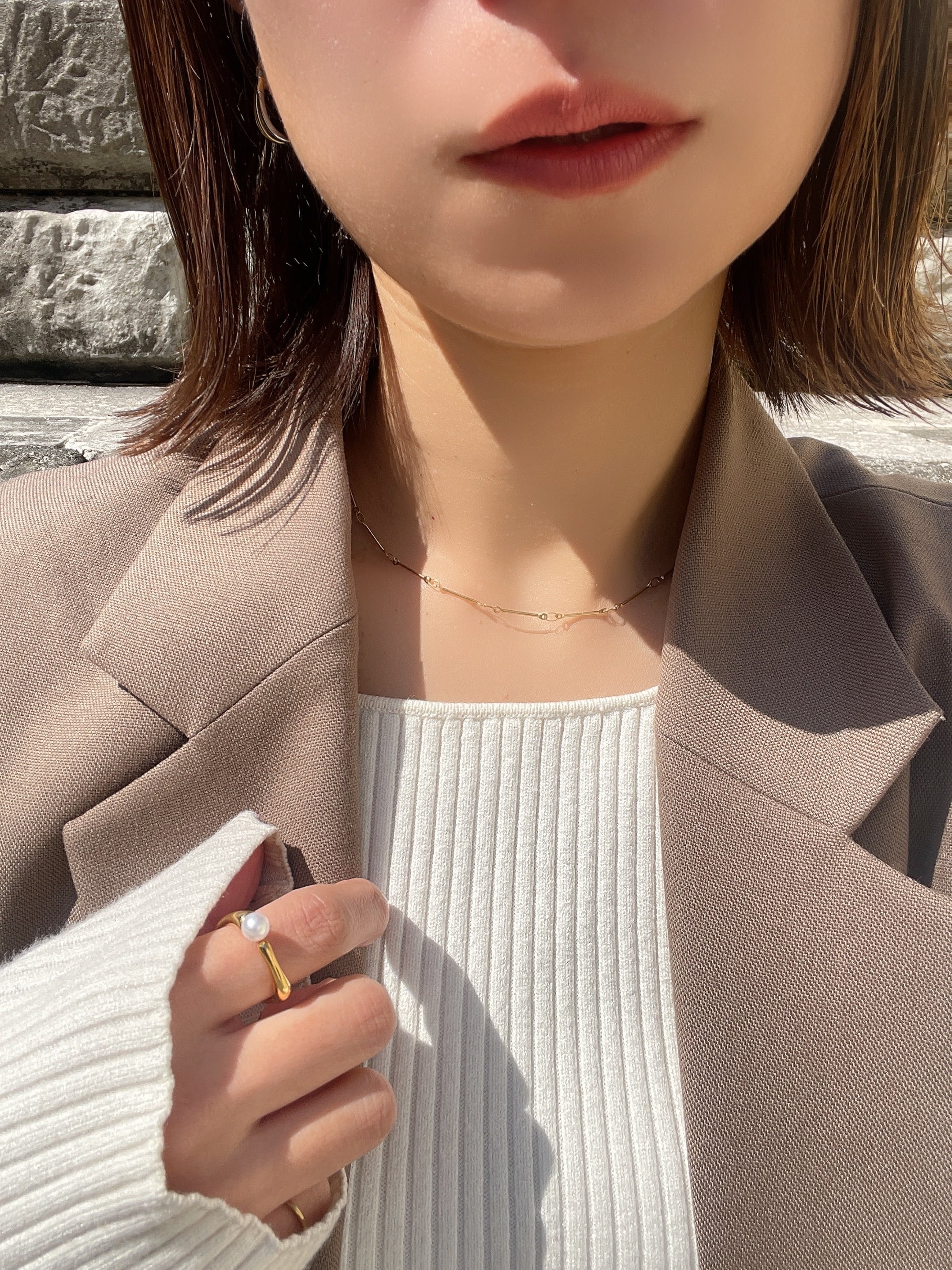 軽量で快適な着け心地で、長時間の着用でもストレスフリー。シンプルなデザインだからこそ、重ね付けや他のジュエリーとの相性も抜群です
