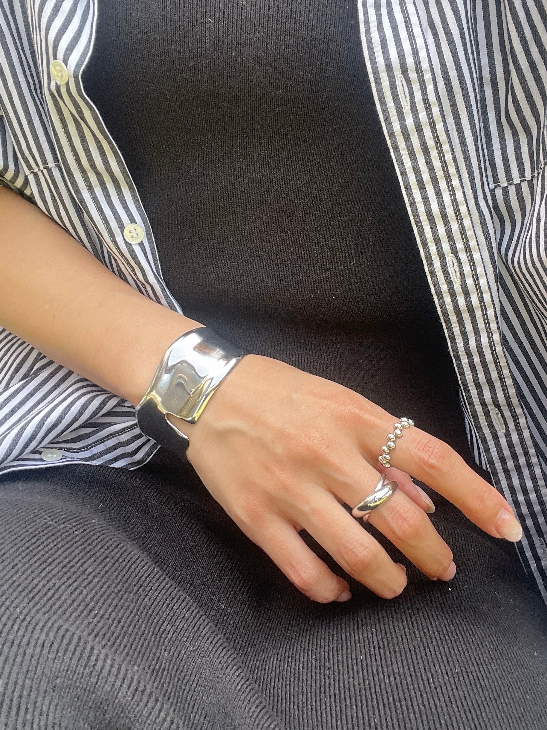 艶やかなステンレス素材が、手元にモードなアクセントをプラスします。