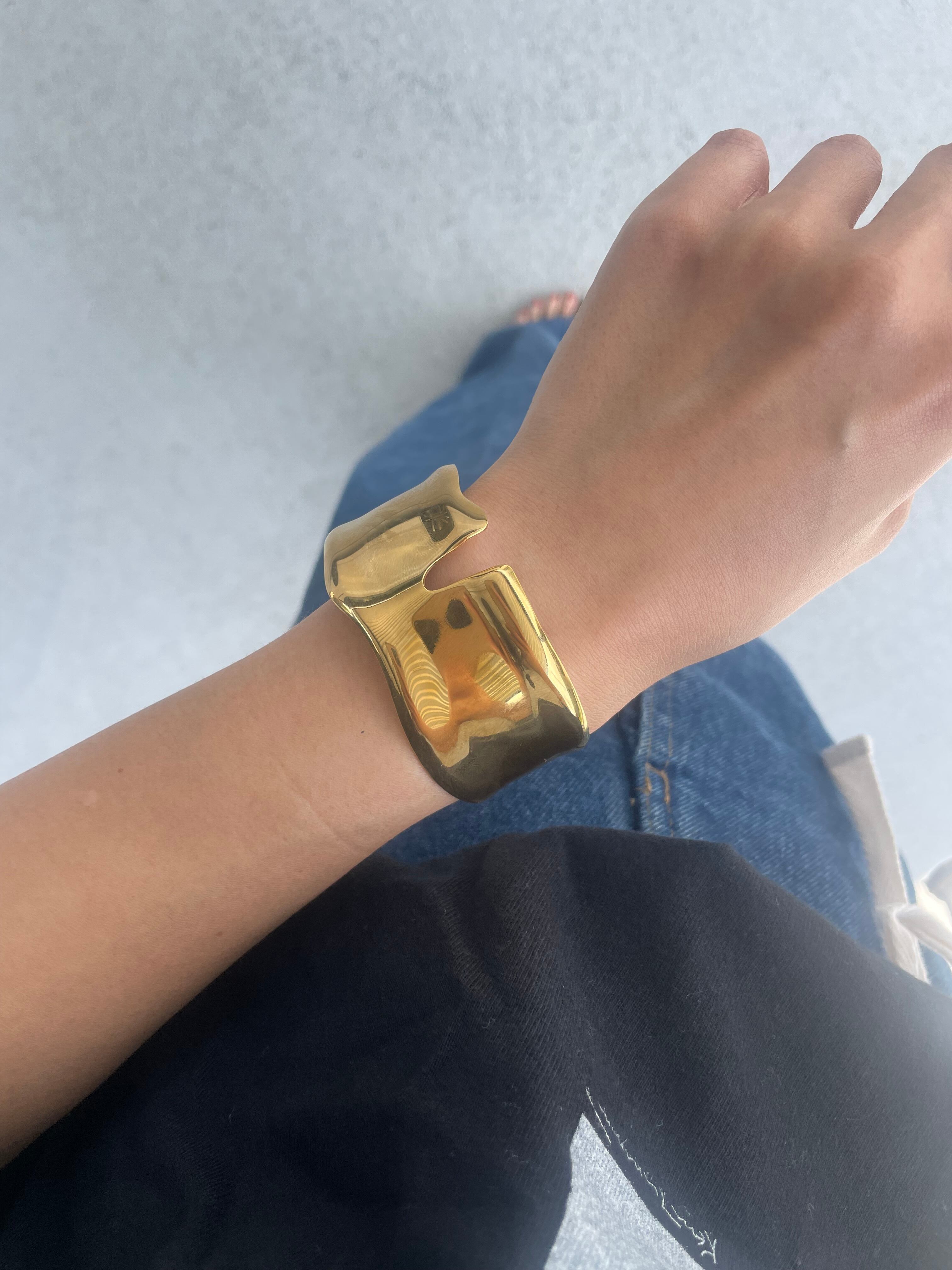 大胆に波打つようなシルエットが目を惹く、ワイドオープンバングル。