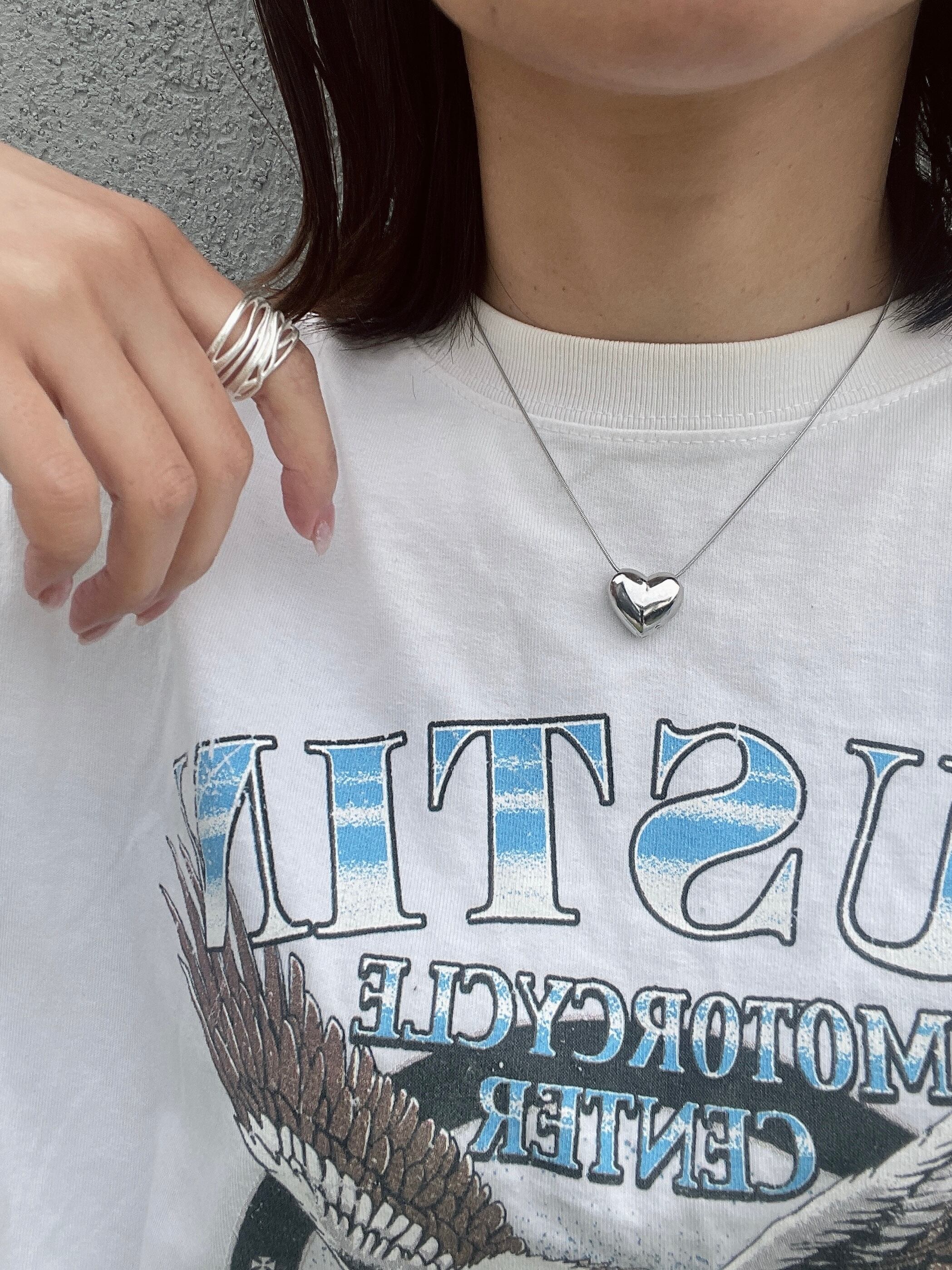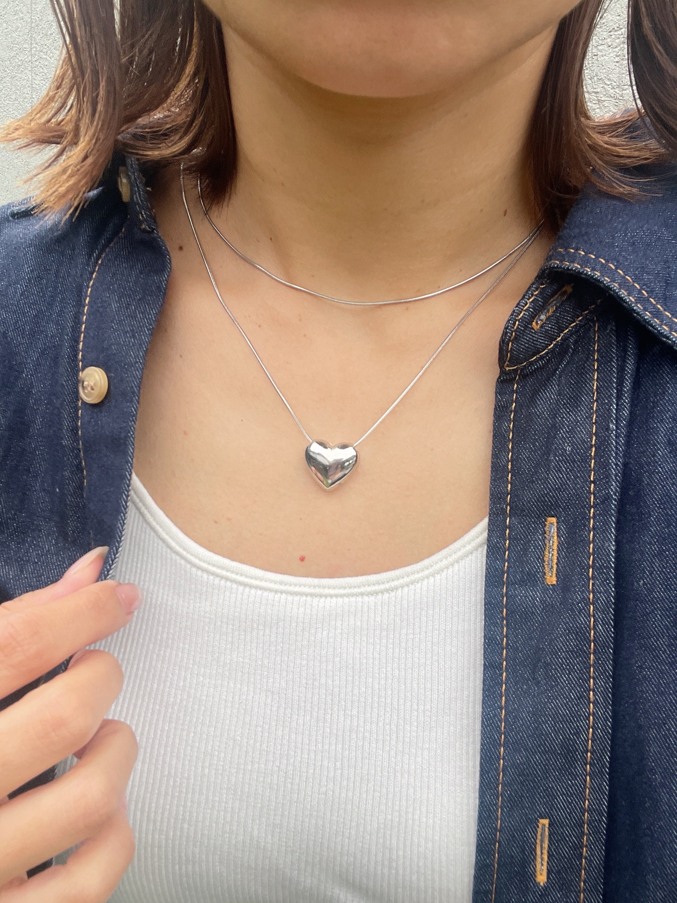 ころんと丸みのあるシルバーハートが、胸元でさりげなく輝くネックレス。