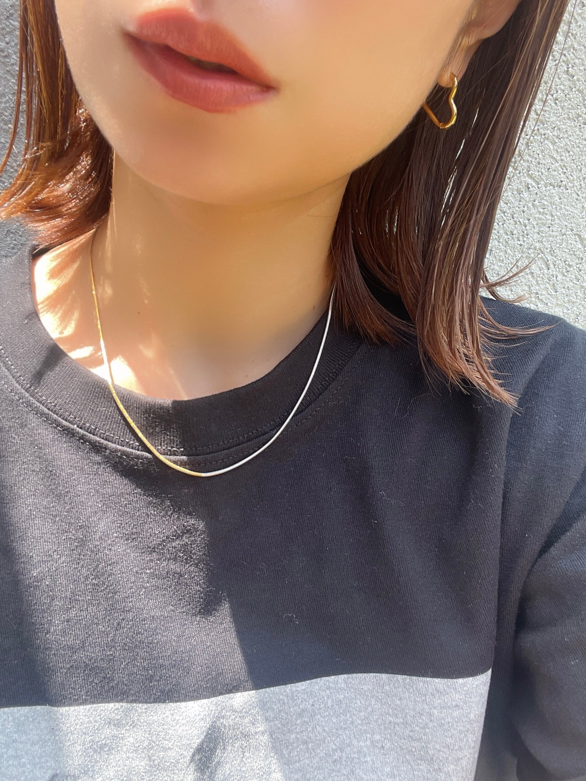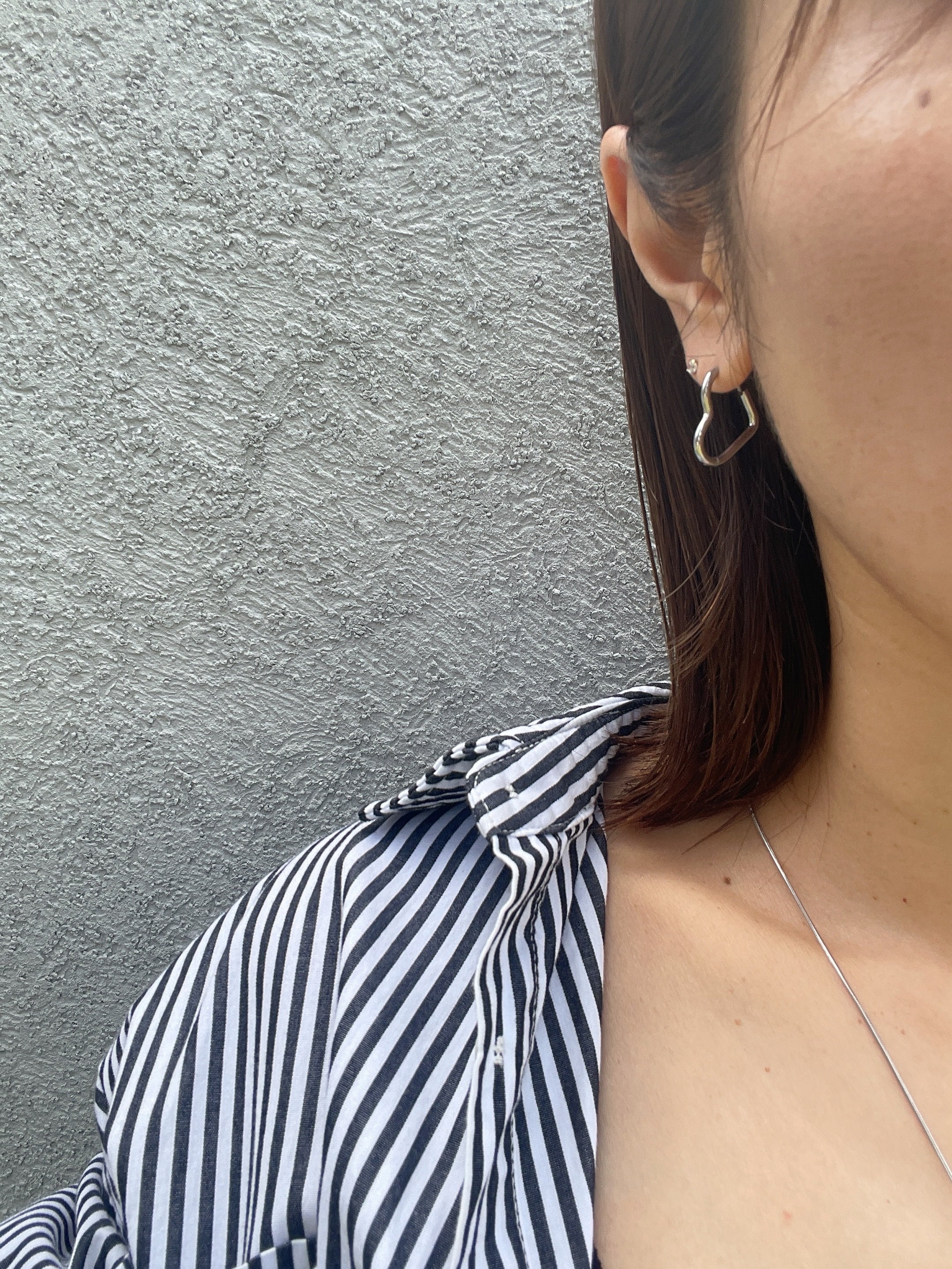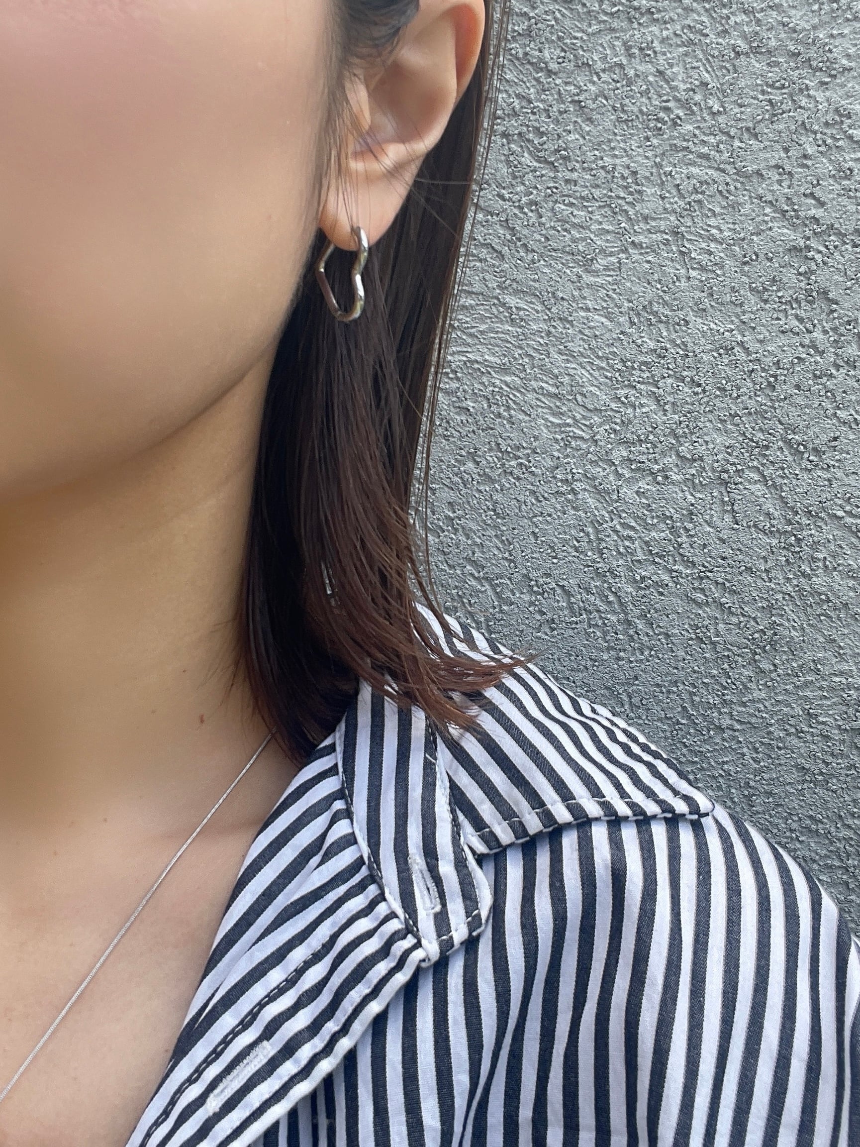 ぷっくりとした立体的なハートが、耳元でさりげなく存在感を放つフープピアス。