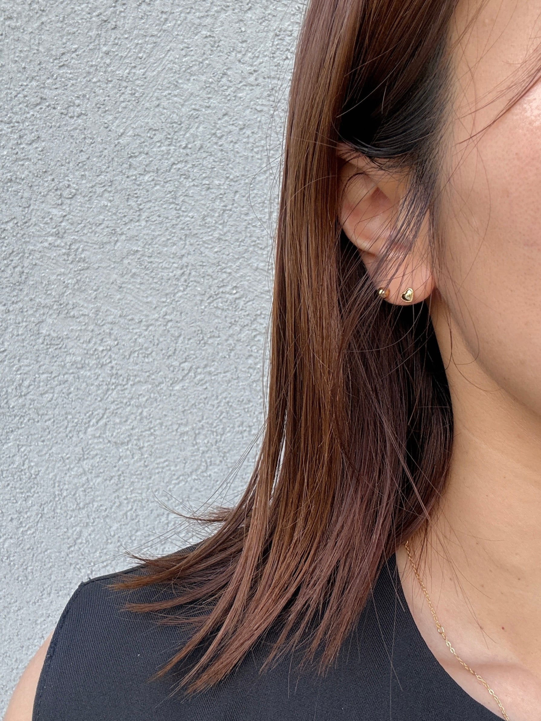 ぷっくりとしたハートが光を柔らかく反射し、顔まわりにさりげない愛らしさをプラス。