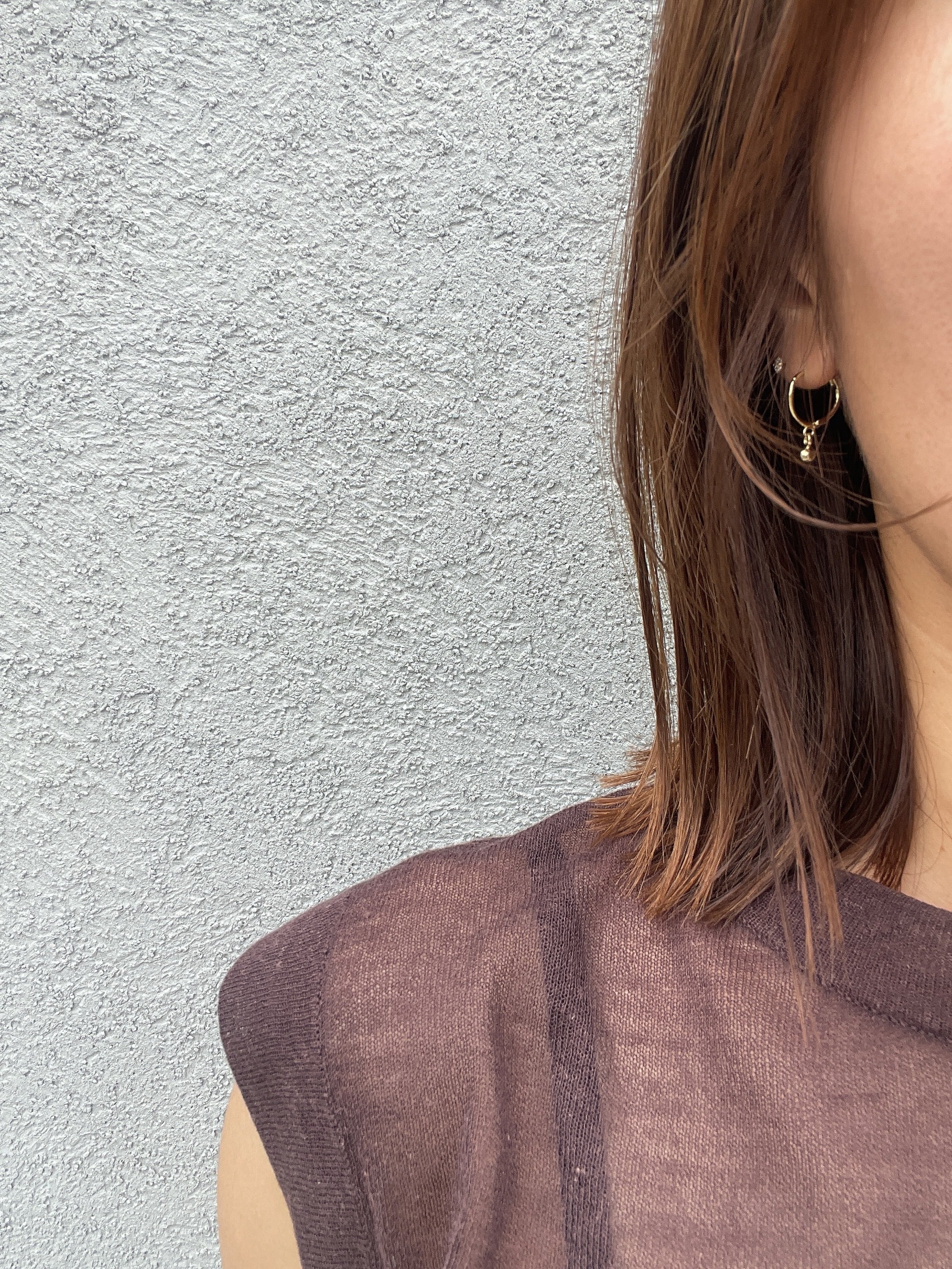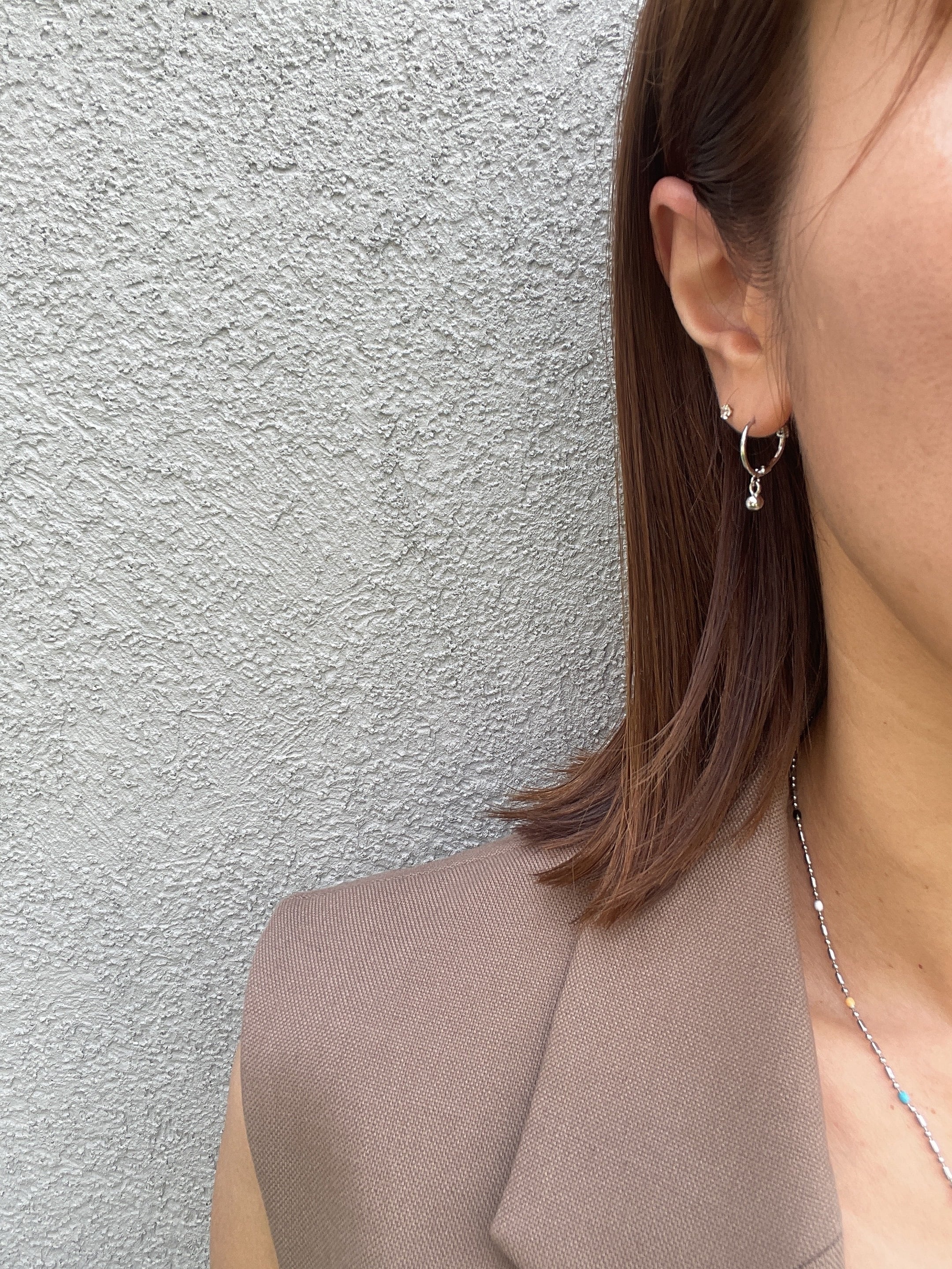 小さなボールが揺れる、シンプルだけど目を惹くミニフープピアス。