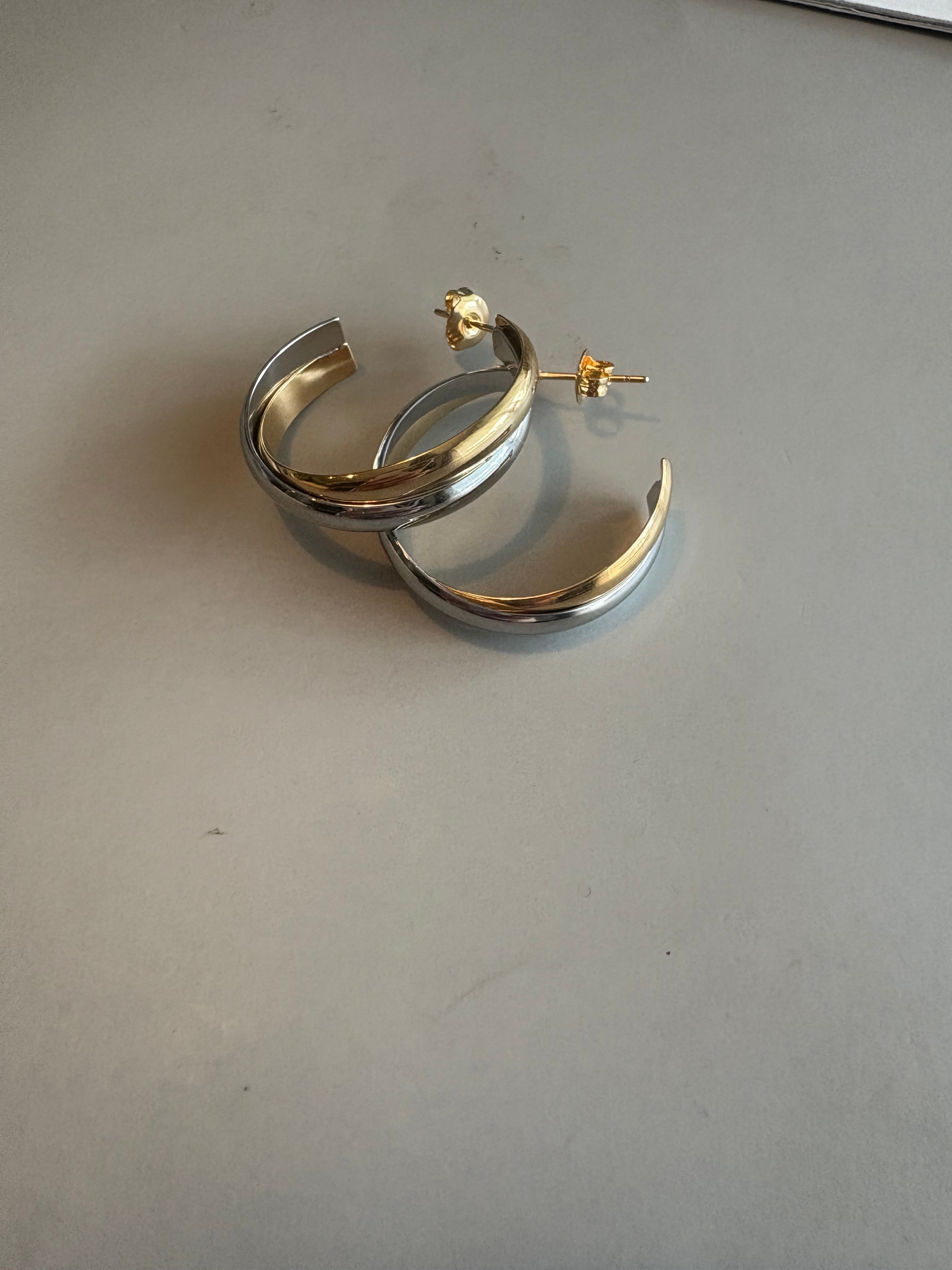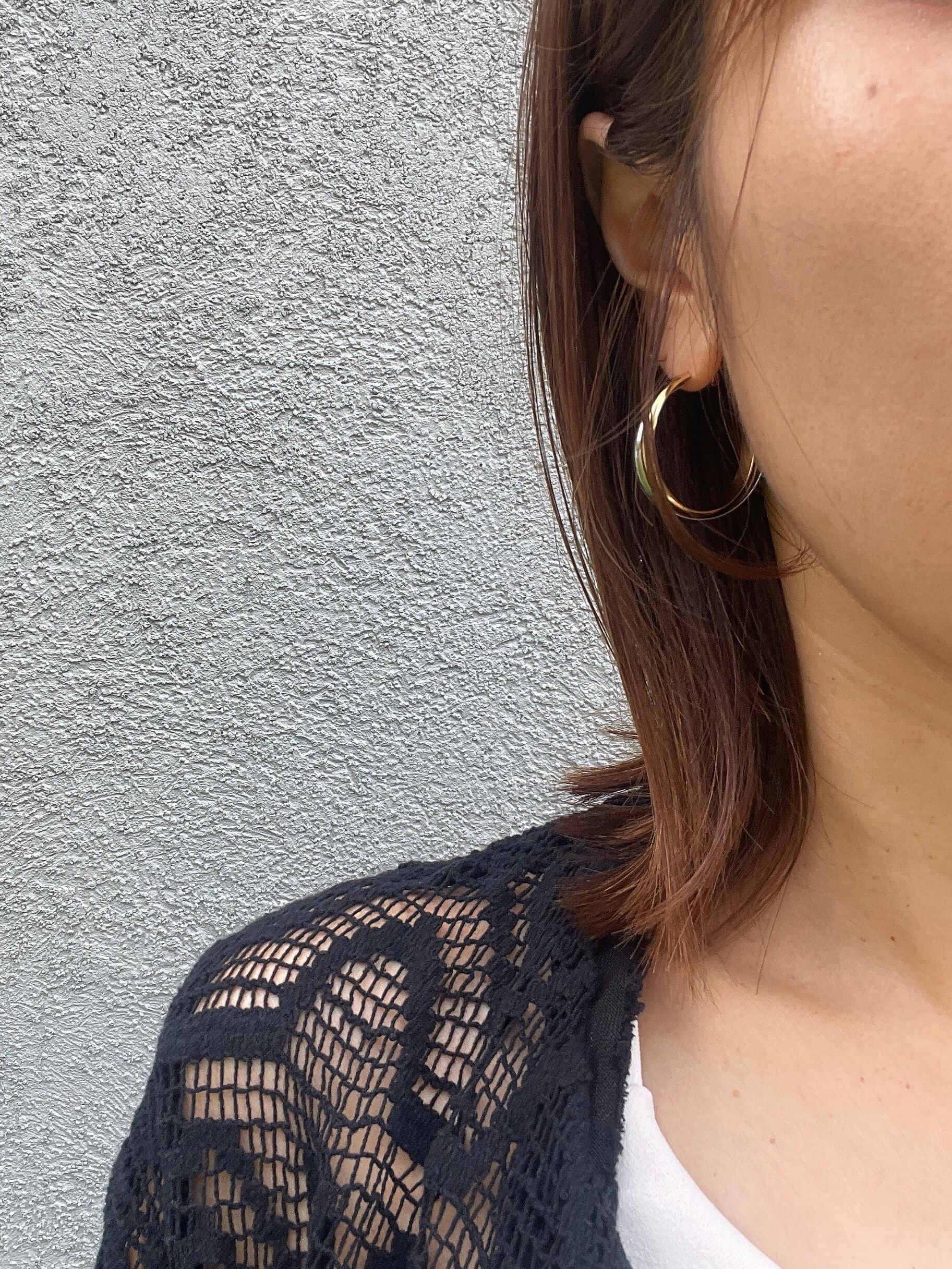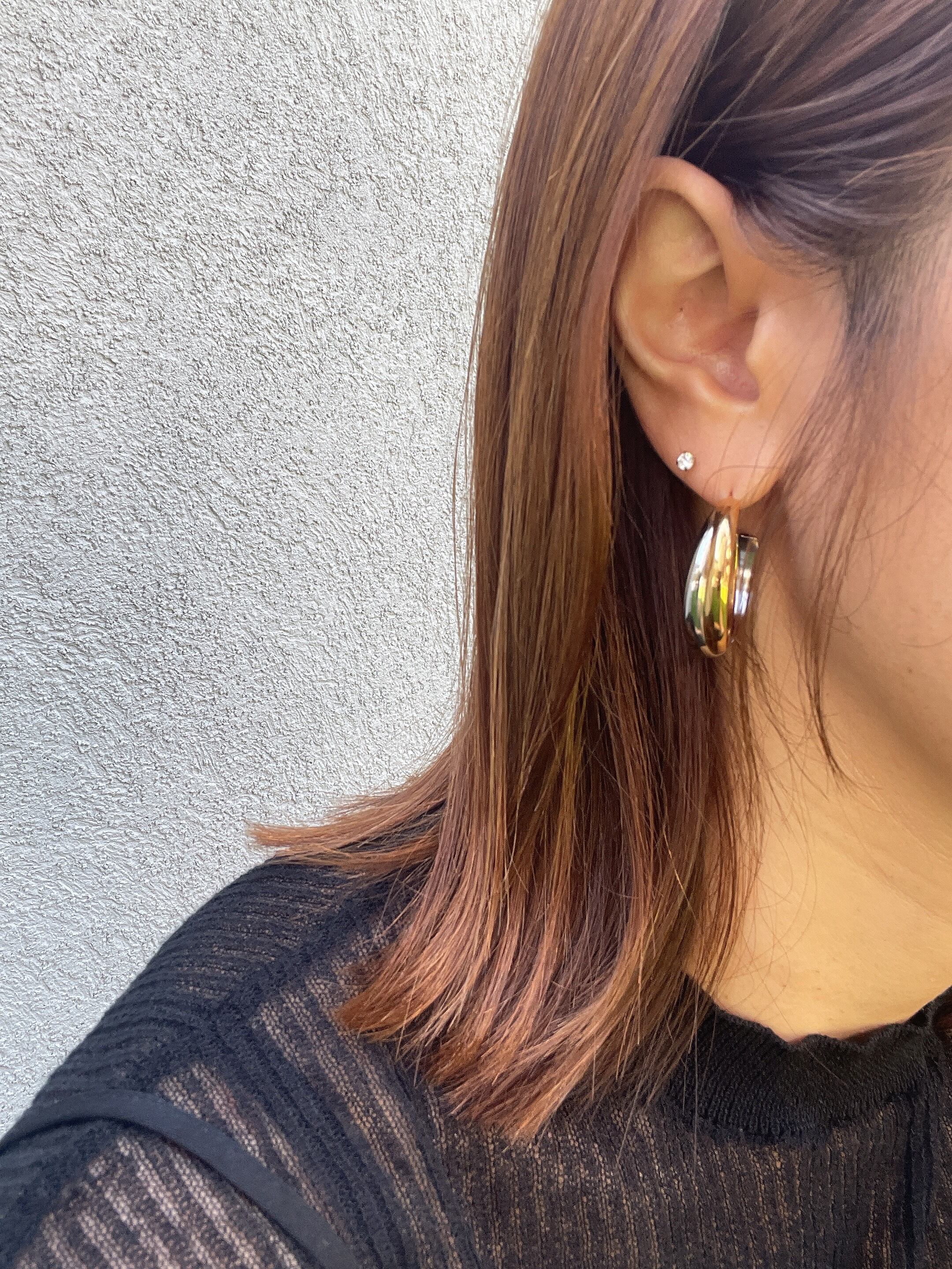 ほどよいボリューム感と、ゴールド×シルバーのバイカラーデザインが魅力のフープピアス。