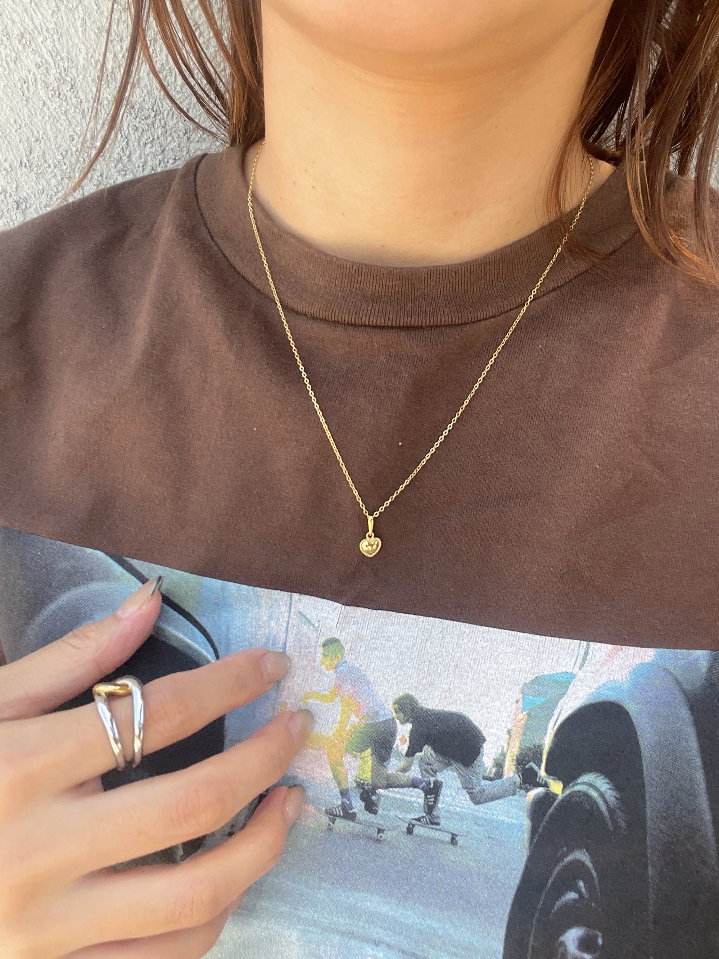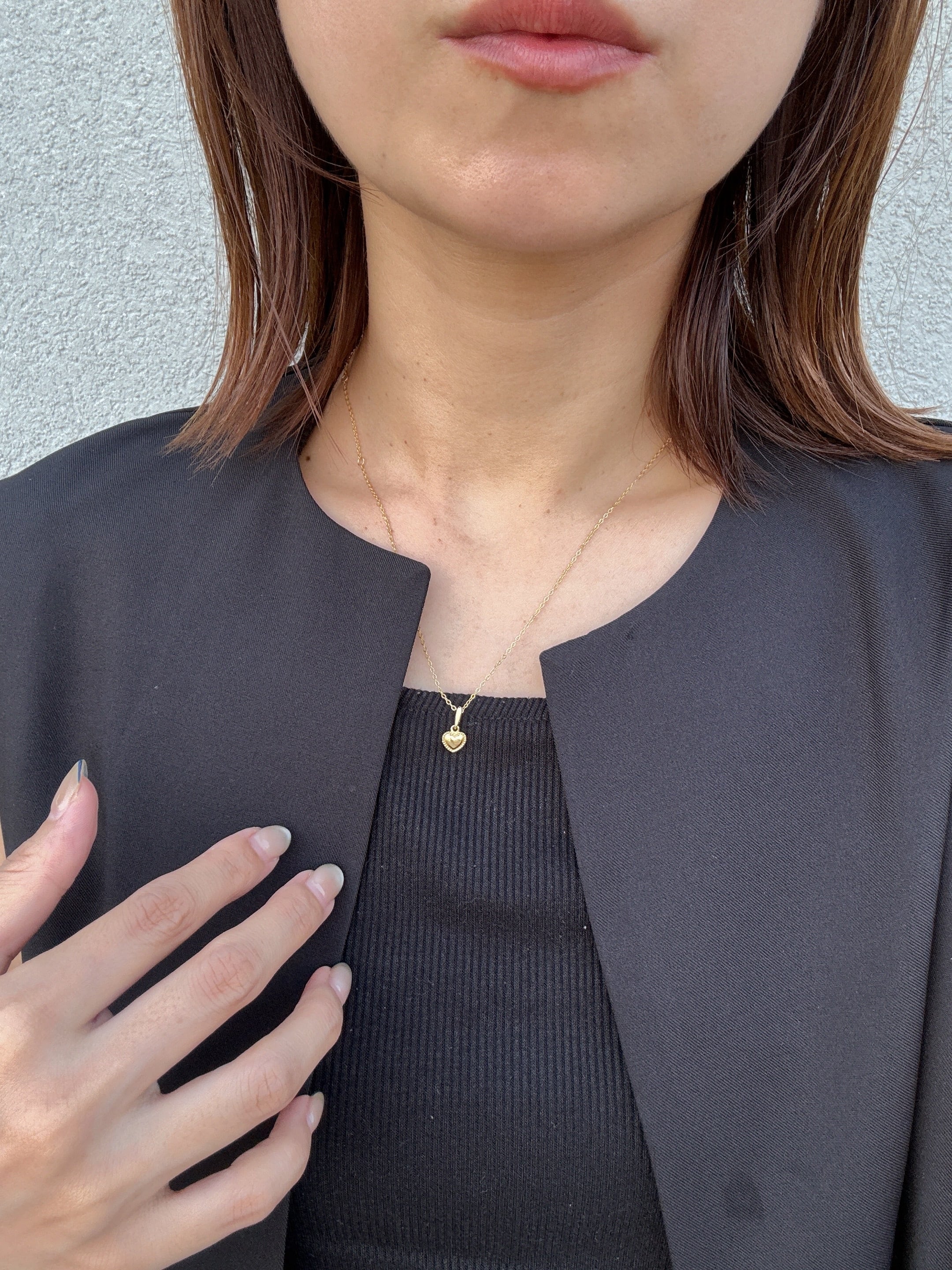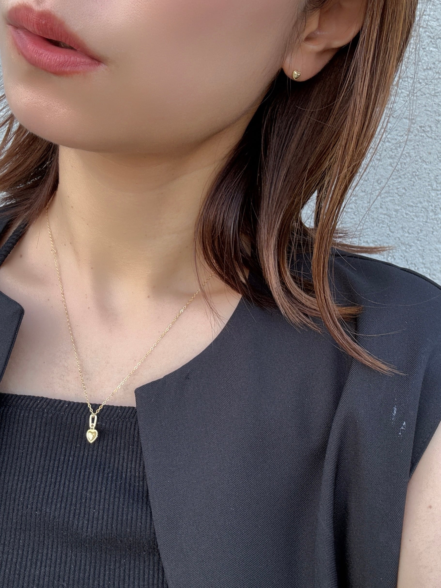 ころんとしたフォルムが愛らしい、小さなハートチャームのネックレス。