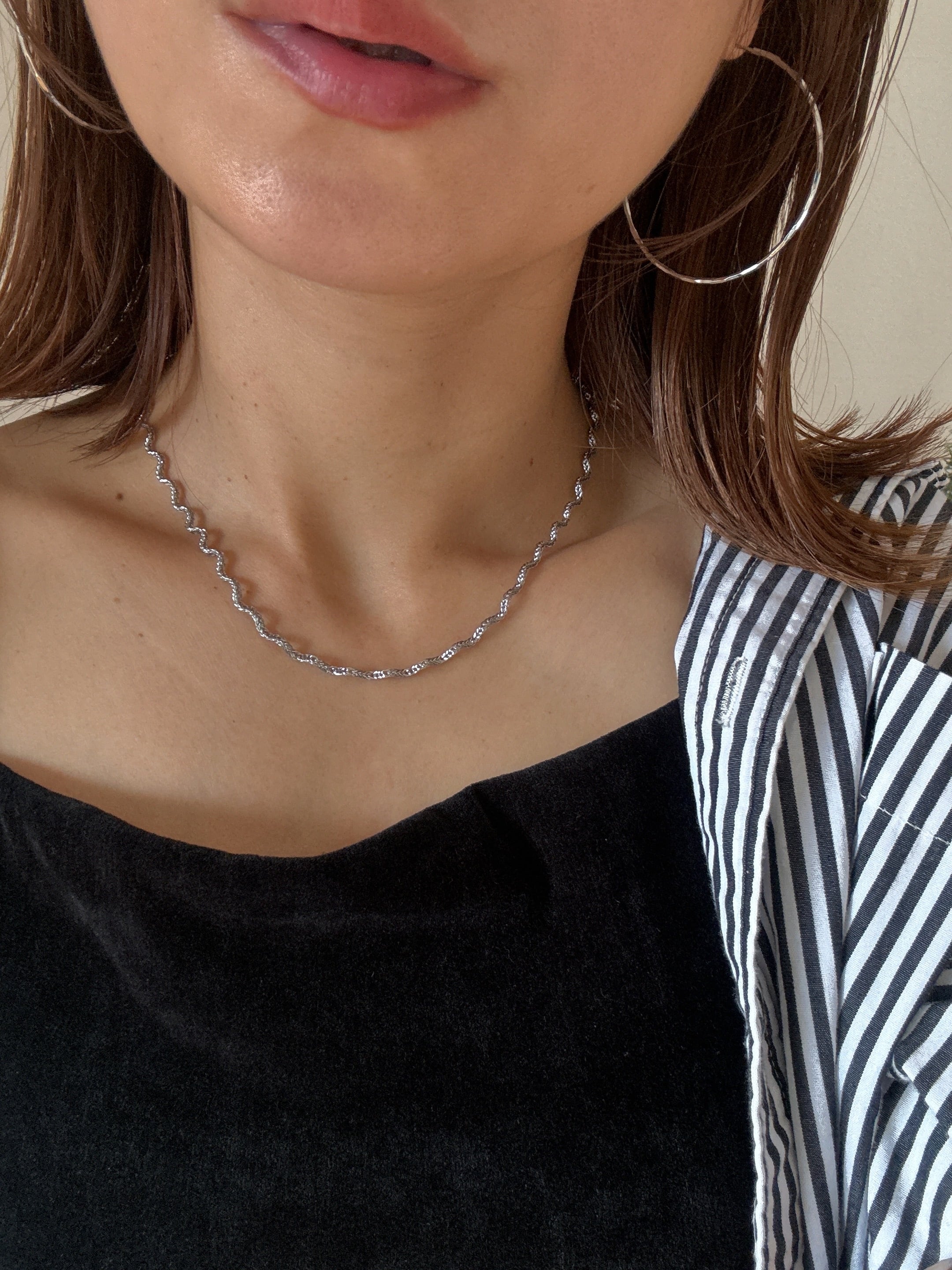 カジュアルなTシャツにも、キレイめなブラウスにもマッチ。