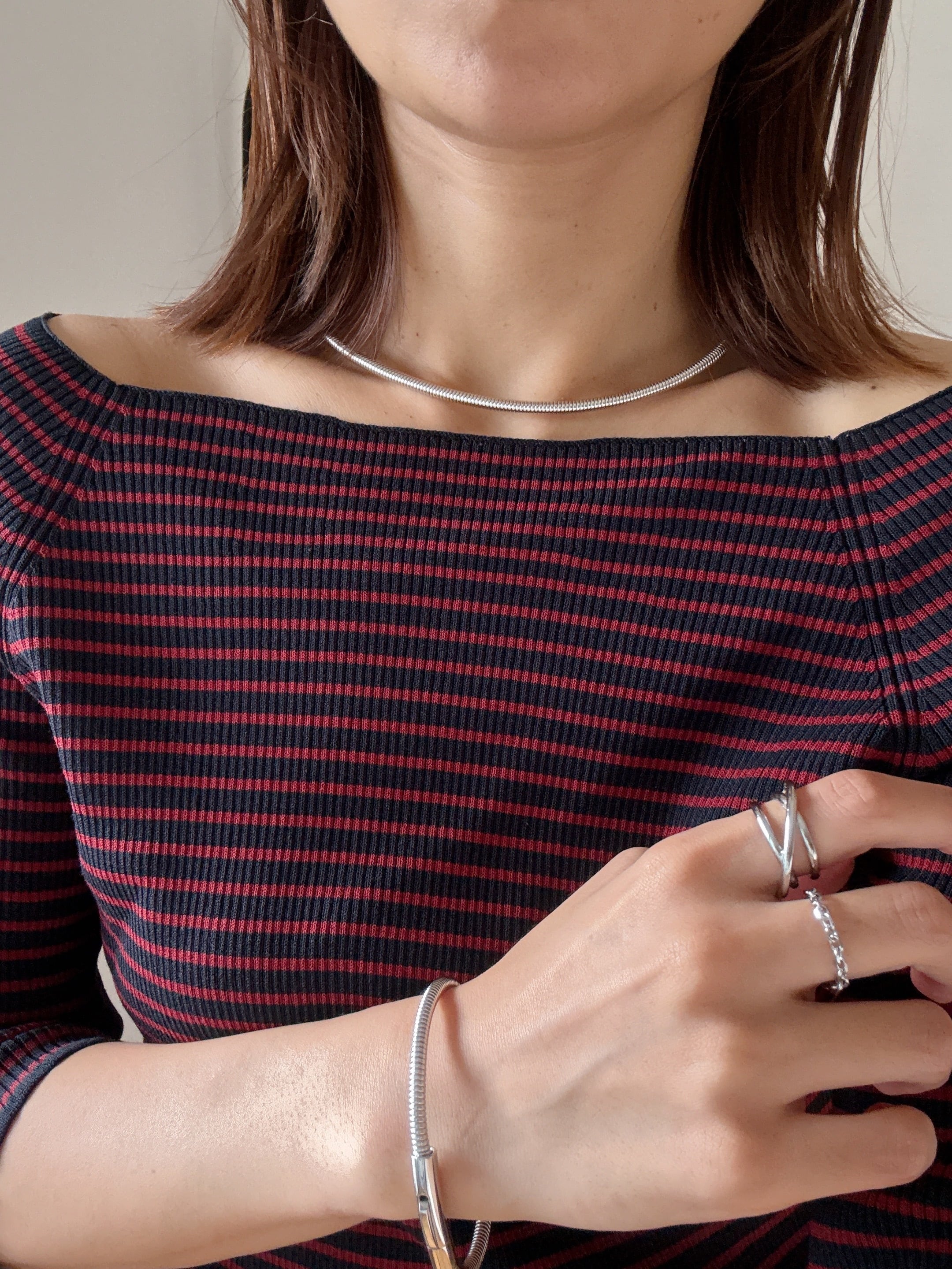 留め具にはカチッと固定できる差し込み式クラスプを採用し、着脱のしやすさと安心感を両立。シンプルなデザインだからこそ、単品でも重ね付けでもバランスよく決まります。