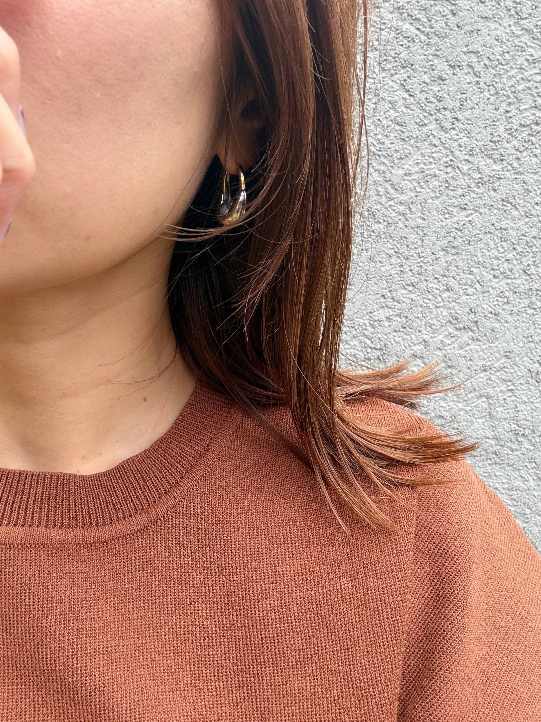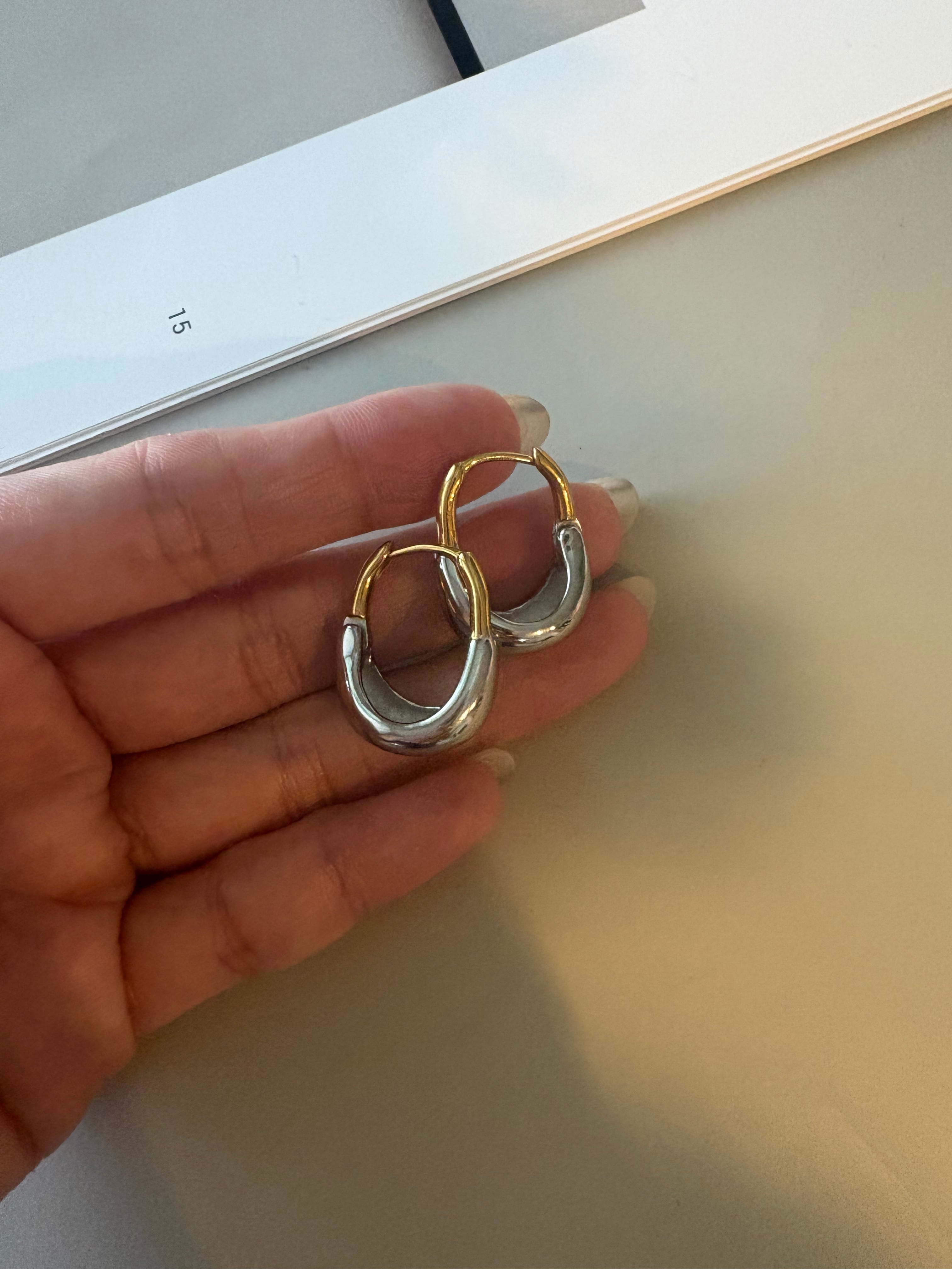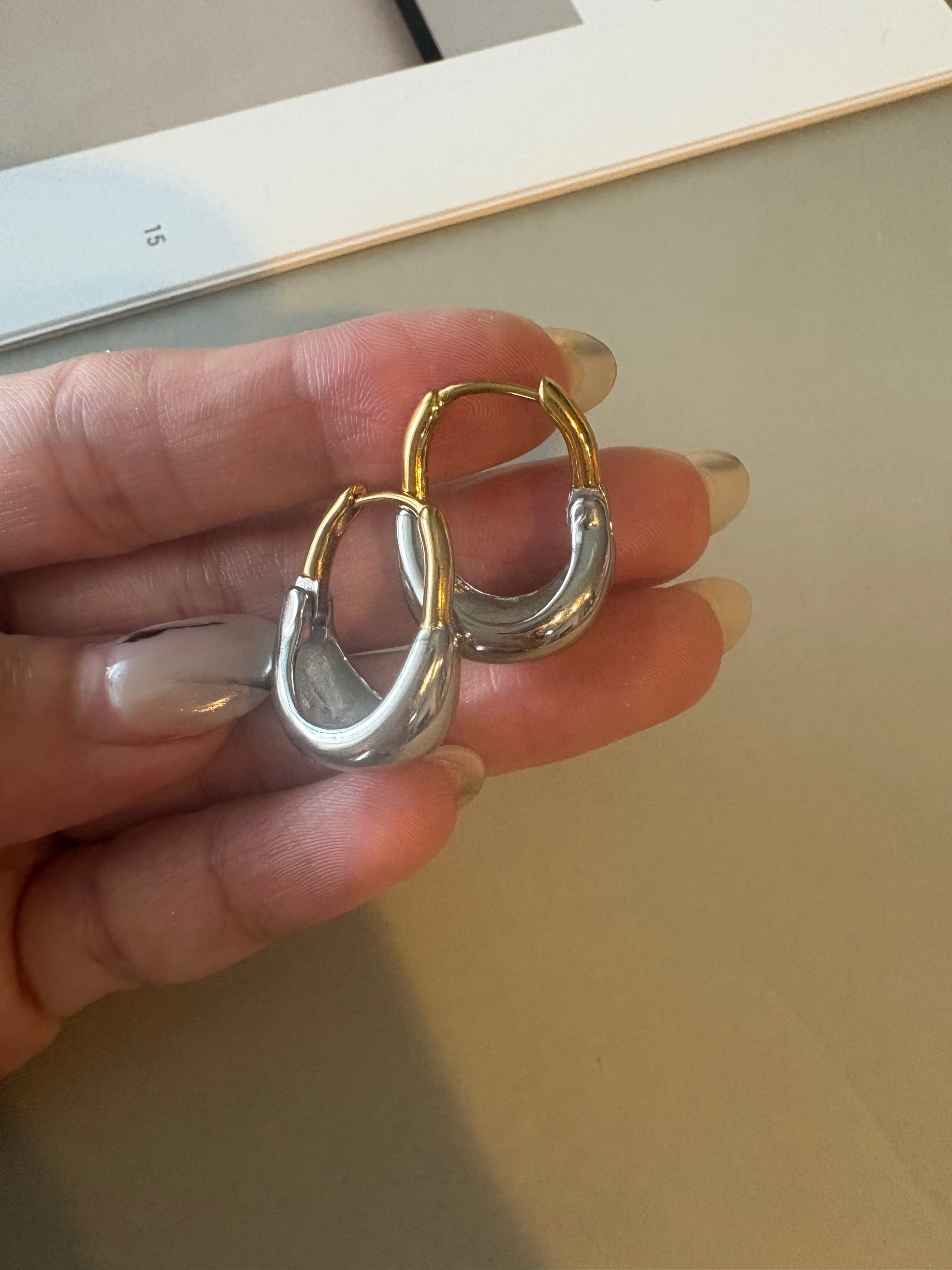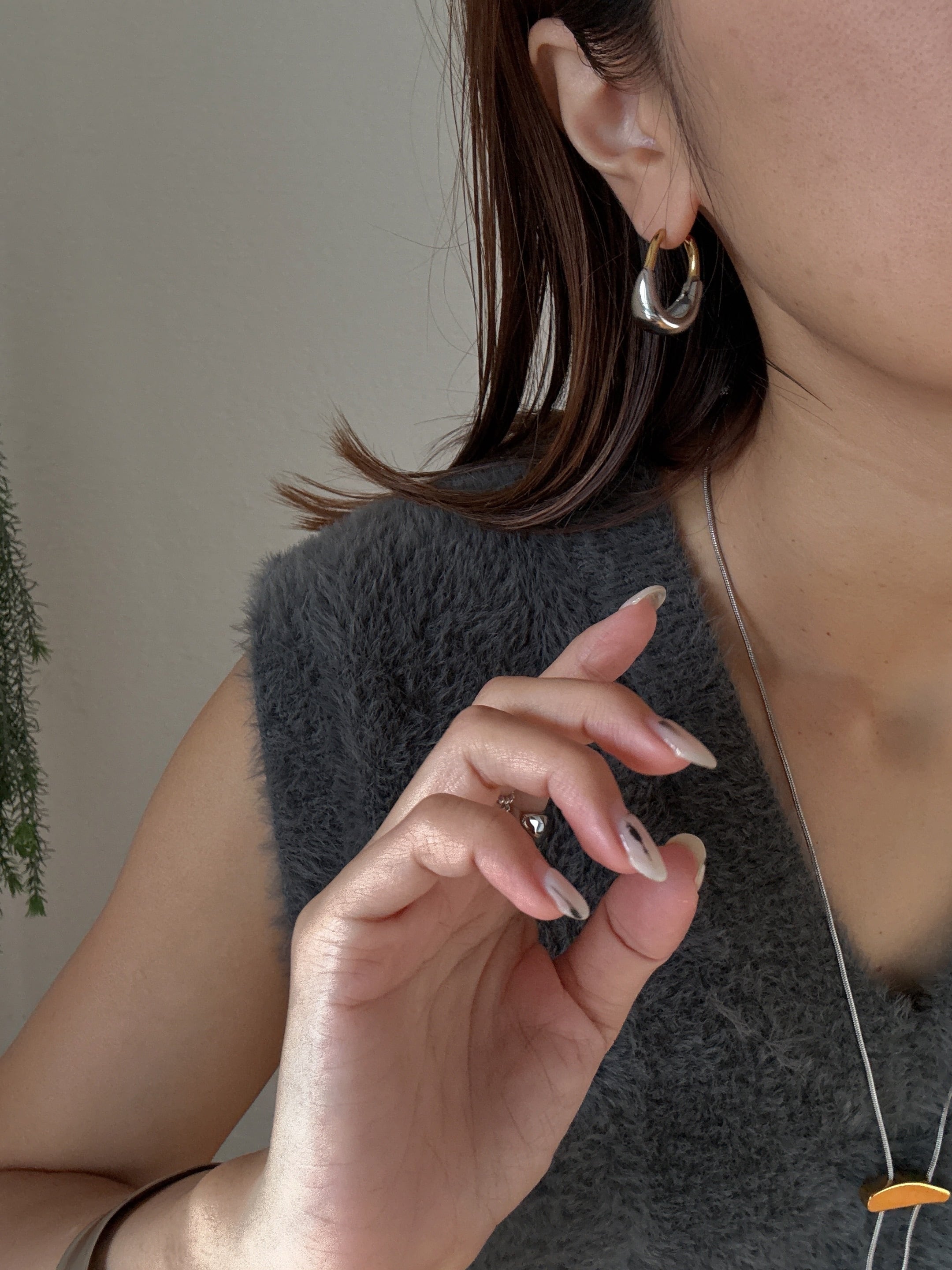 ぷっくりとした立体的なフォルムが目を惹く、バイカラーのフープピアス。