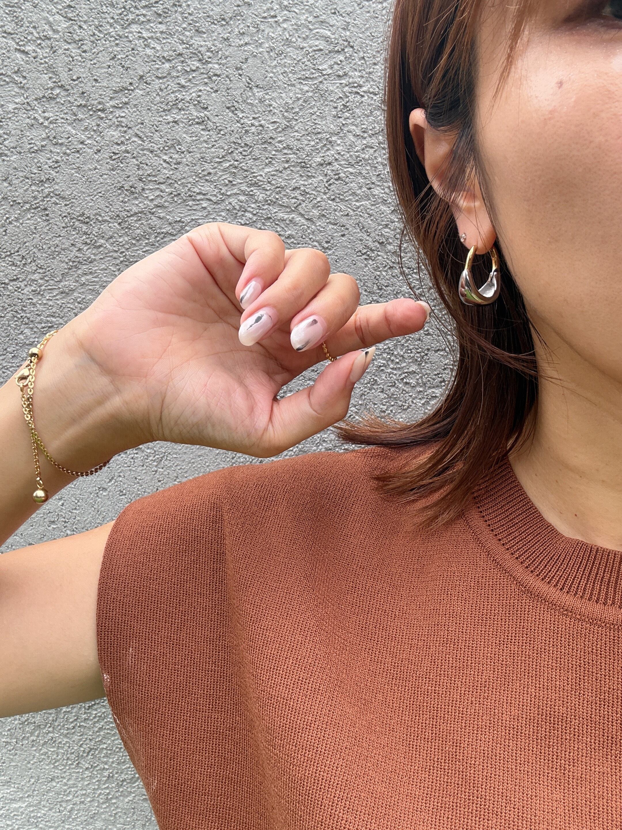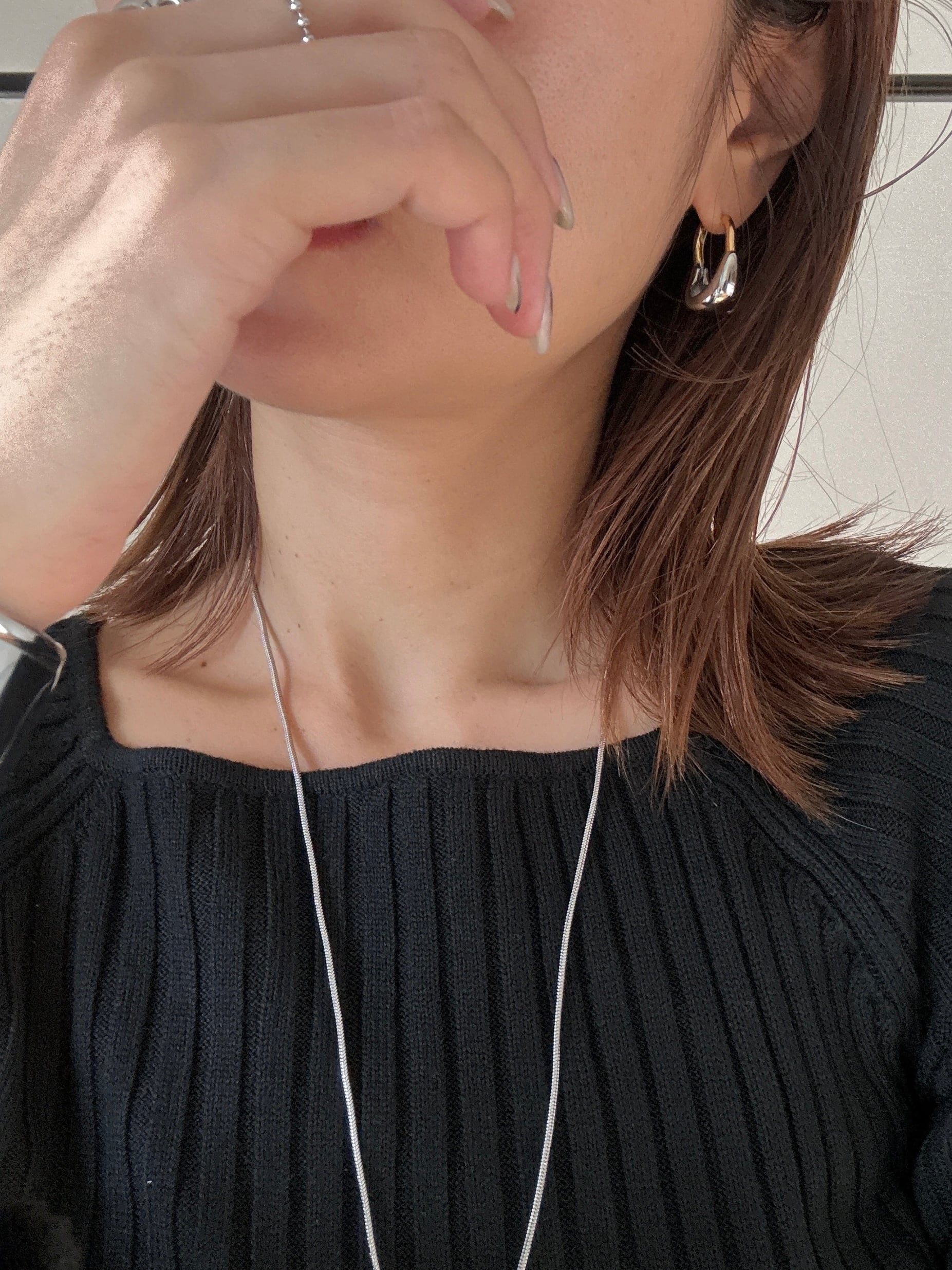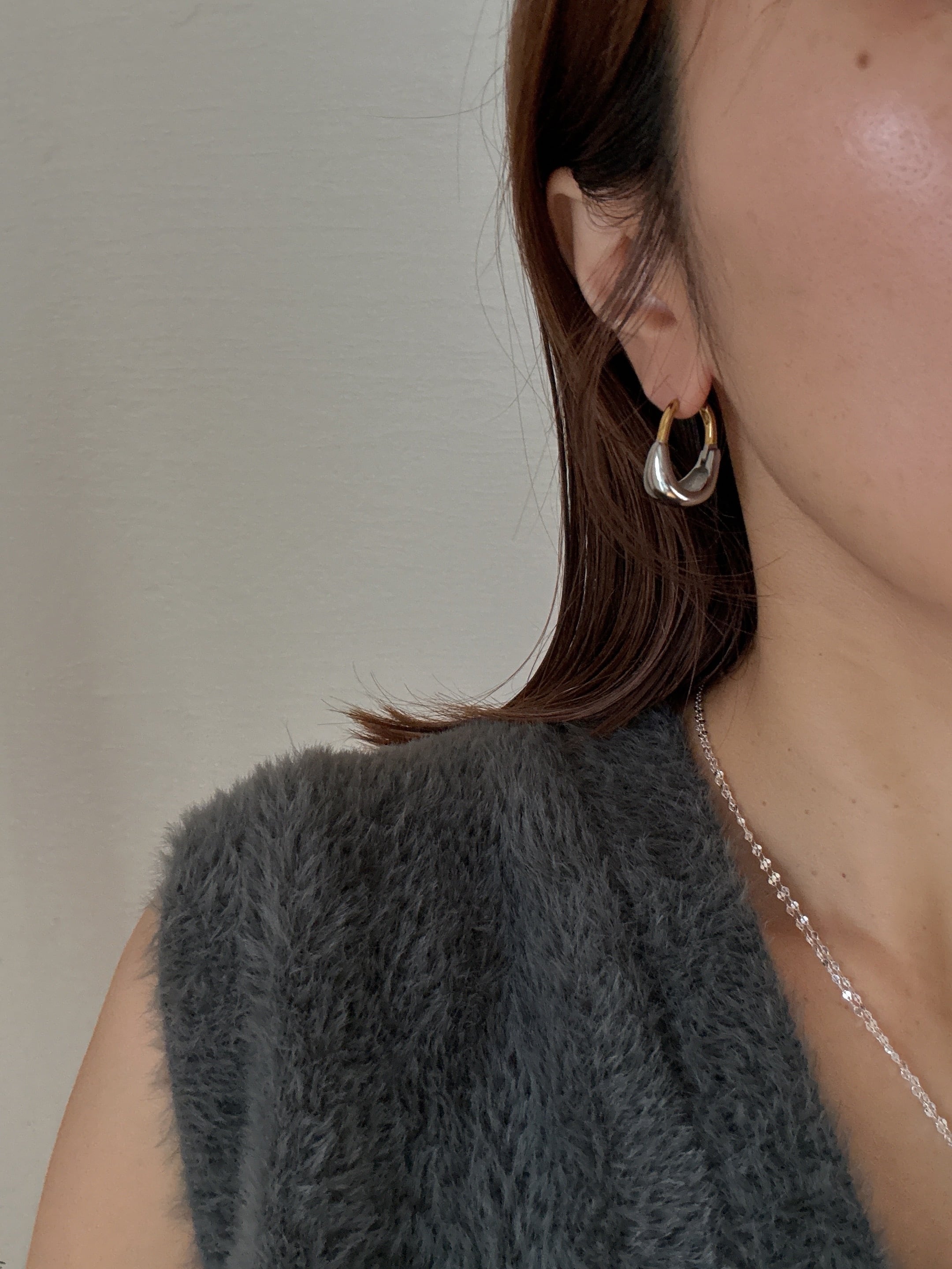 ゴールド×シルバーの組み合わせが、顔まわりにさりげないモード感と抜け感をプラスします。