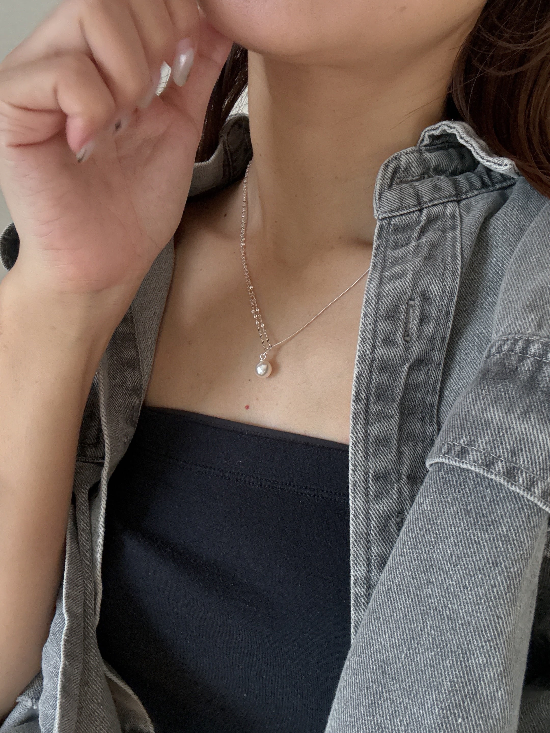 ほどよい存在感を放つパールトップに、繊細に光を反射する変形カットチェーンを組み合わせ、モダンで洗練されたデザインに仕上げました。