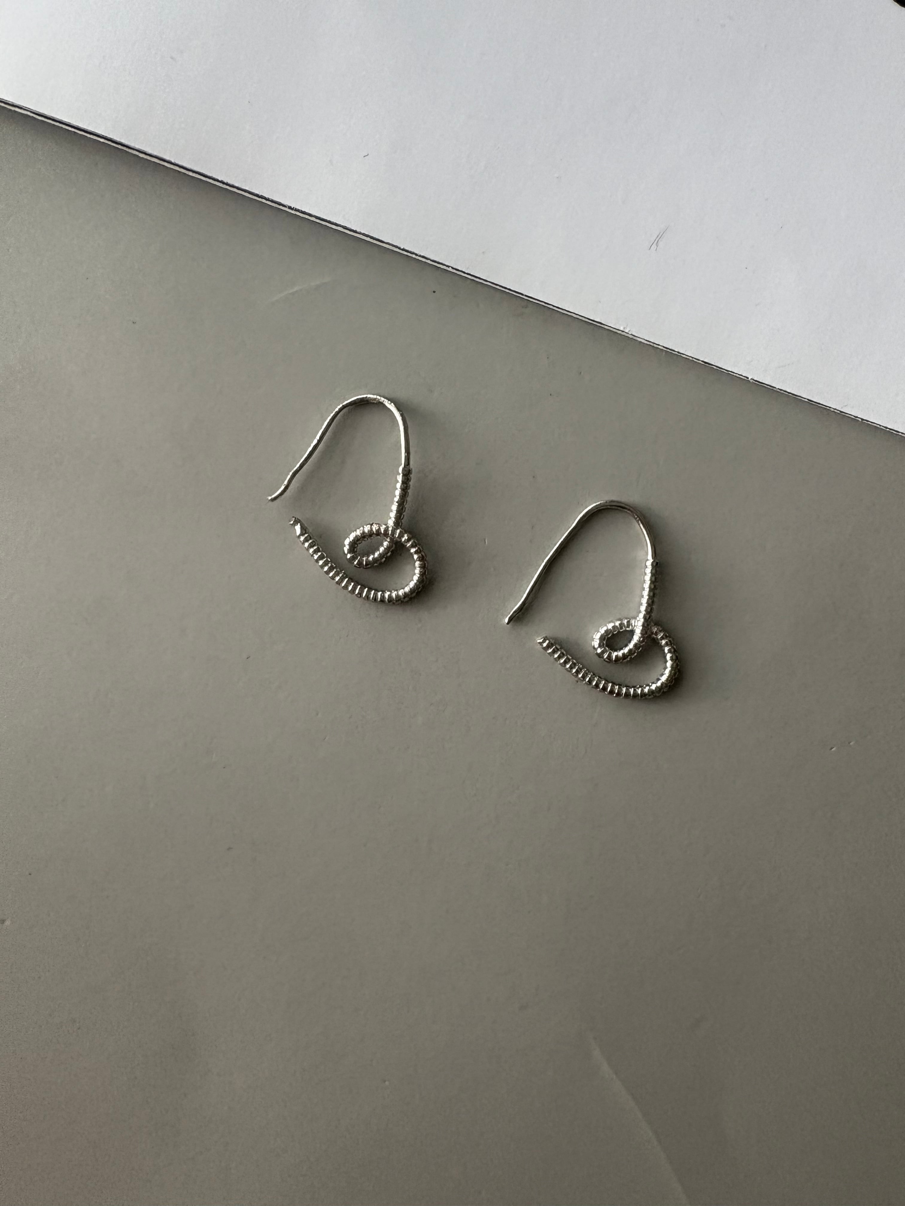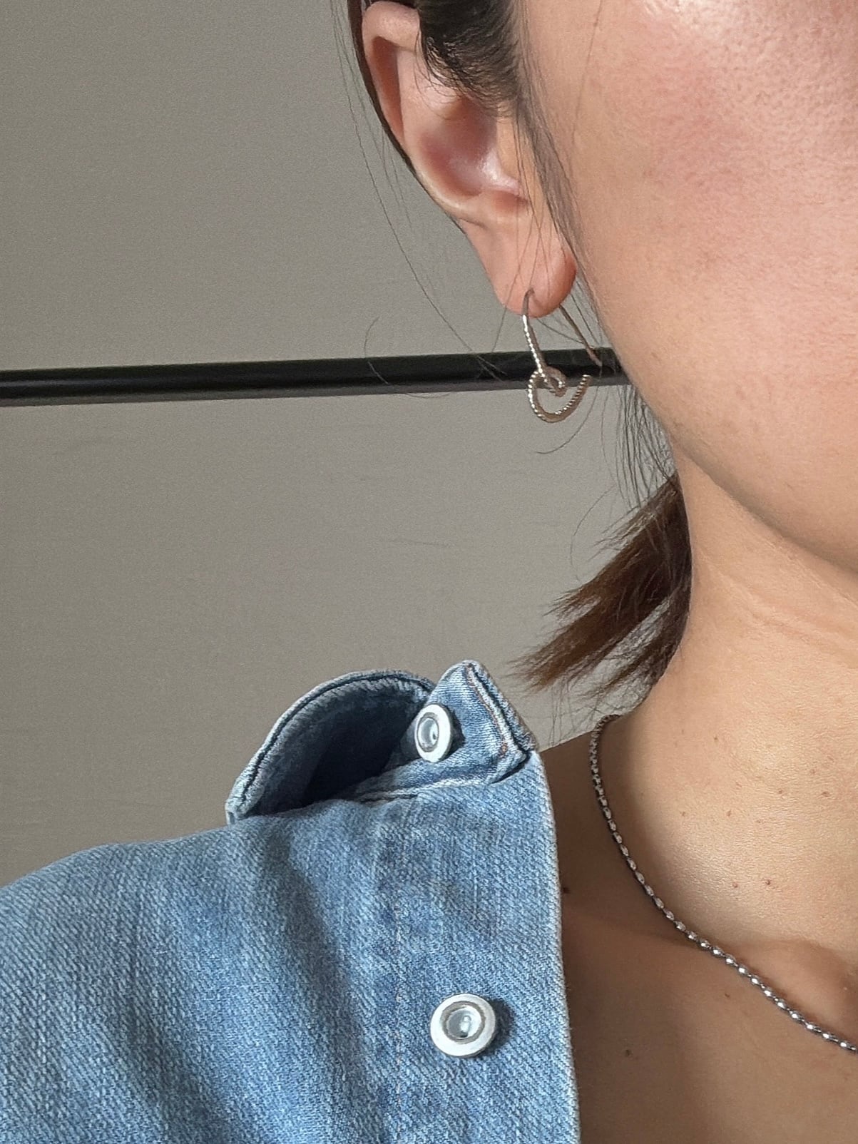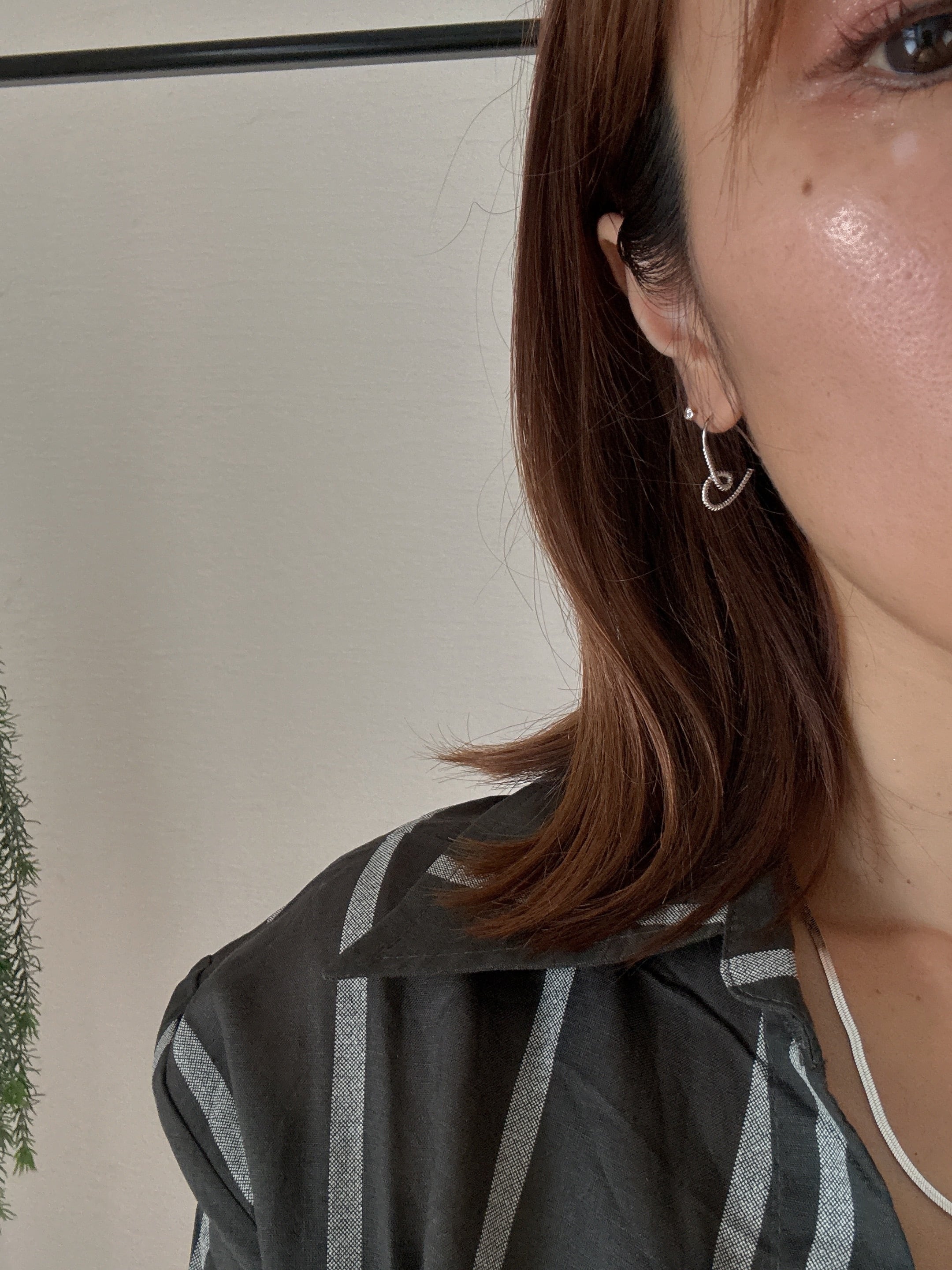 立体感とユニークなフォルムが印象的な、アートのようなハート型ピアス。