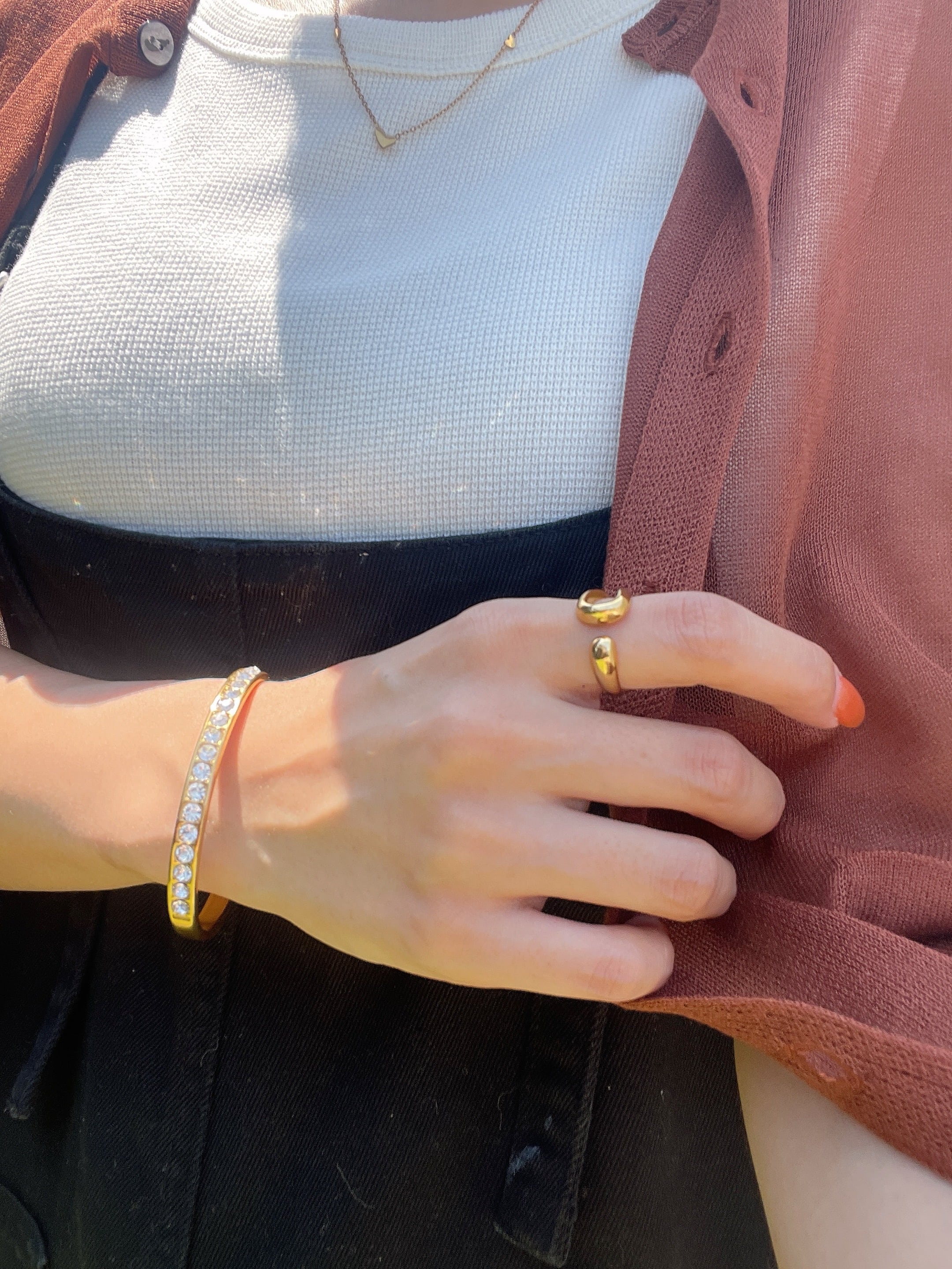 このバングルは、軽やかな着け心地で手首への負担が少なく、長時間の着用でも快適です。