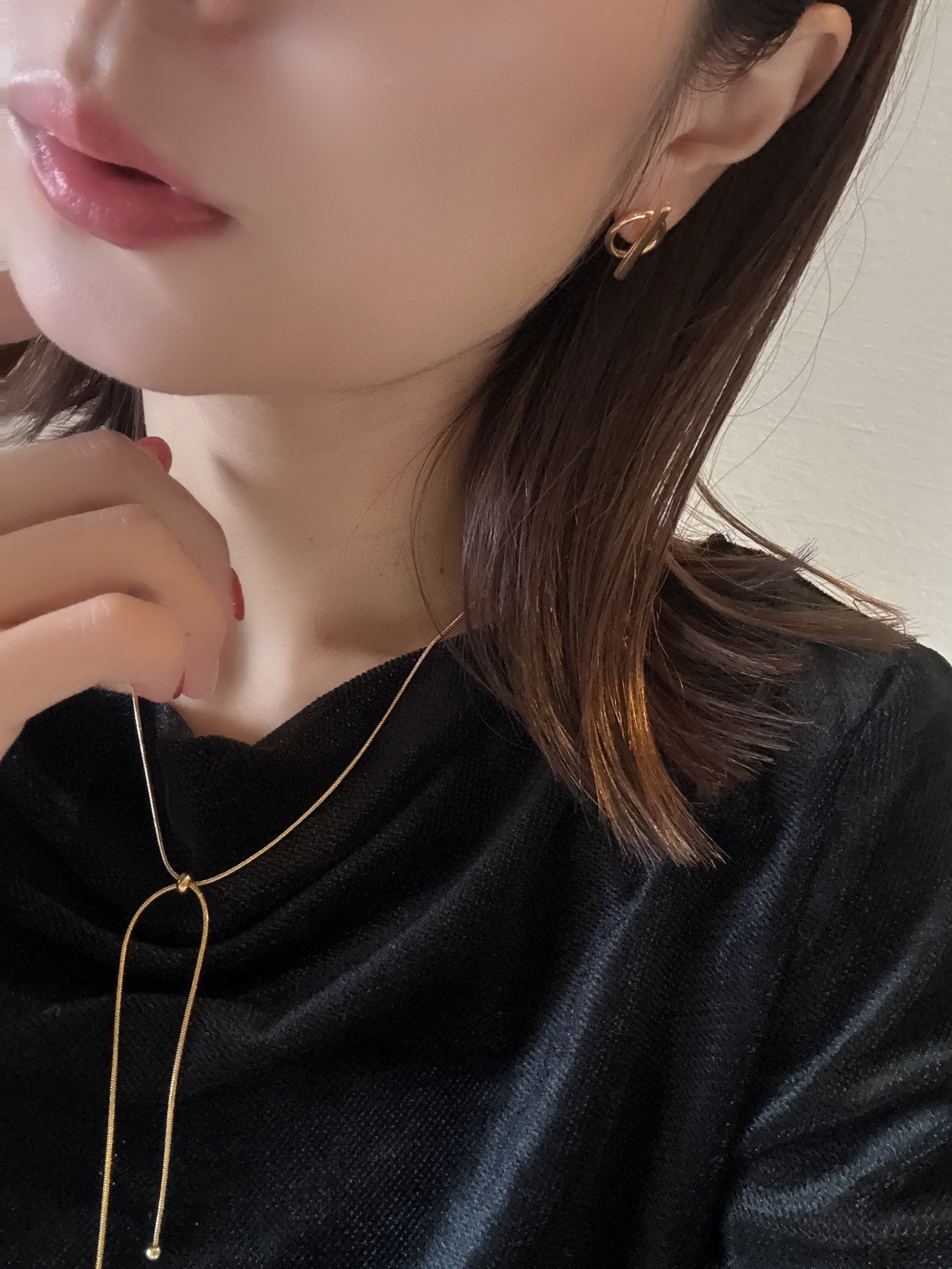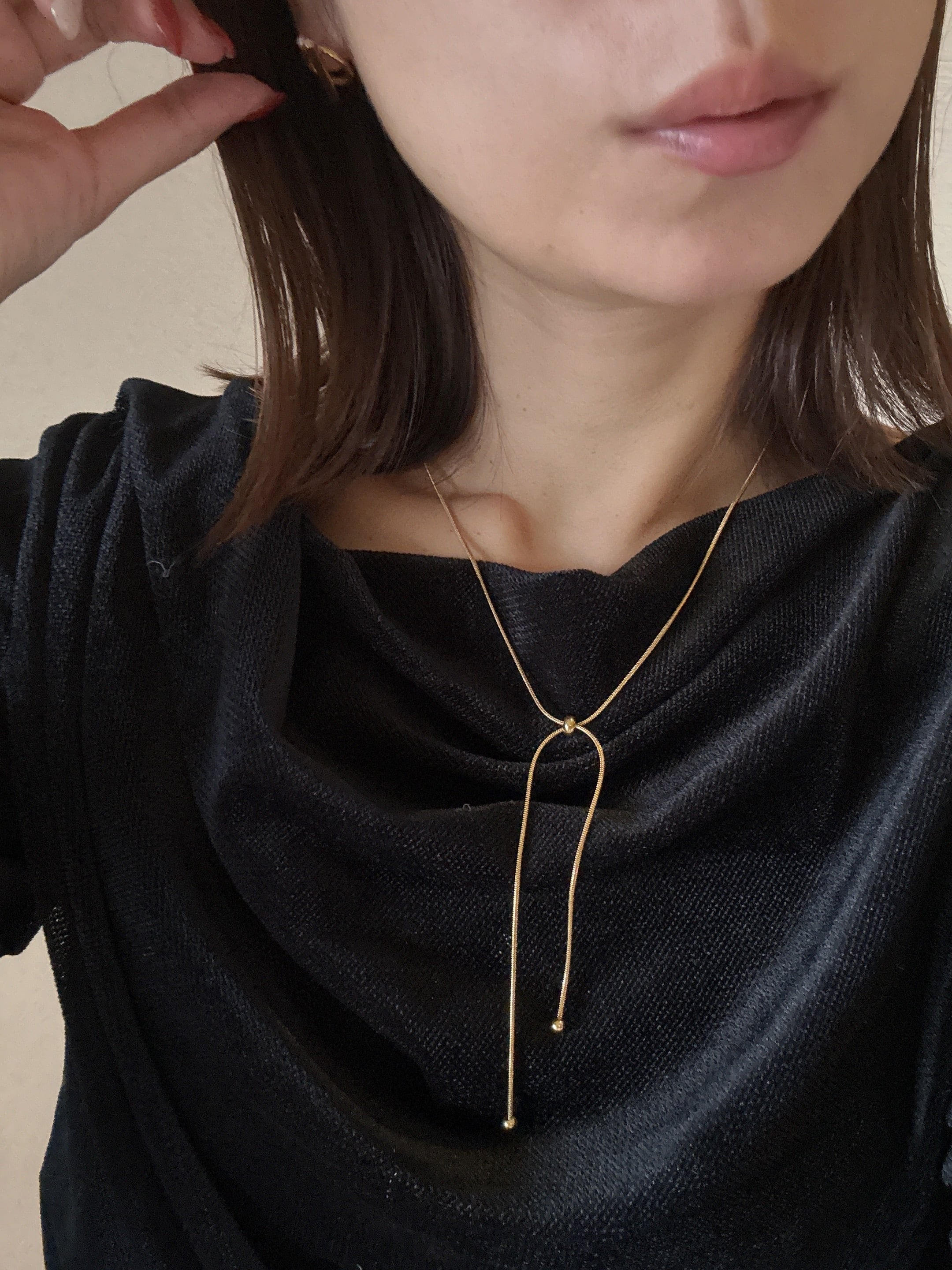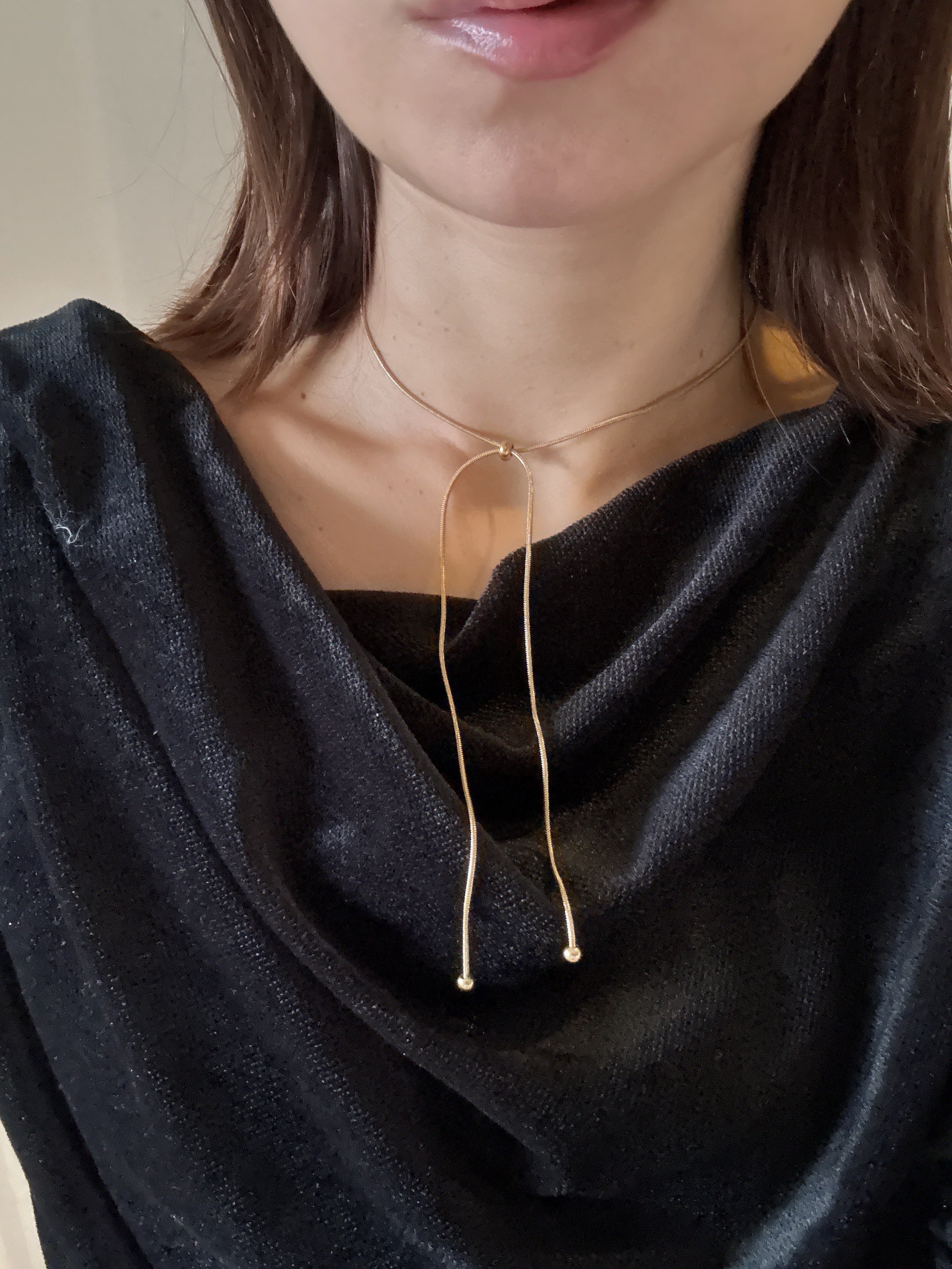 ミニマルなデザインながら、艶やかなメタルの光が首元に洗練された印象をプラス。