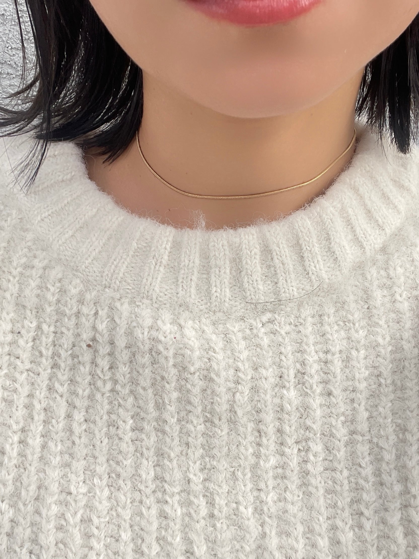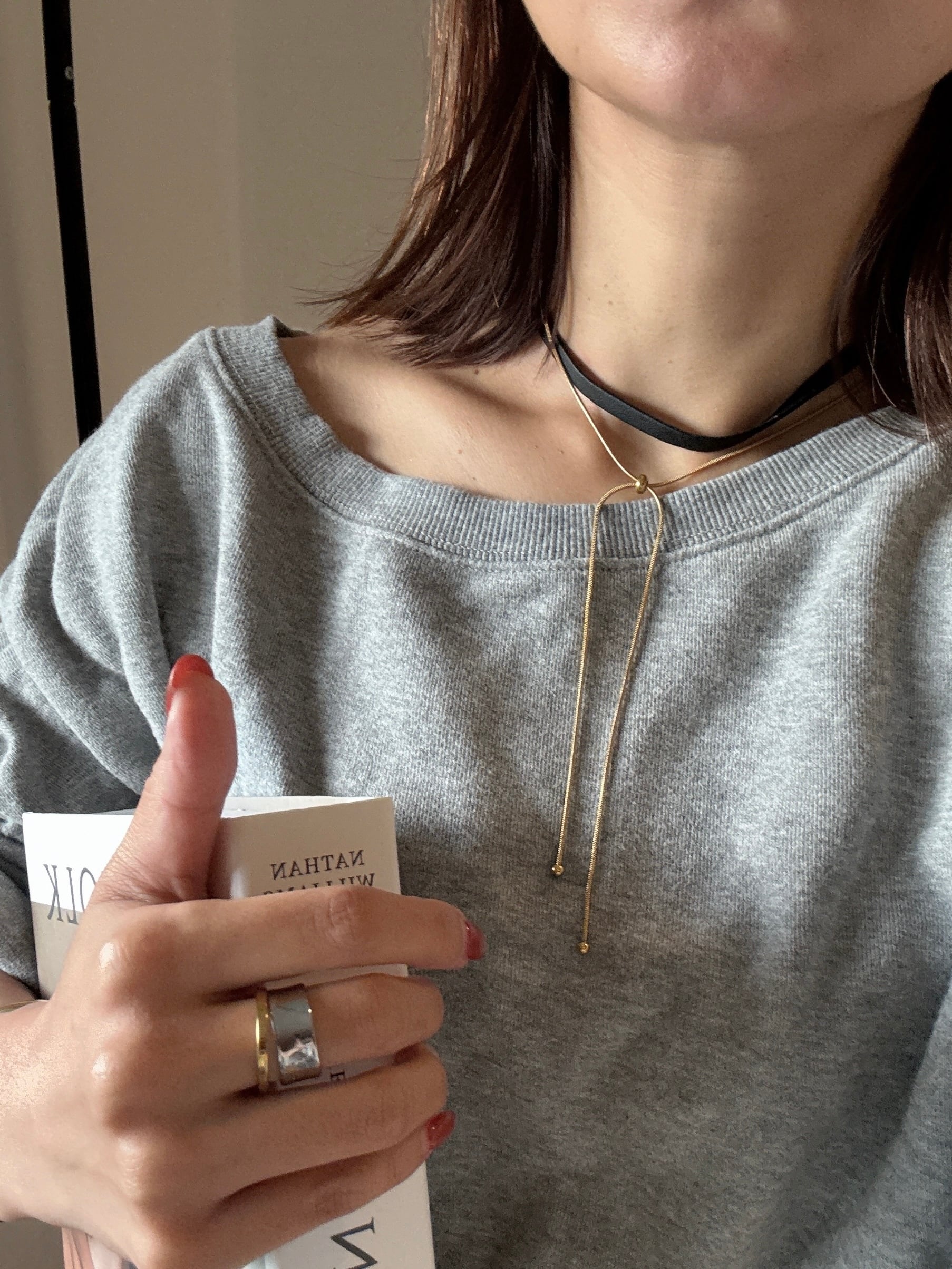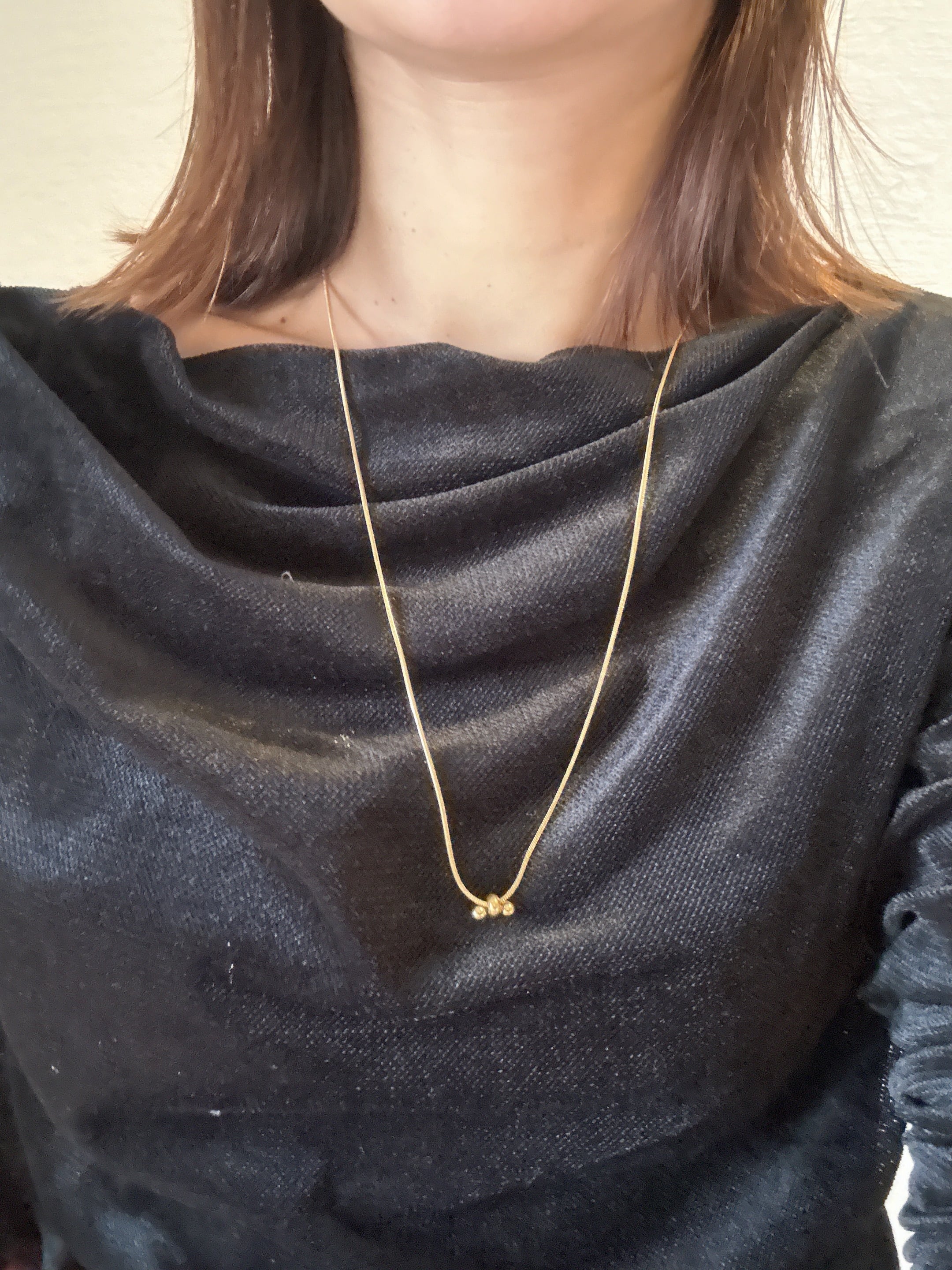 ミニマルなデザインながら、艶やかなメタルの光が首元に洗練された印象をプラス。