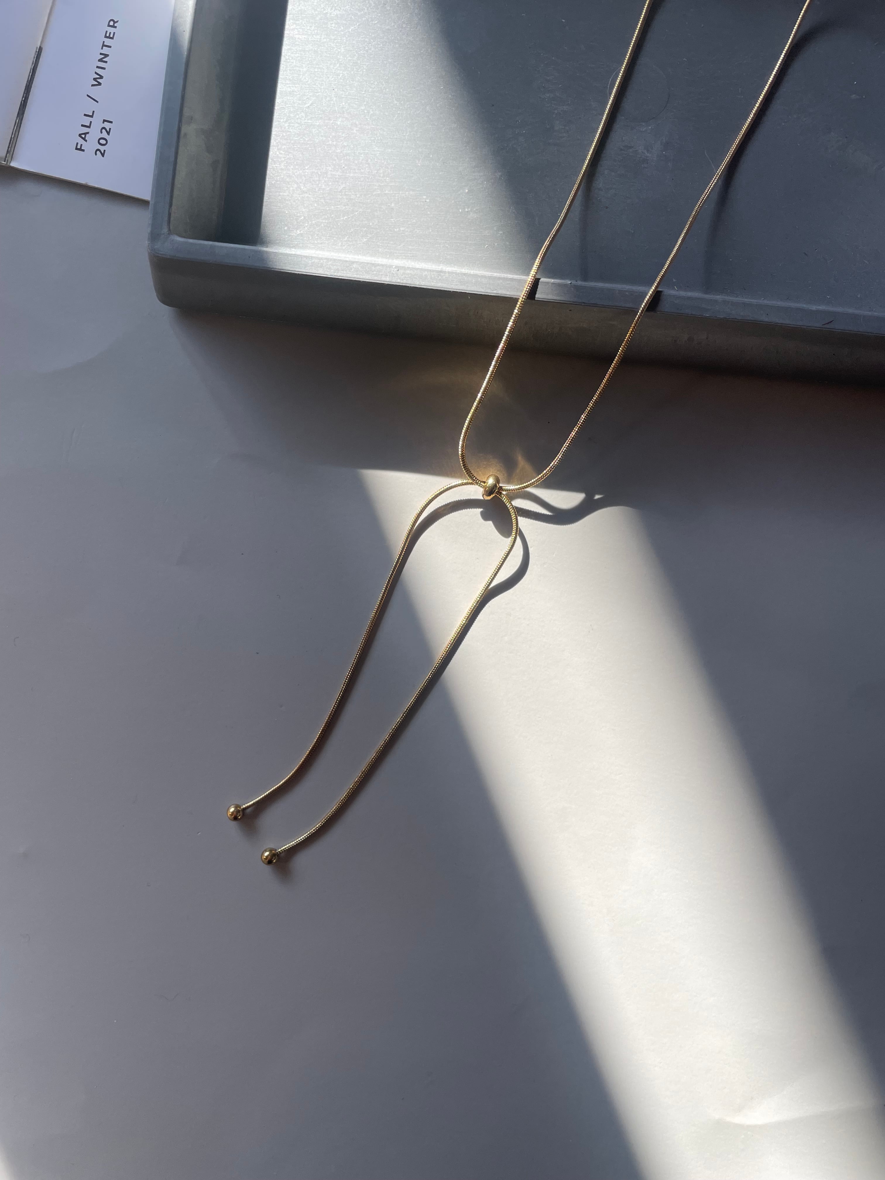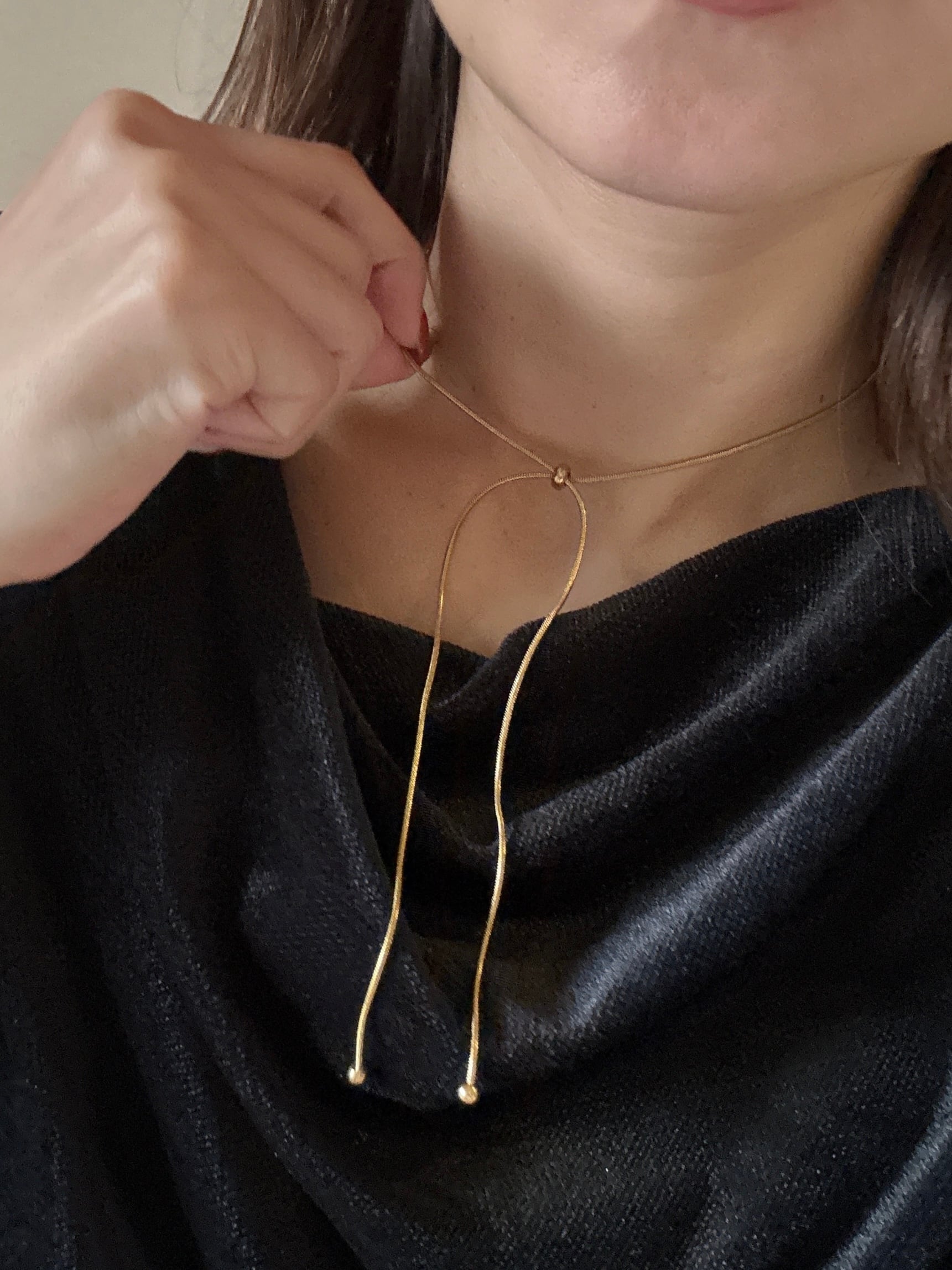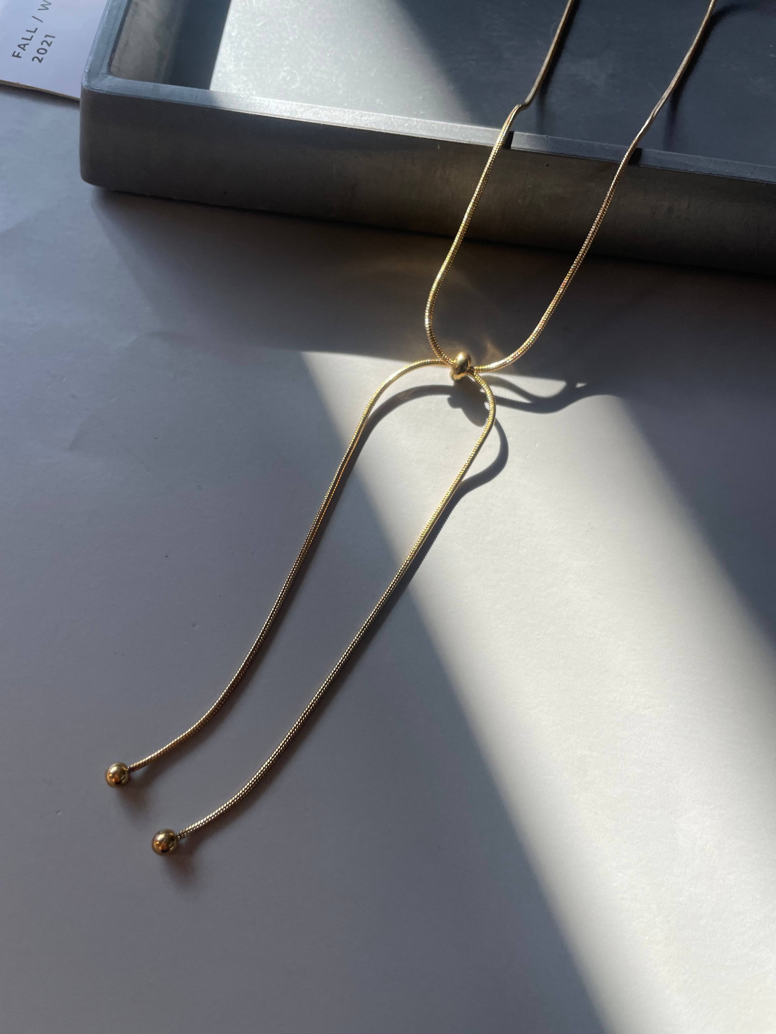 滑らかなスネークチェーンに、スライドボールをあしらったネックレス。