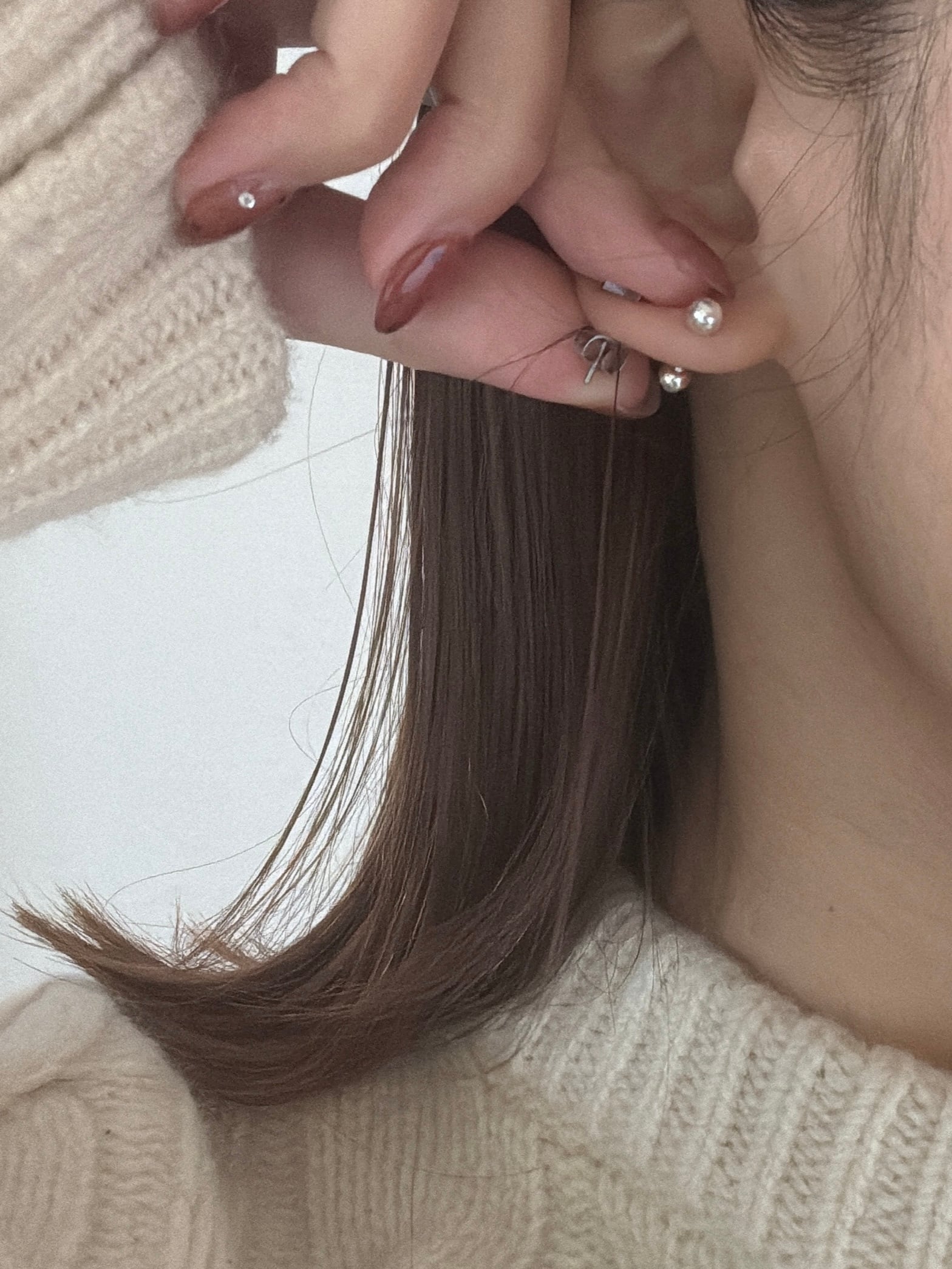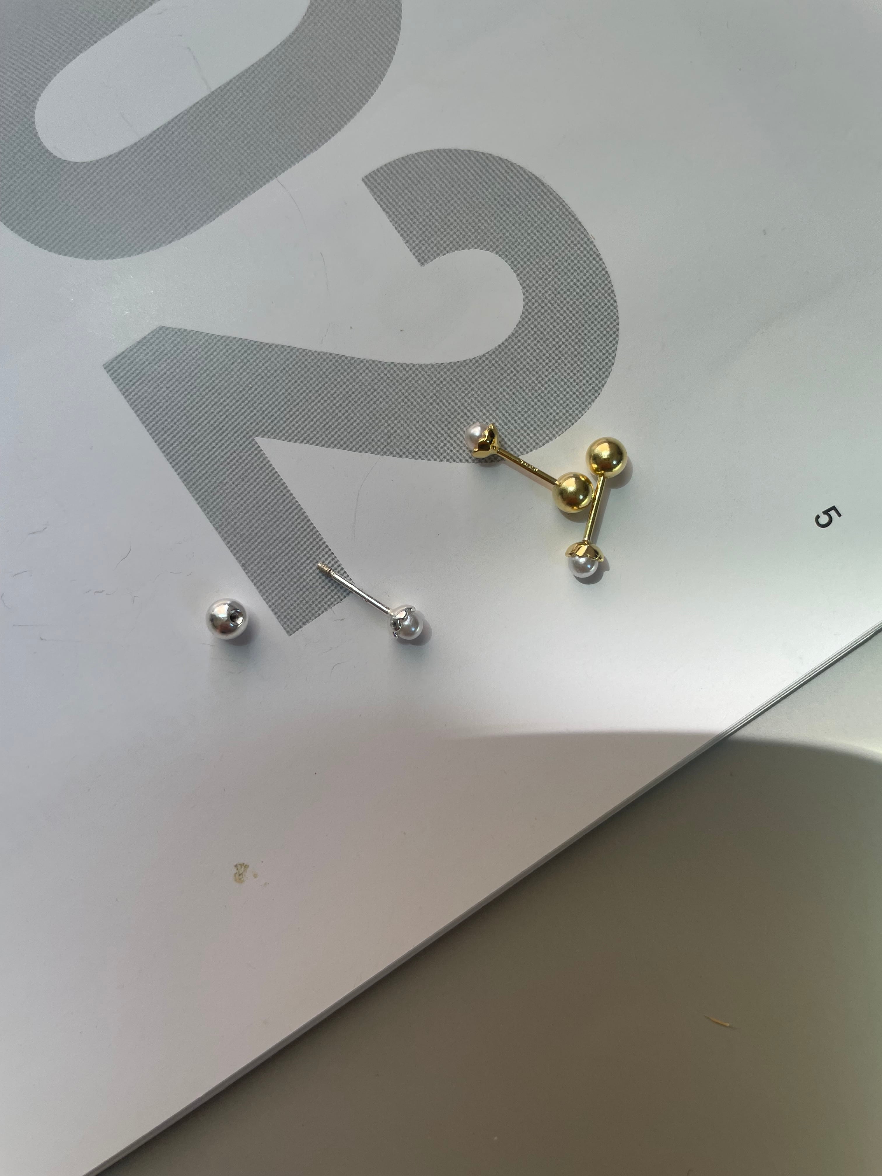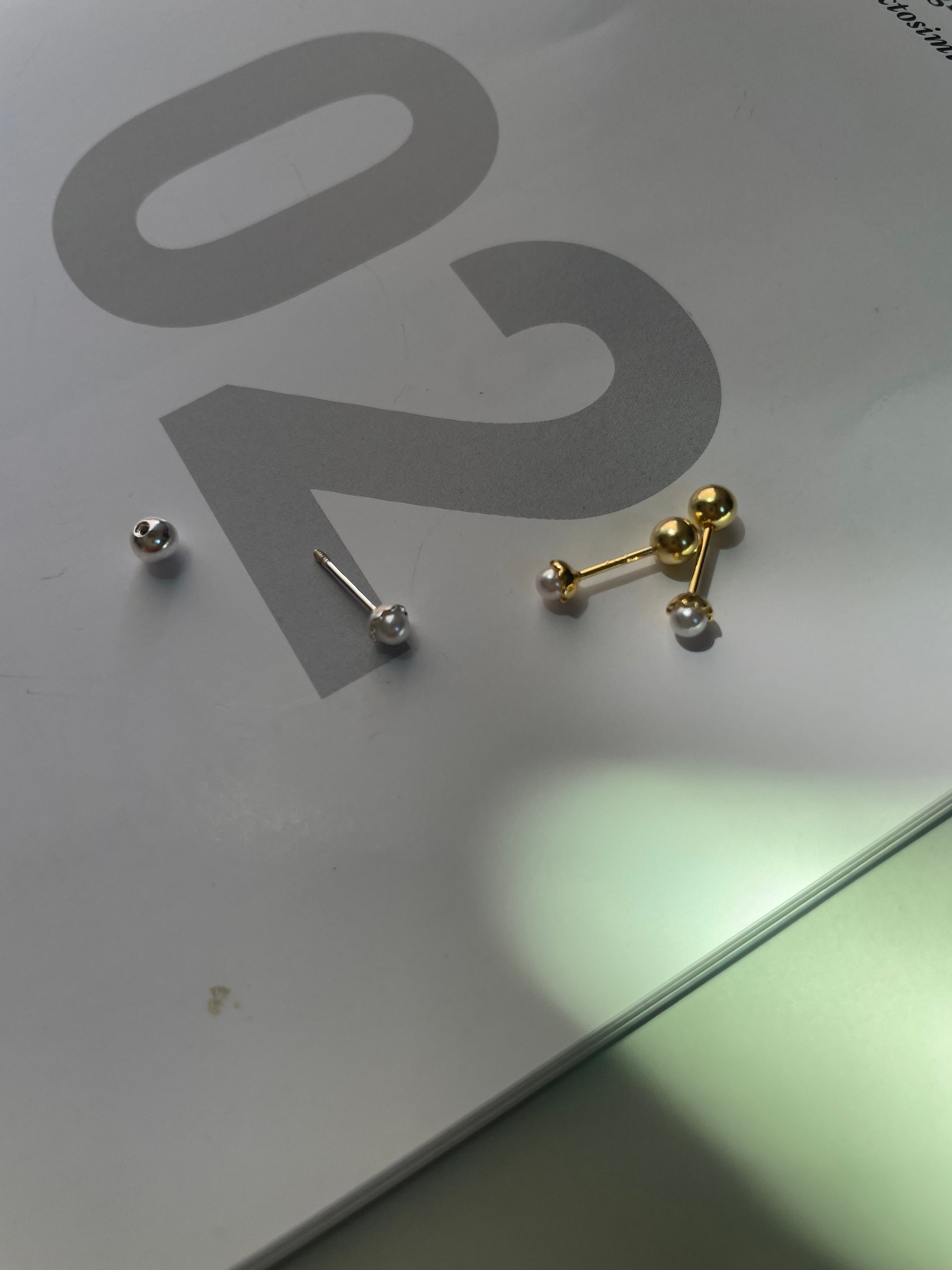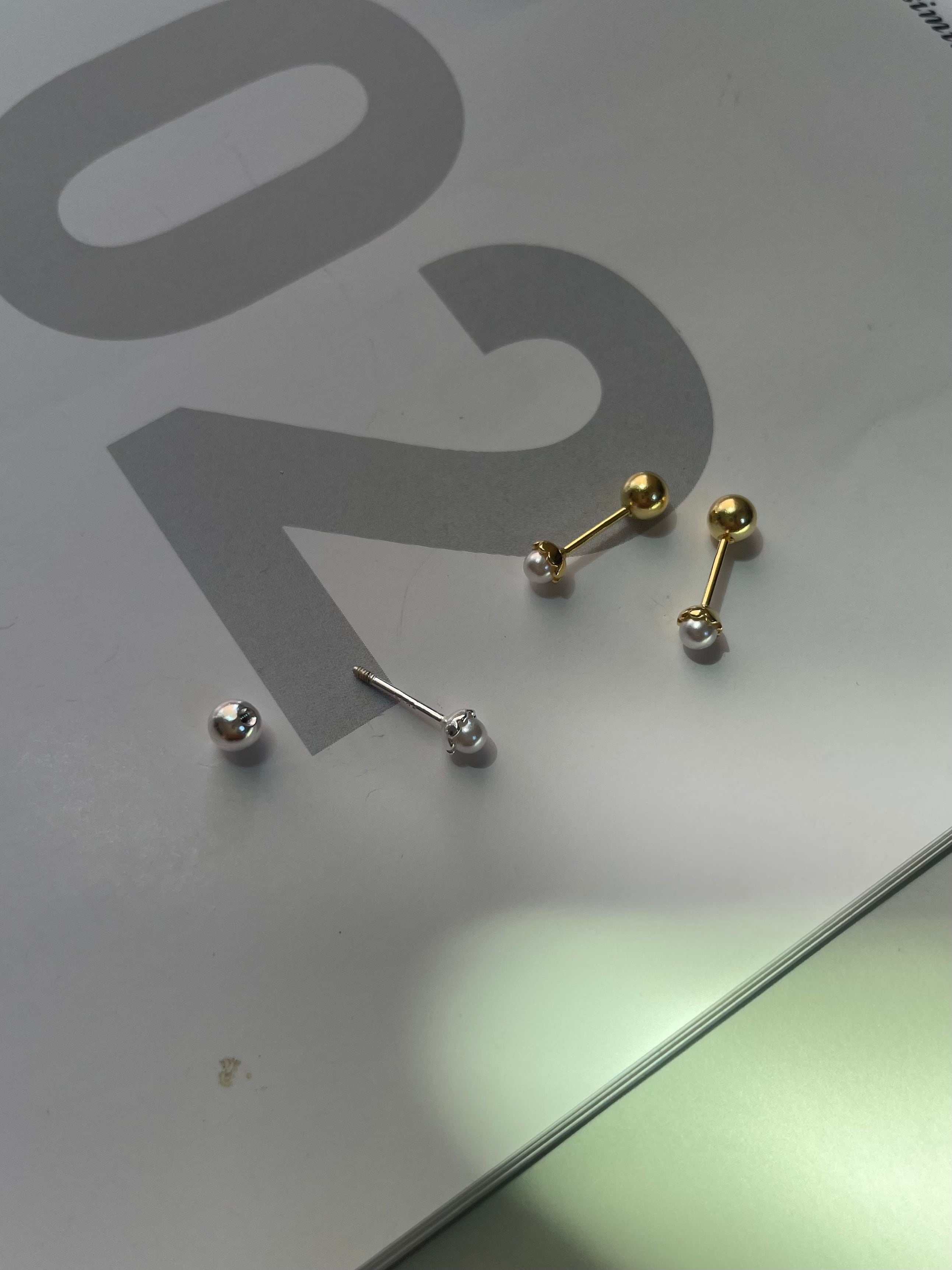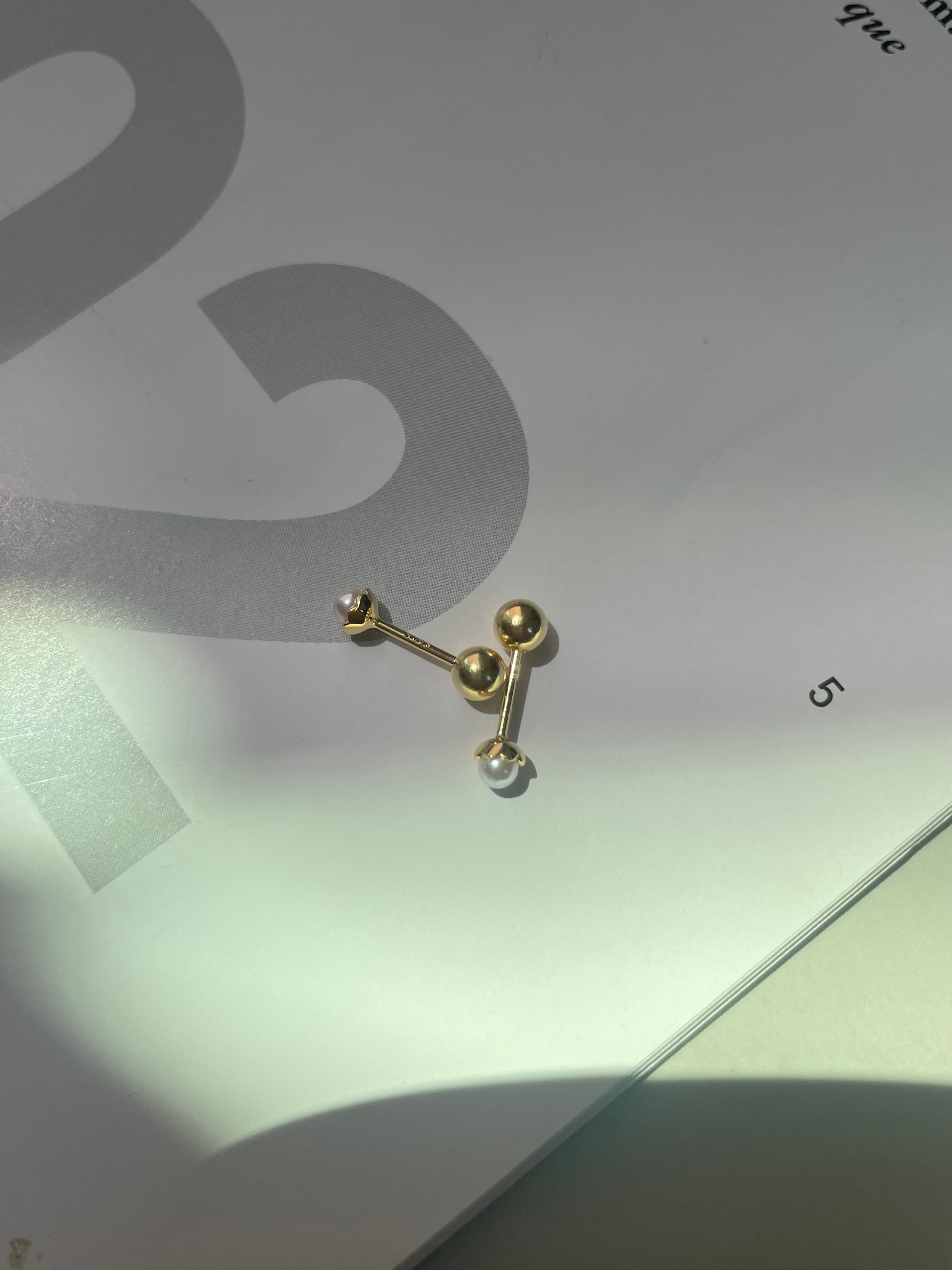小粒のパールが耳元に上品な輝きを添える、ミニマルなデザインのピアス。