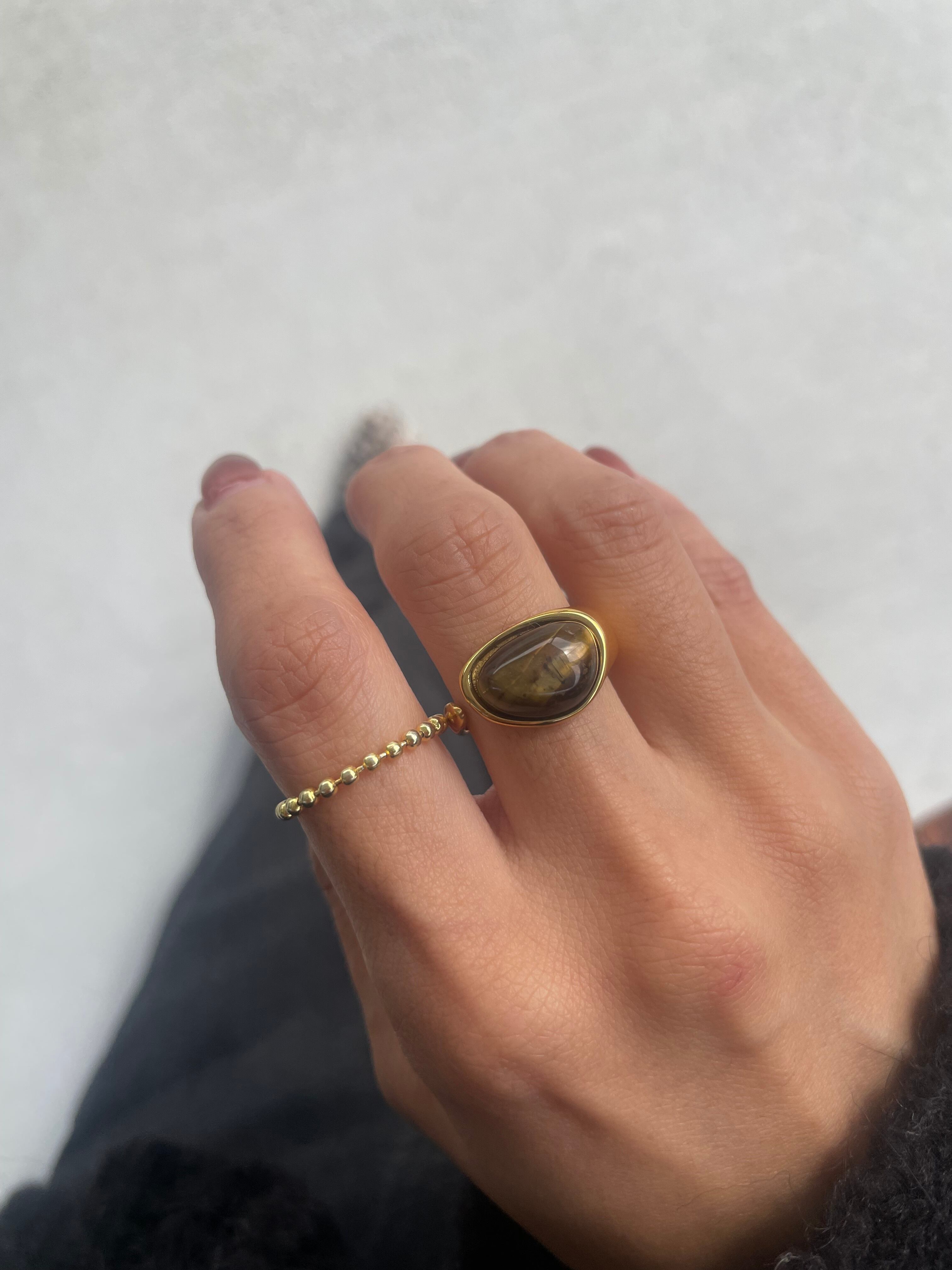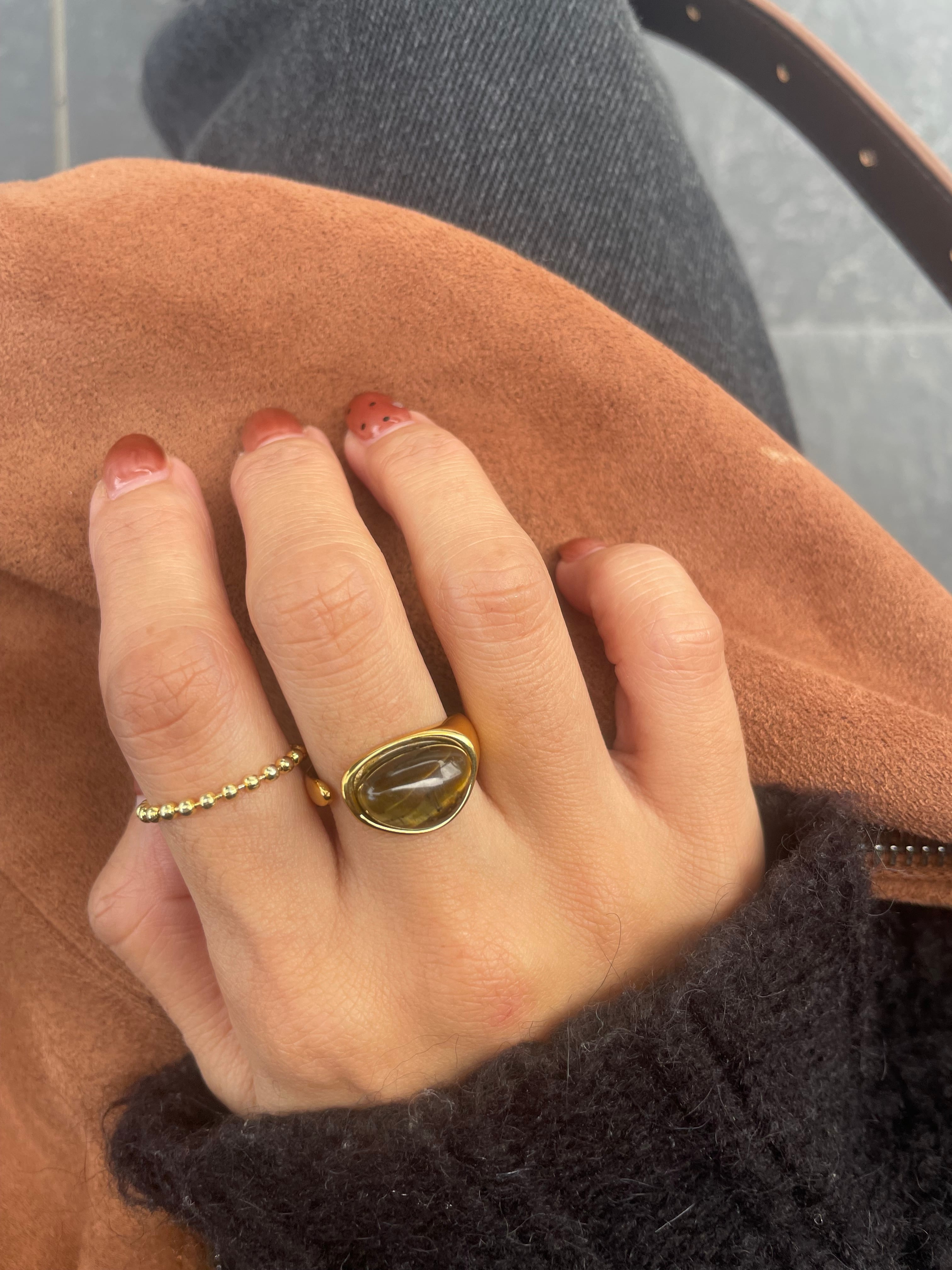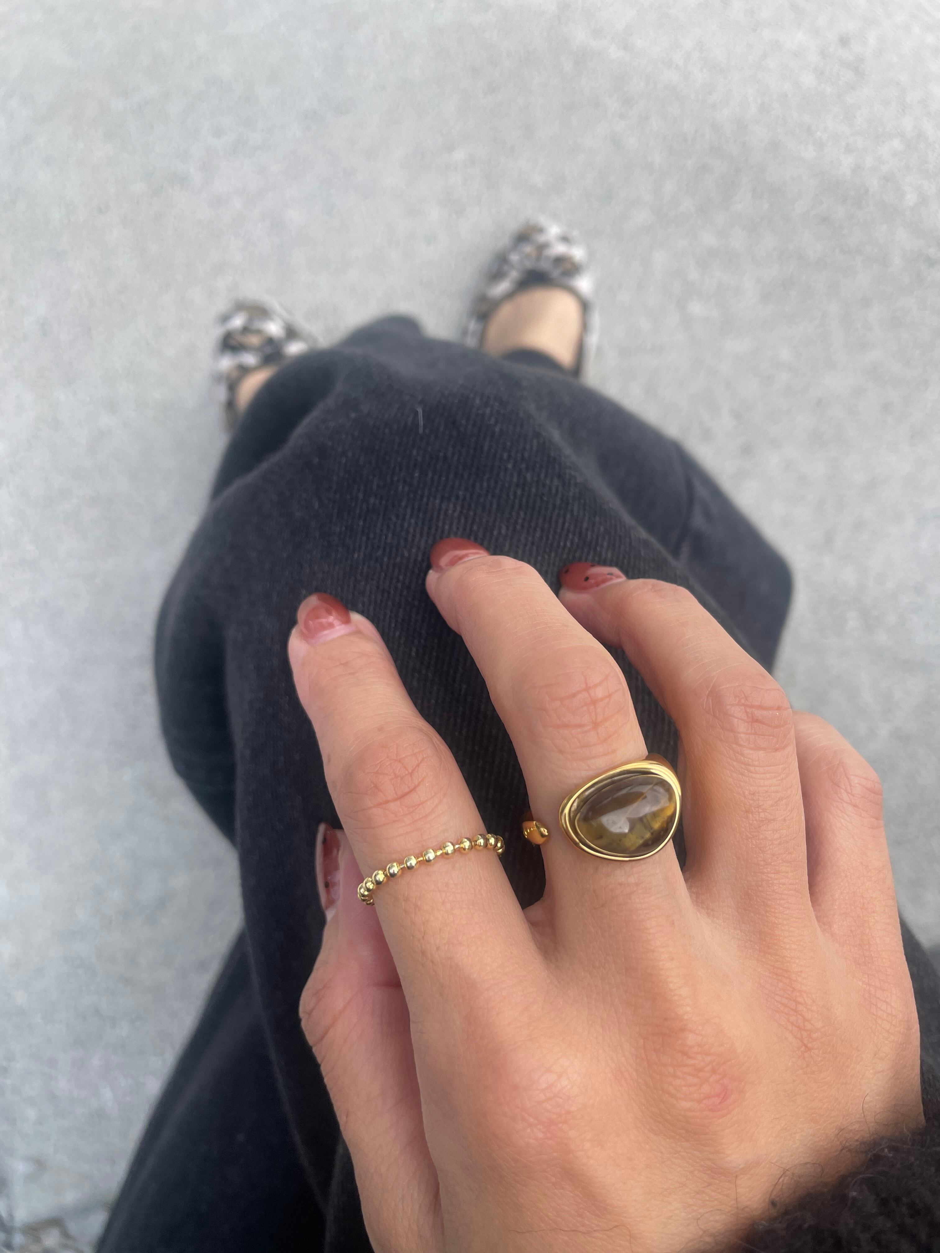 艶やかなゴールドに、天然石のような深みのあるカラーを合わせたトーンミックスリング。