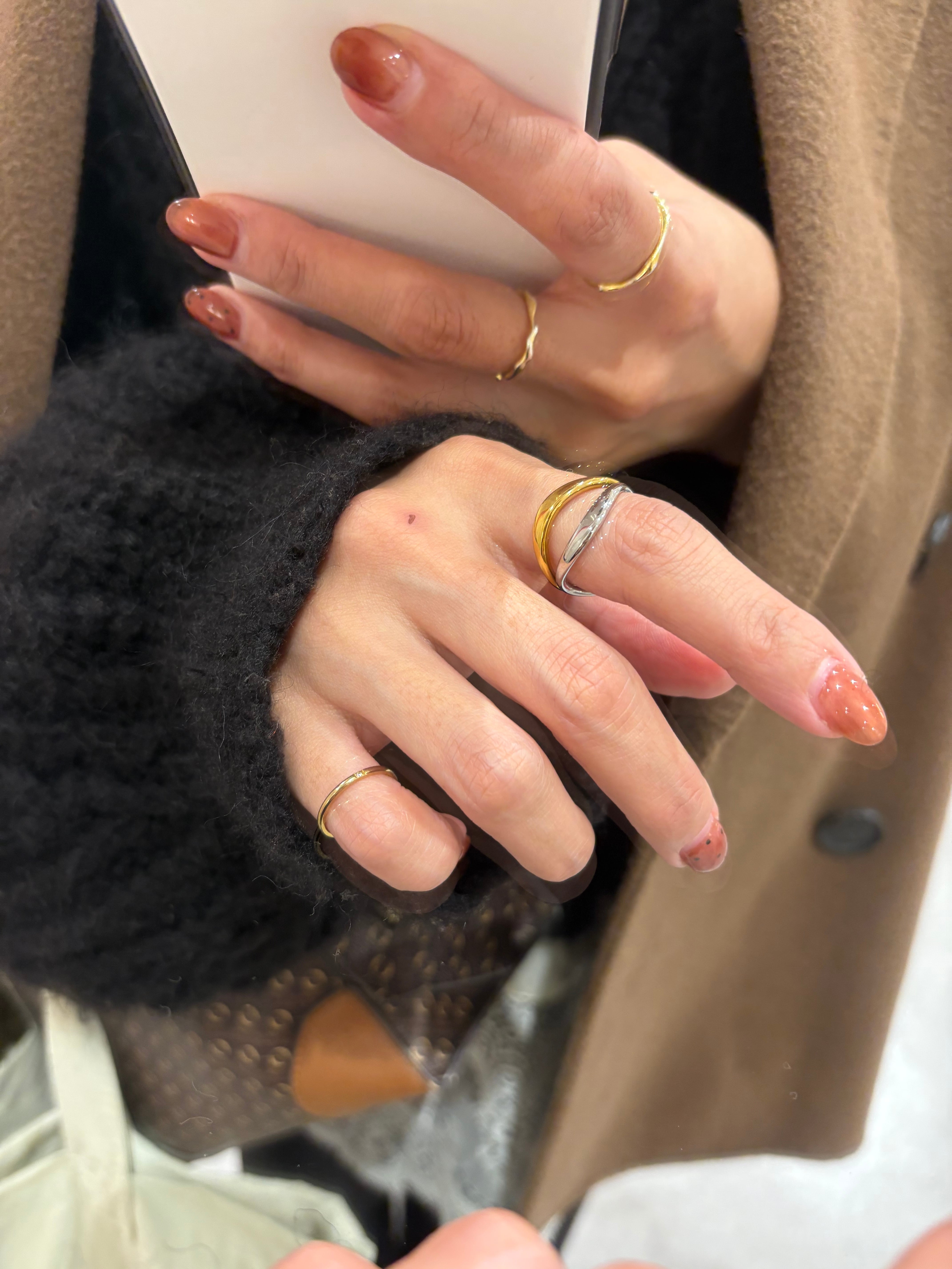 柔らかな曲線が描くラインが指に寄り添い、シンプルながらも印象的な手元を演出します。