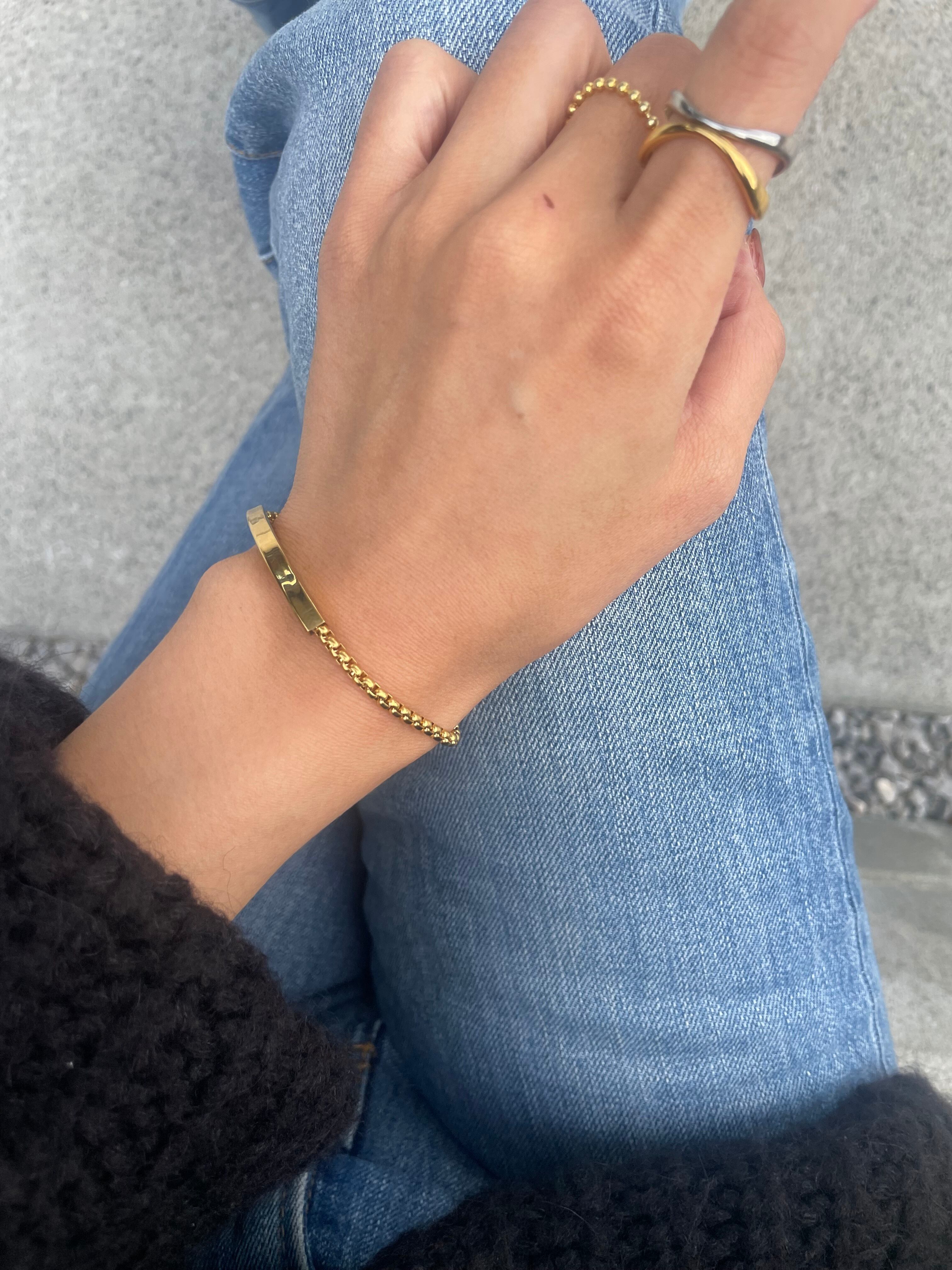 やわらかく弧を描くメタルラインが手元にフィットする、カーブデザインのボックスブレスレット。