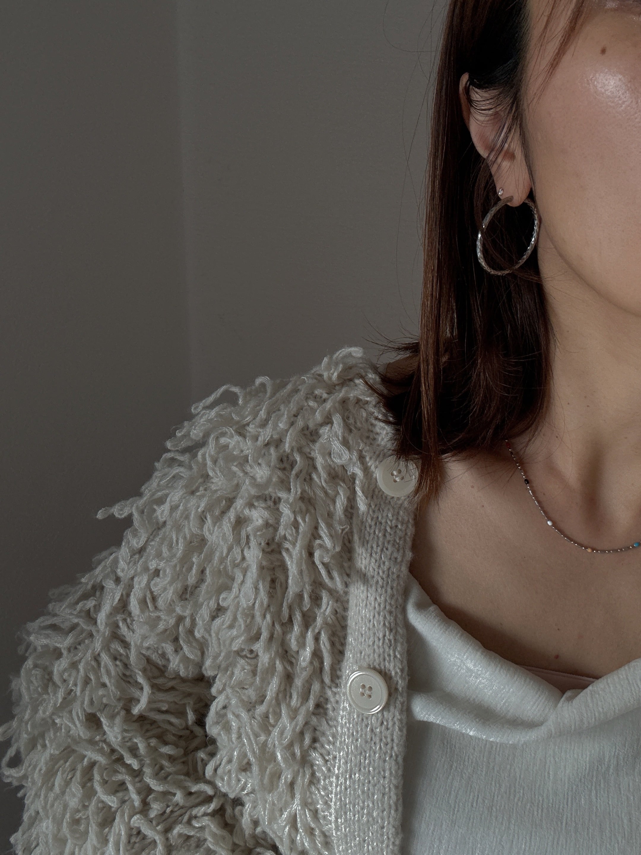 シンプルな形にニュアンスのある表情が加わり、顔まわりを明るく見せてくれます。