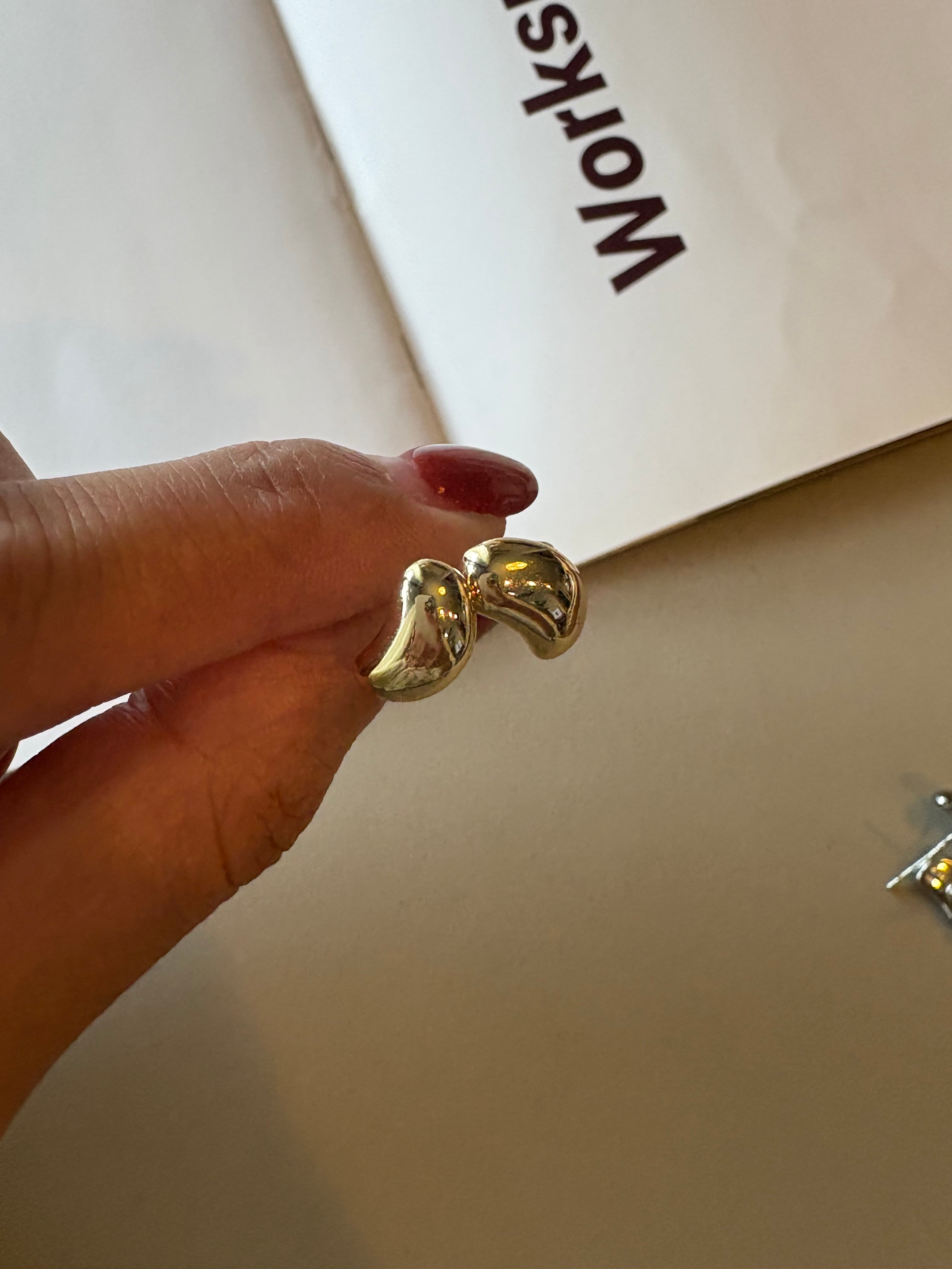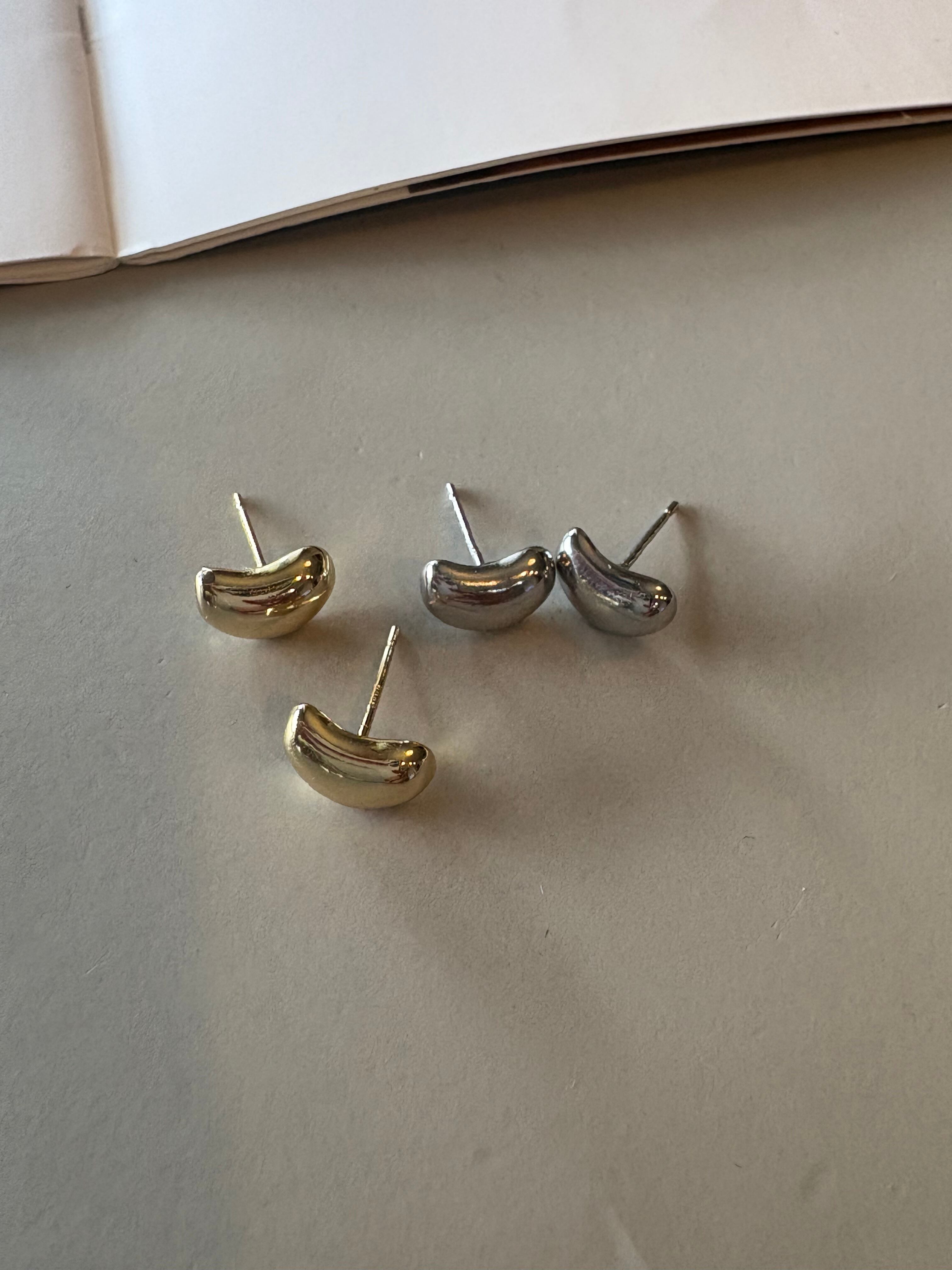 ころんとした立体的なフォルムが耳元にやさしいニュアンスを添えるドロップピアス。