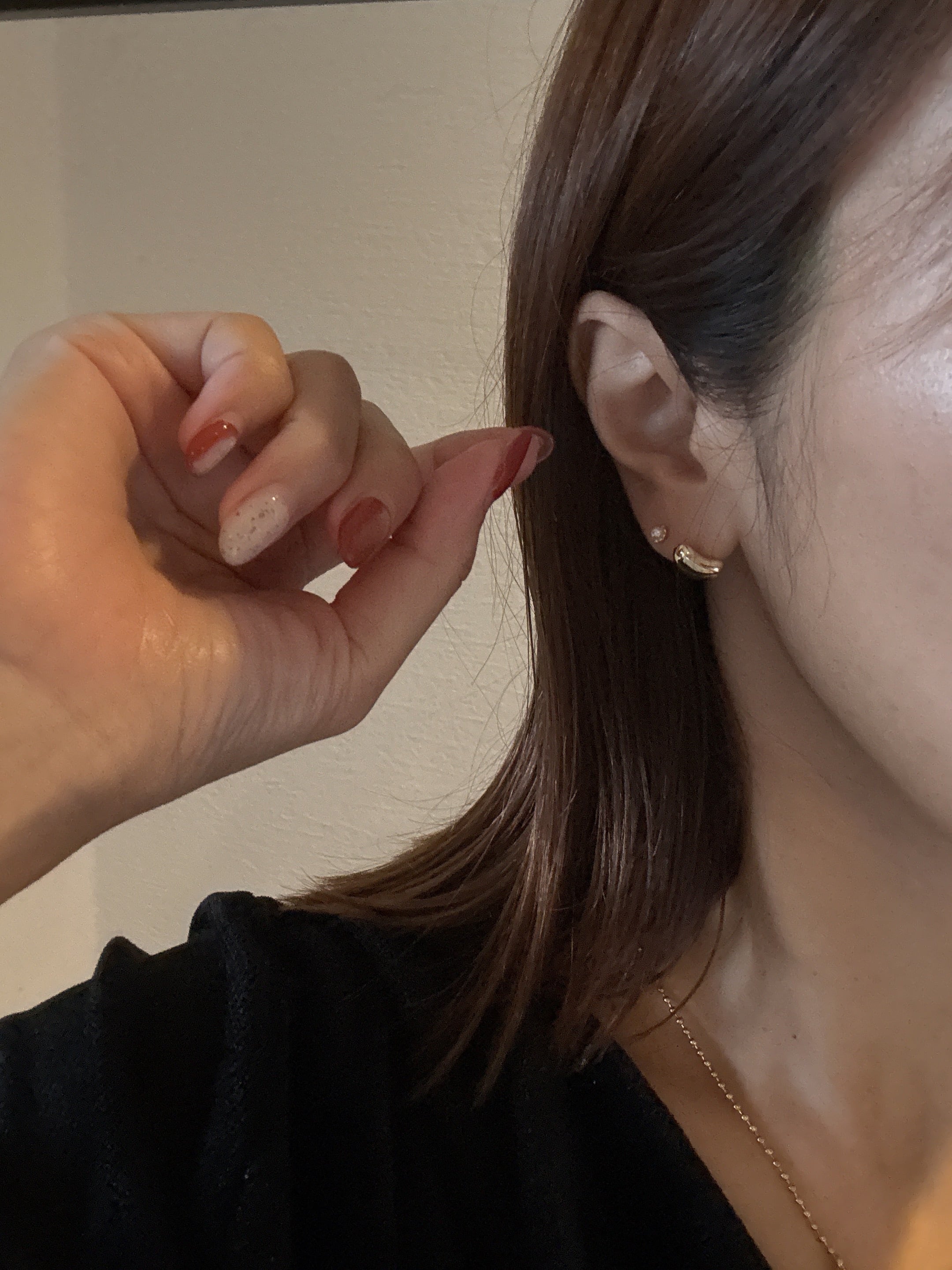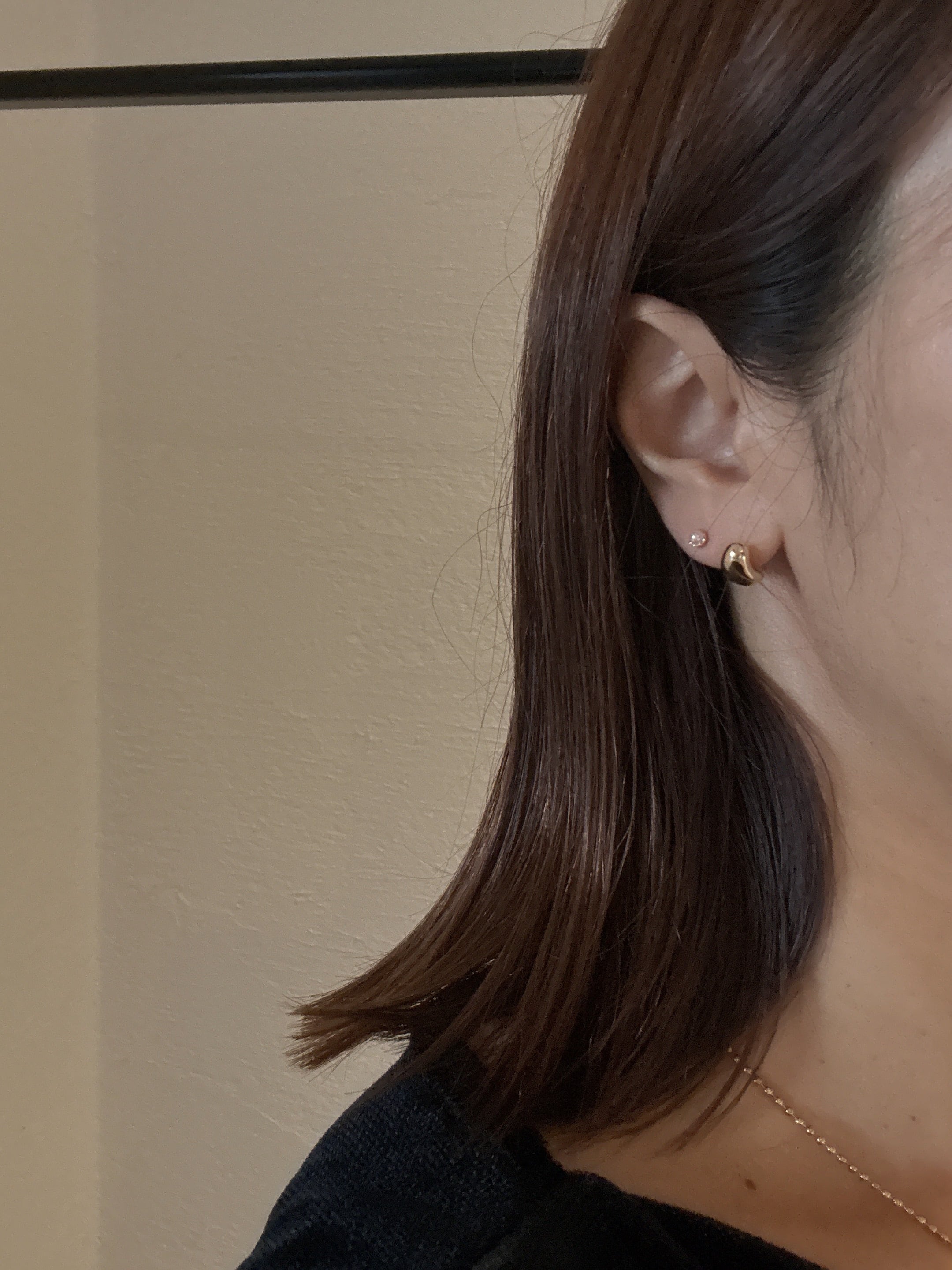 小ぶりなのでデイリーに使いやすく、他のピアスとの重ねづけにも相性抜群です。