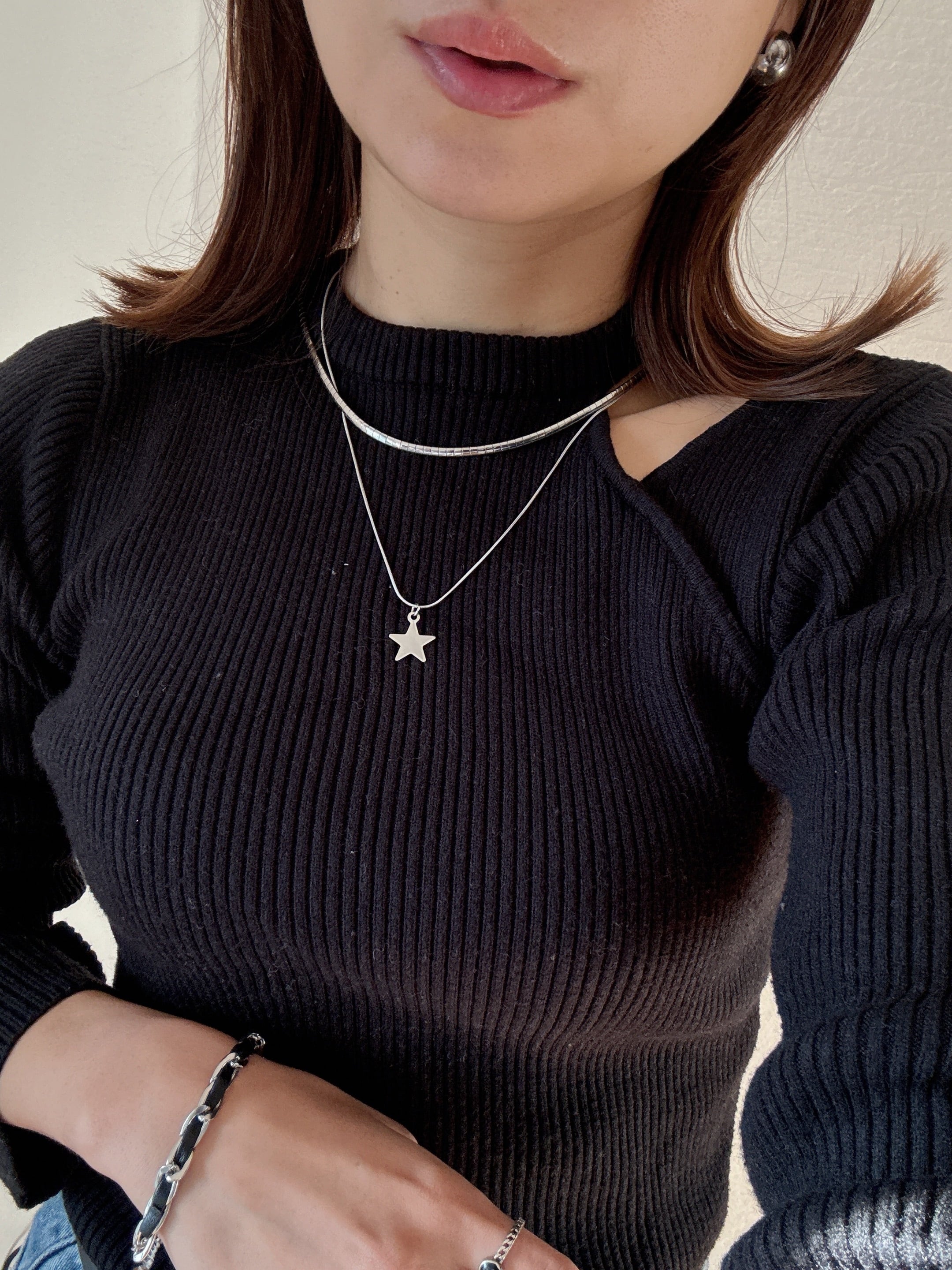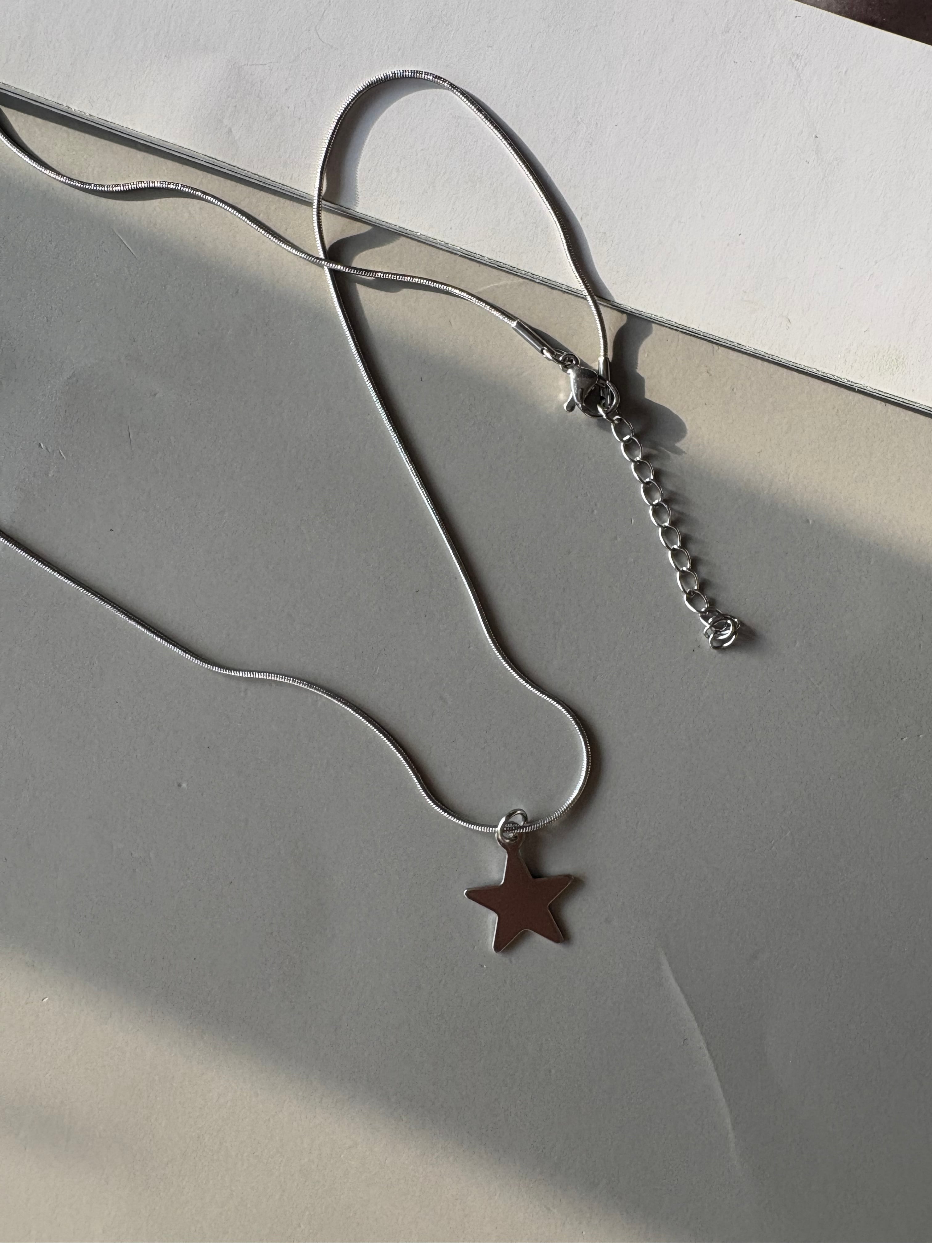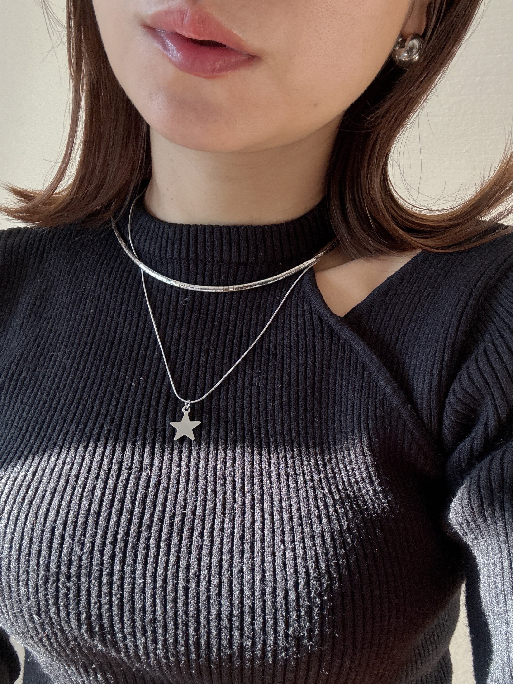 星チャームが胸元で上品に輝き、