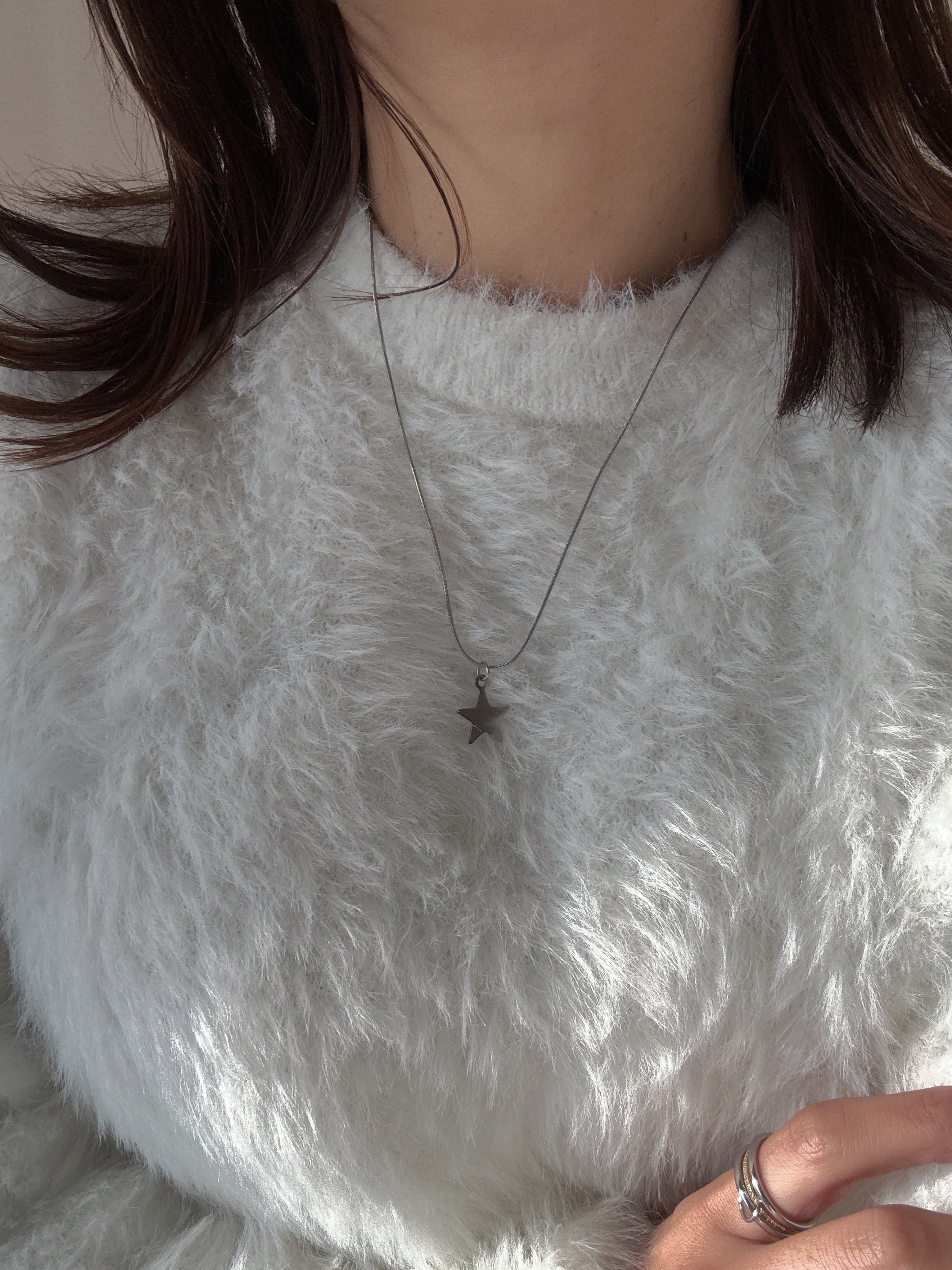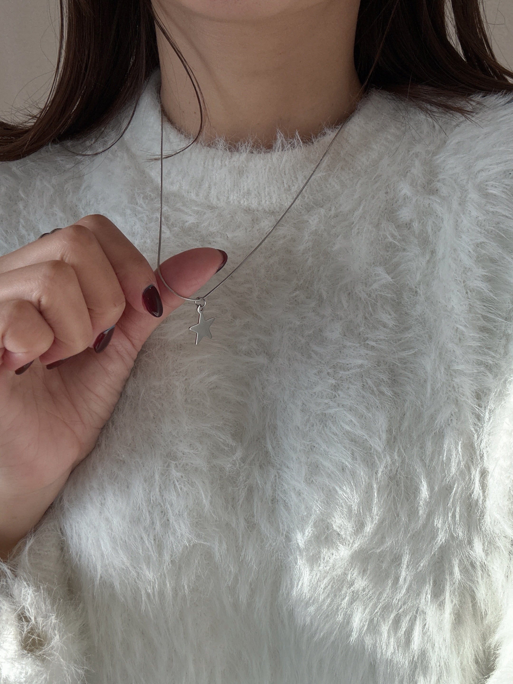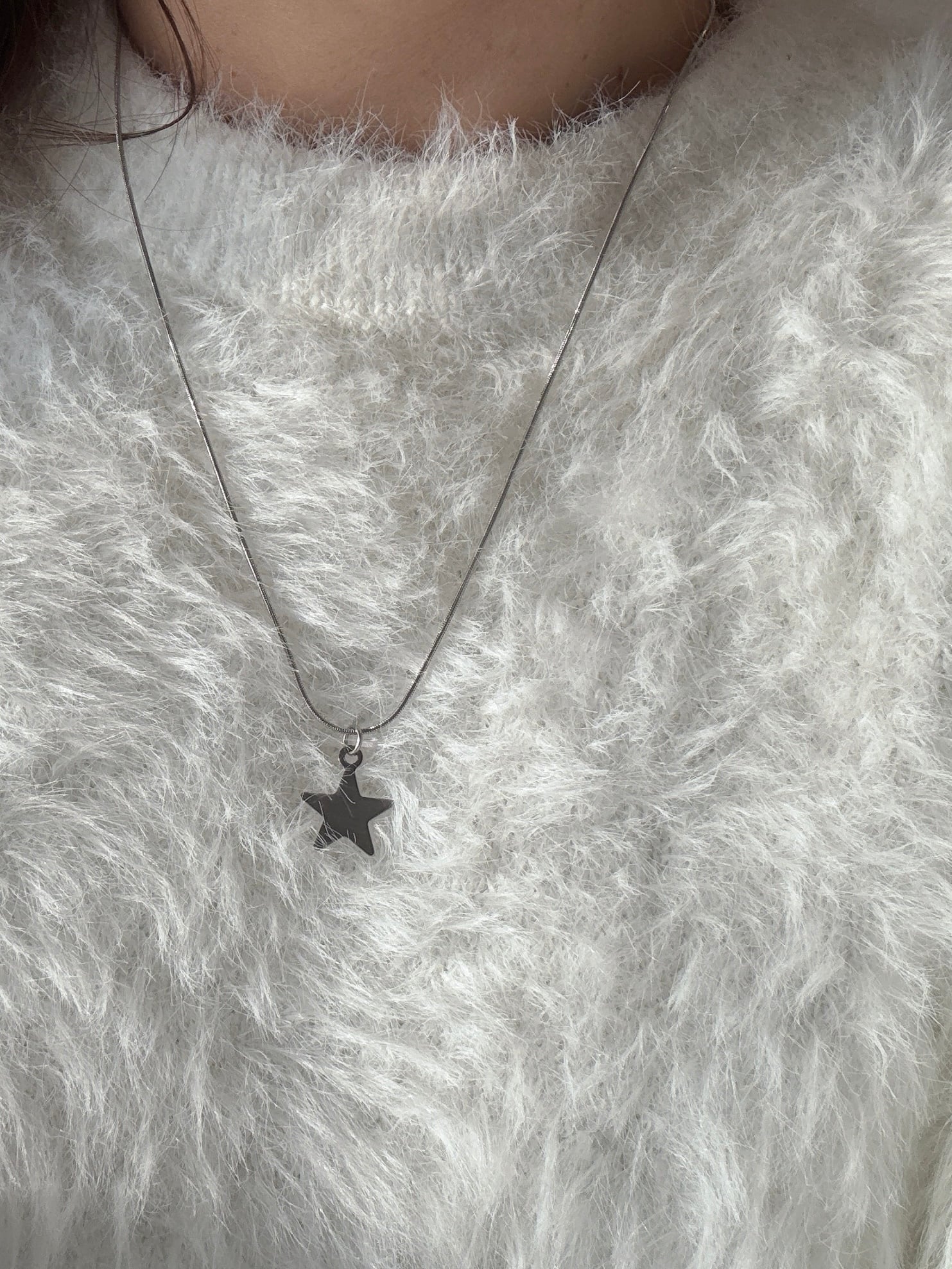 星チャームが胸元で上品に輝き、