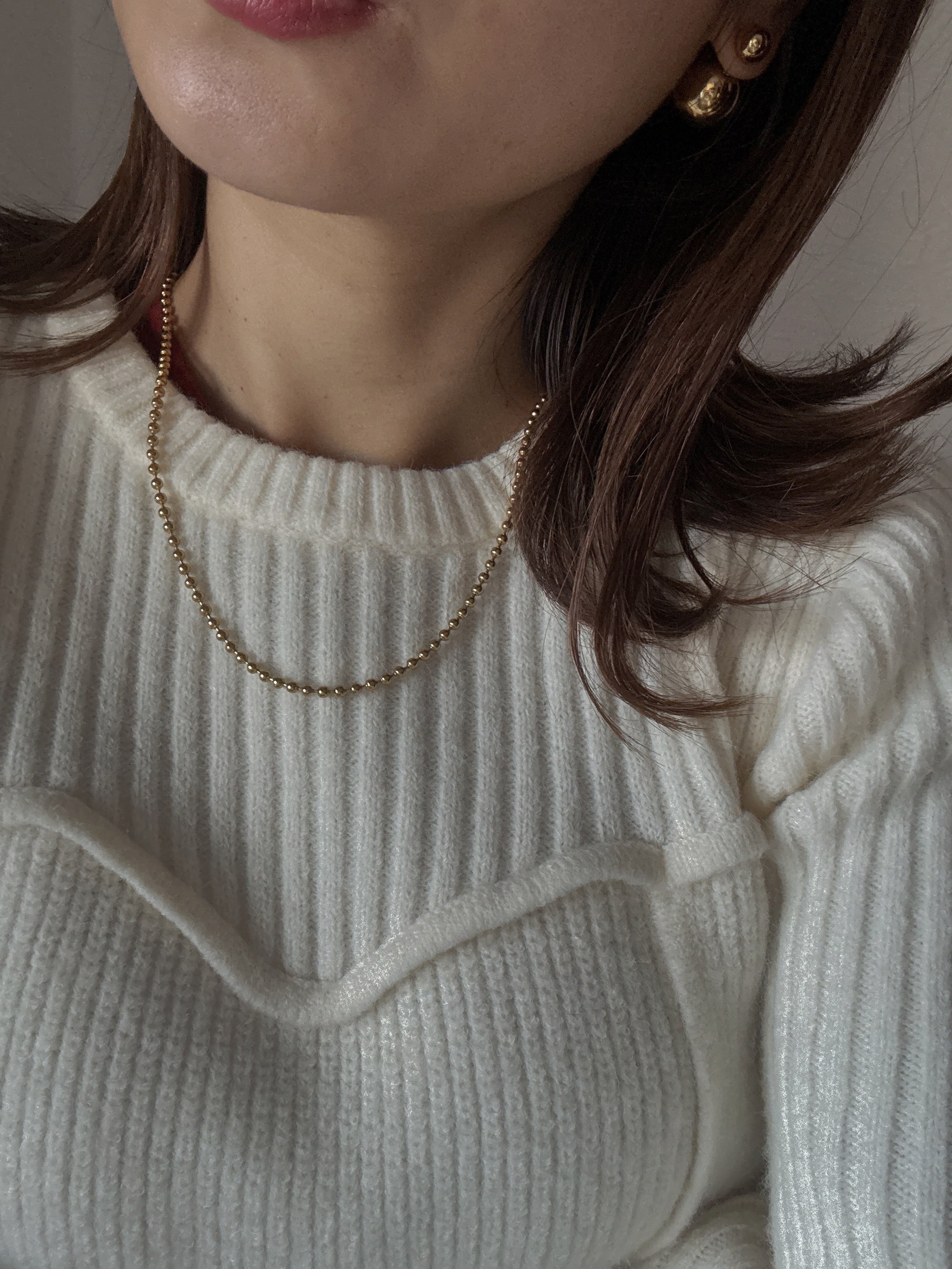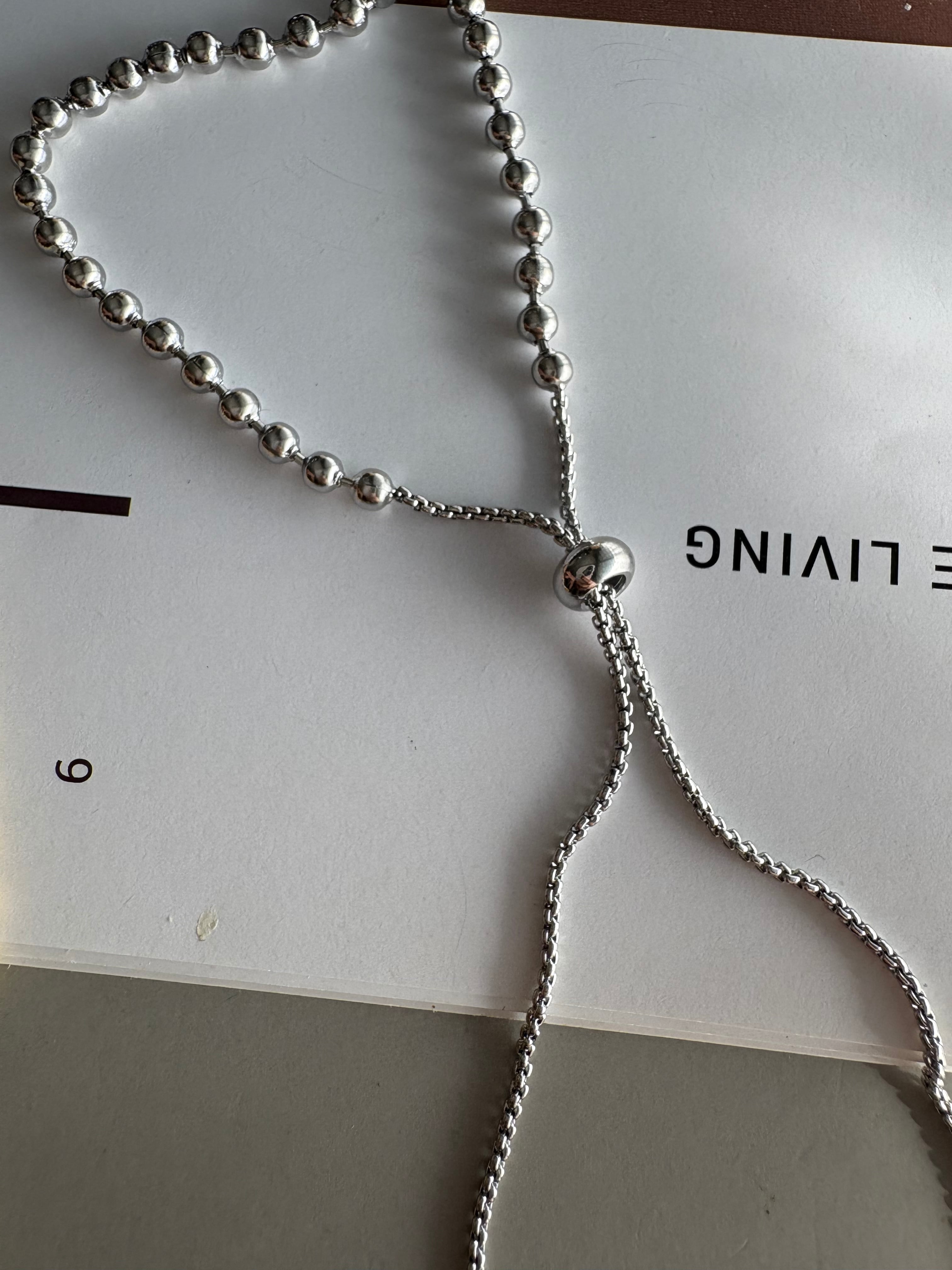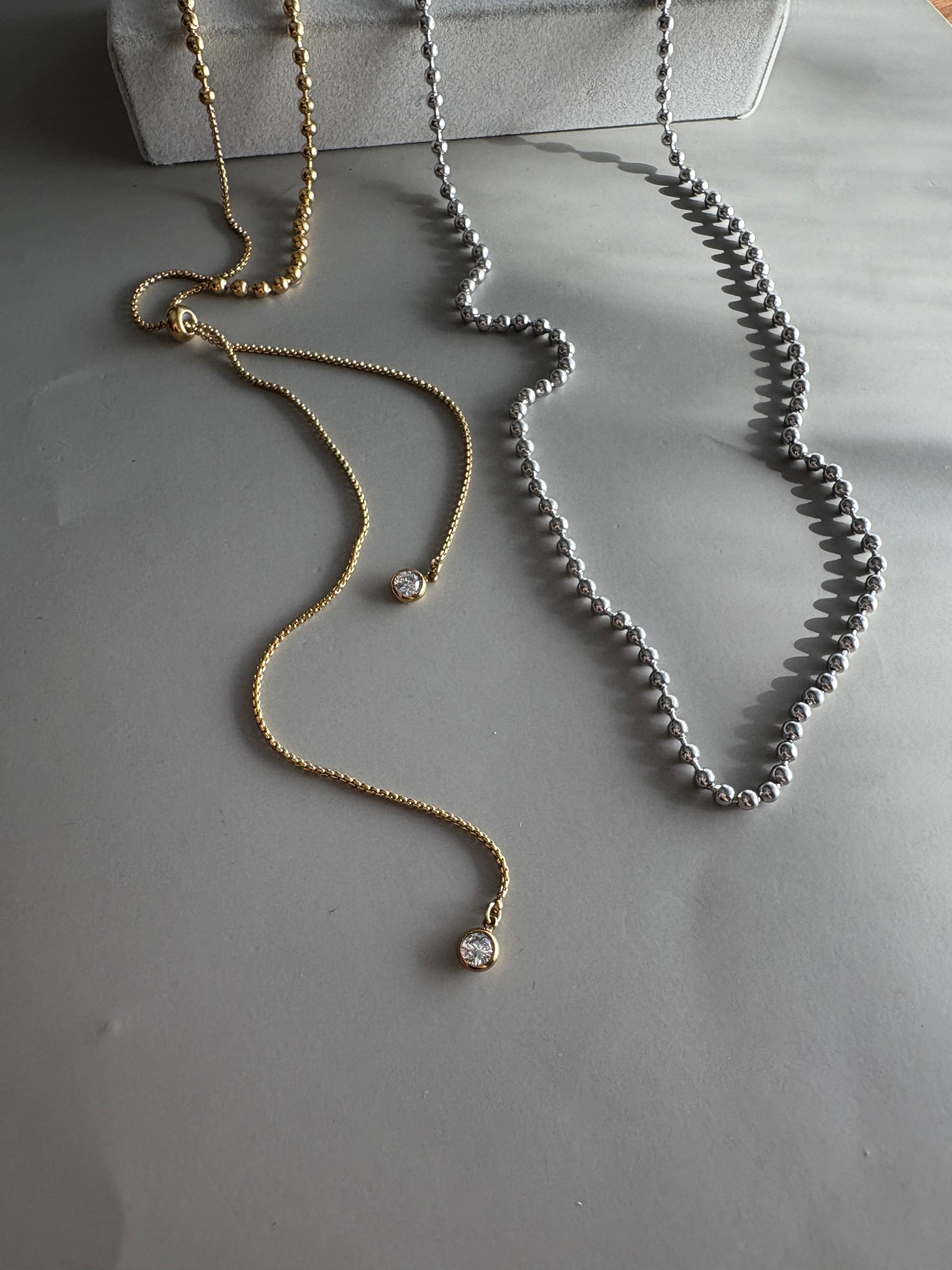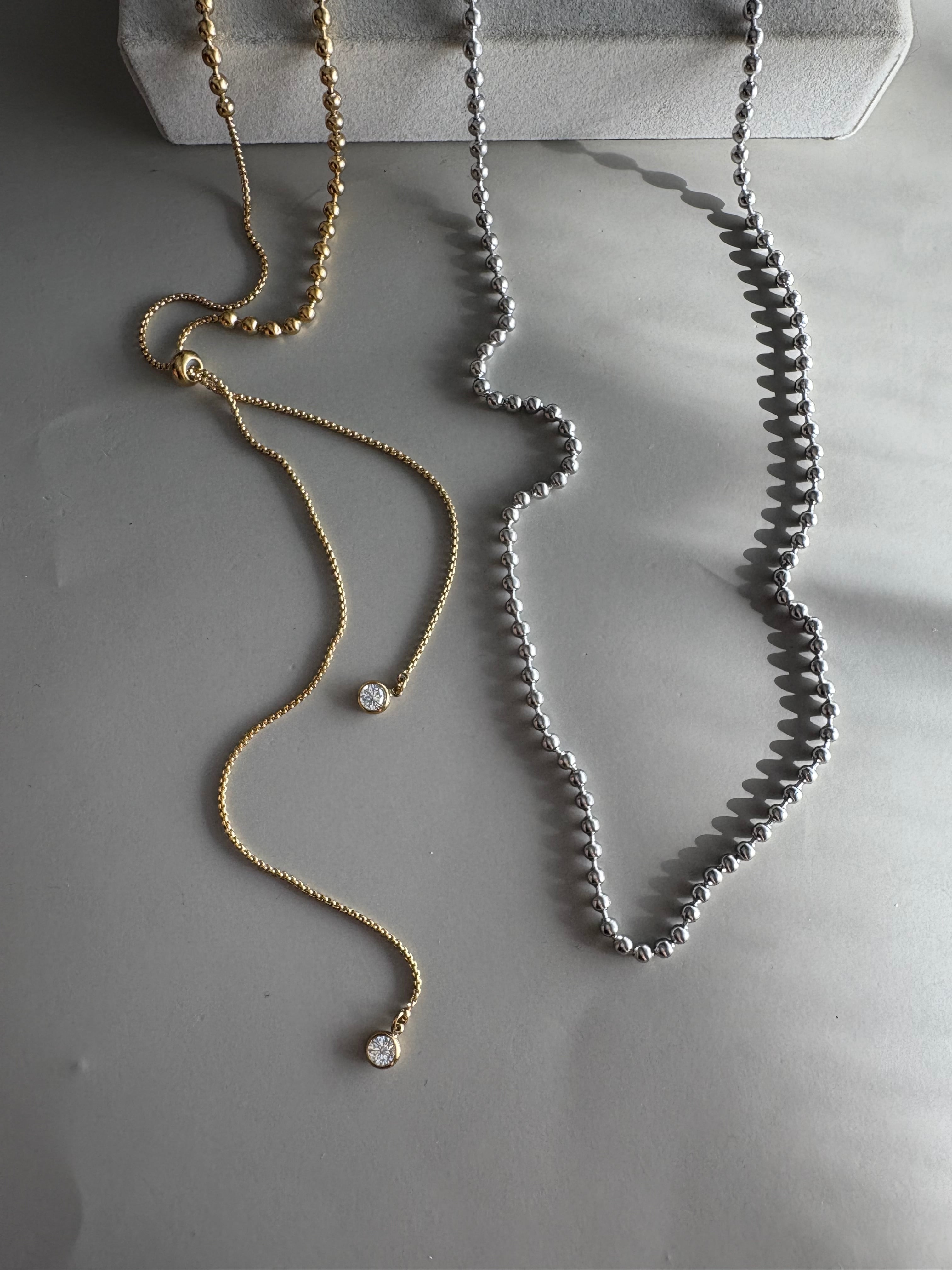存在感のあるボールチェーンと、繊細なチェーンを組み合わせた