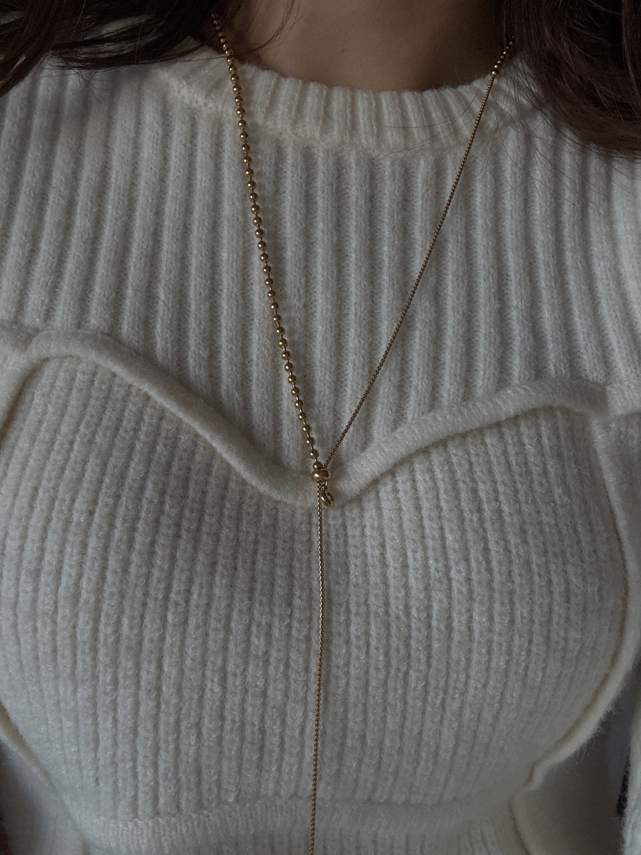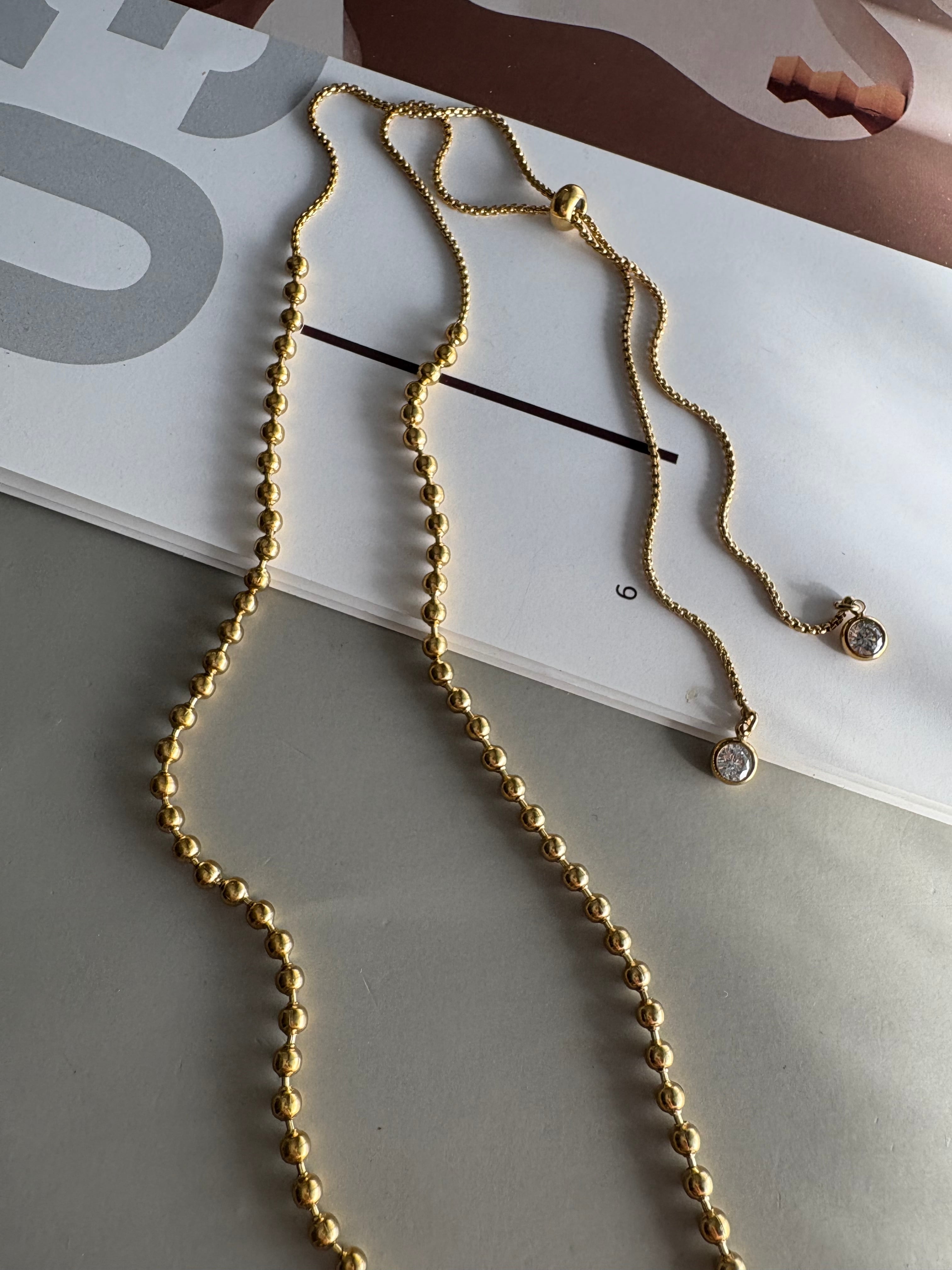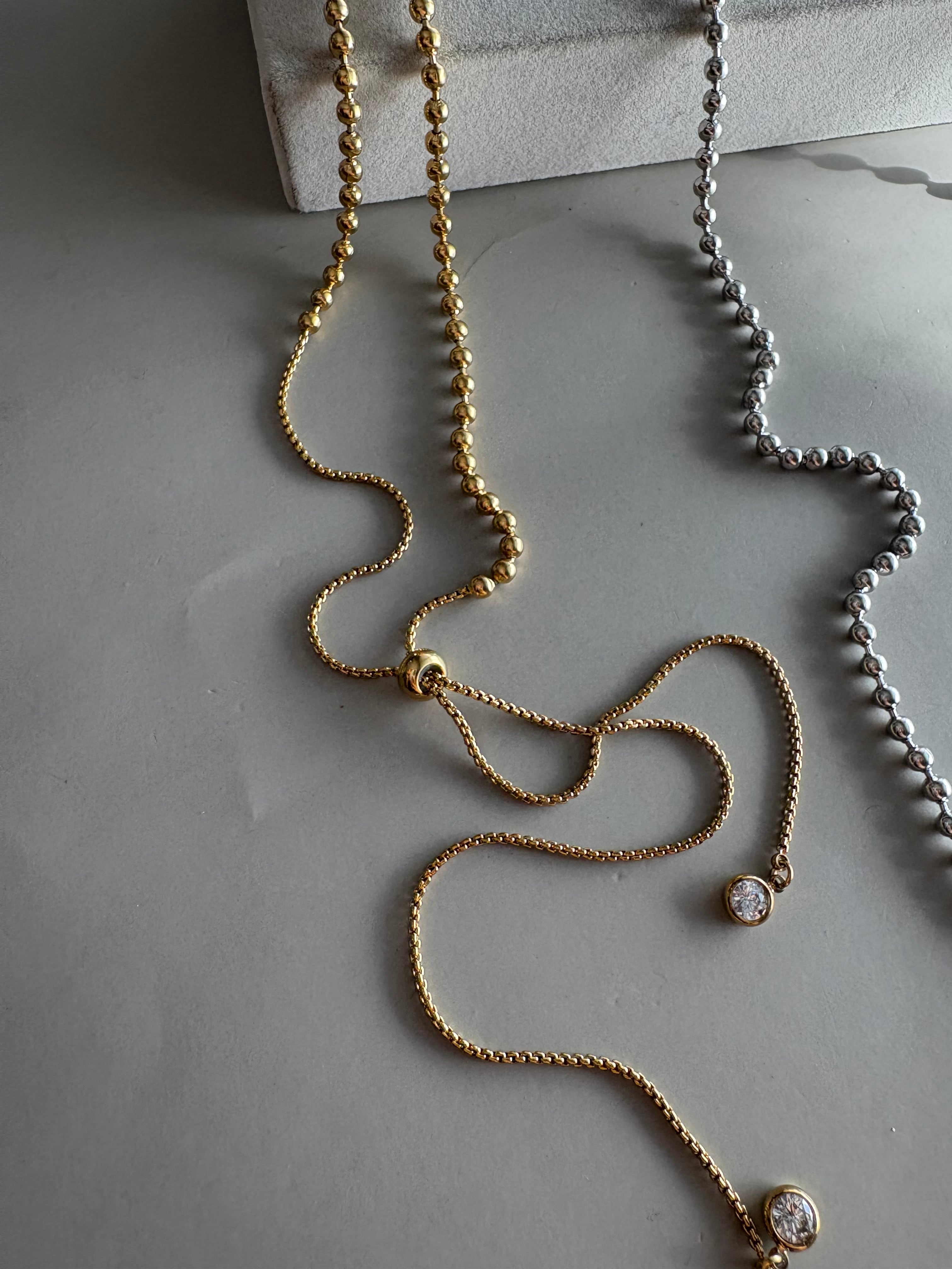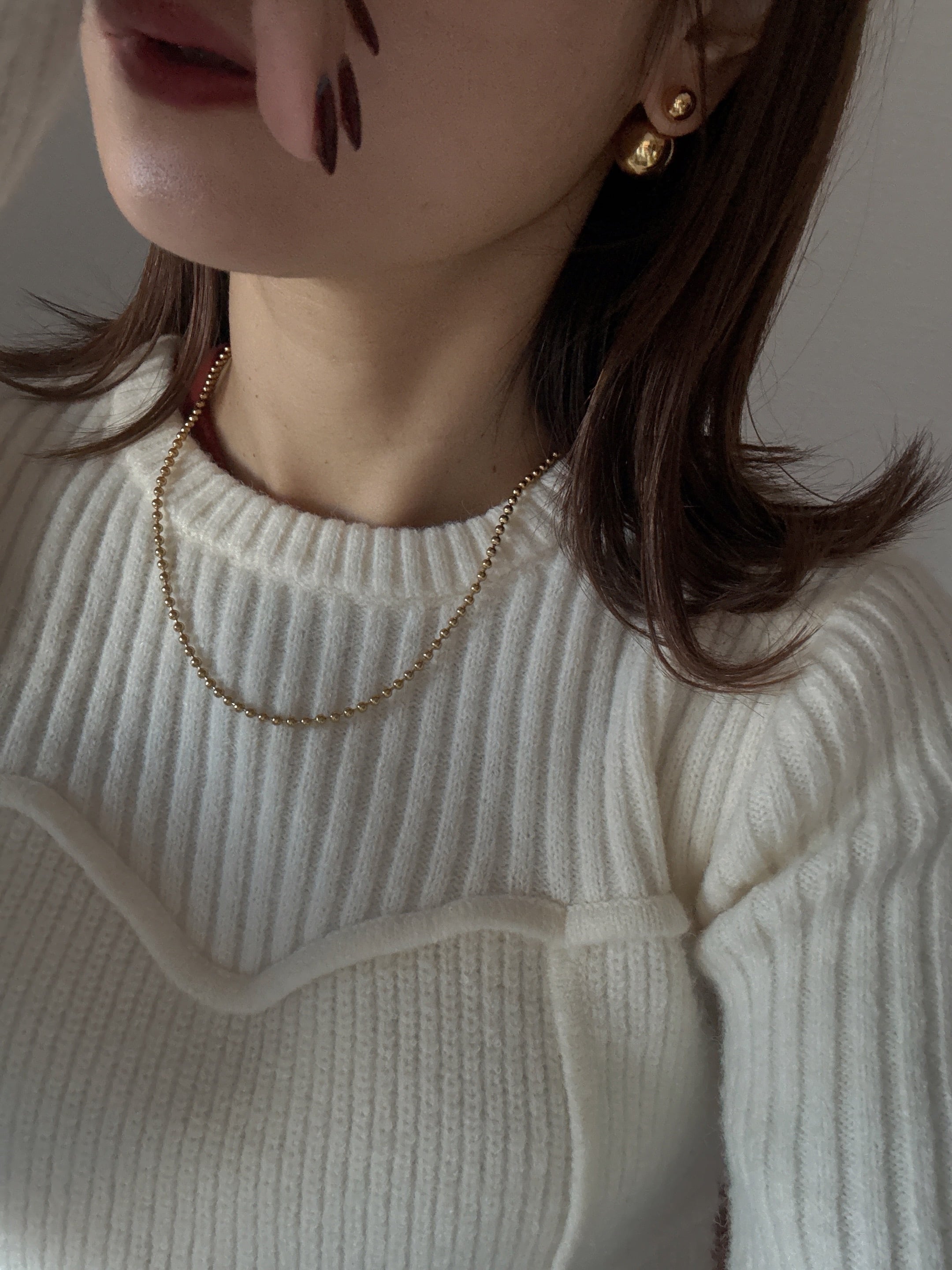 存在感のあるボールチェーンと、繊細なチェーンを組み合わせた