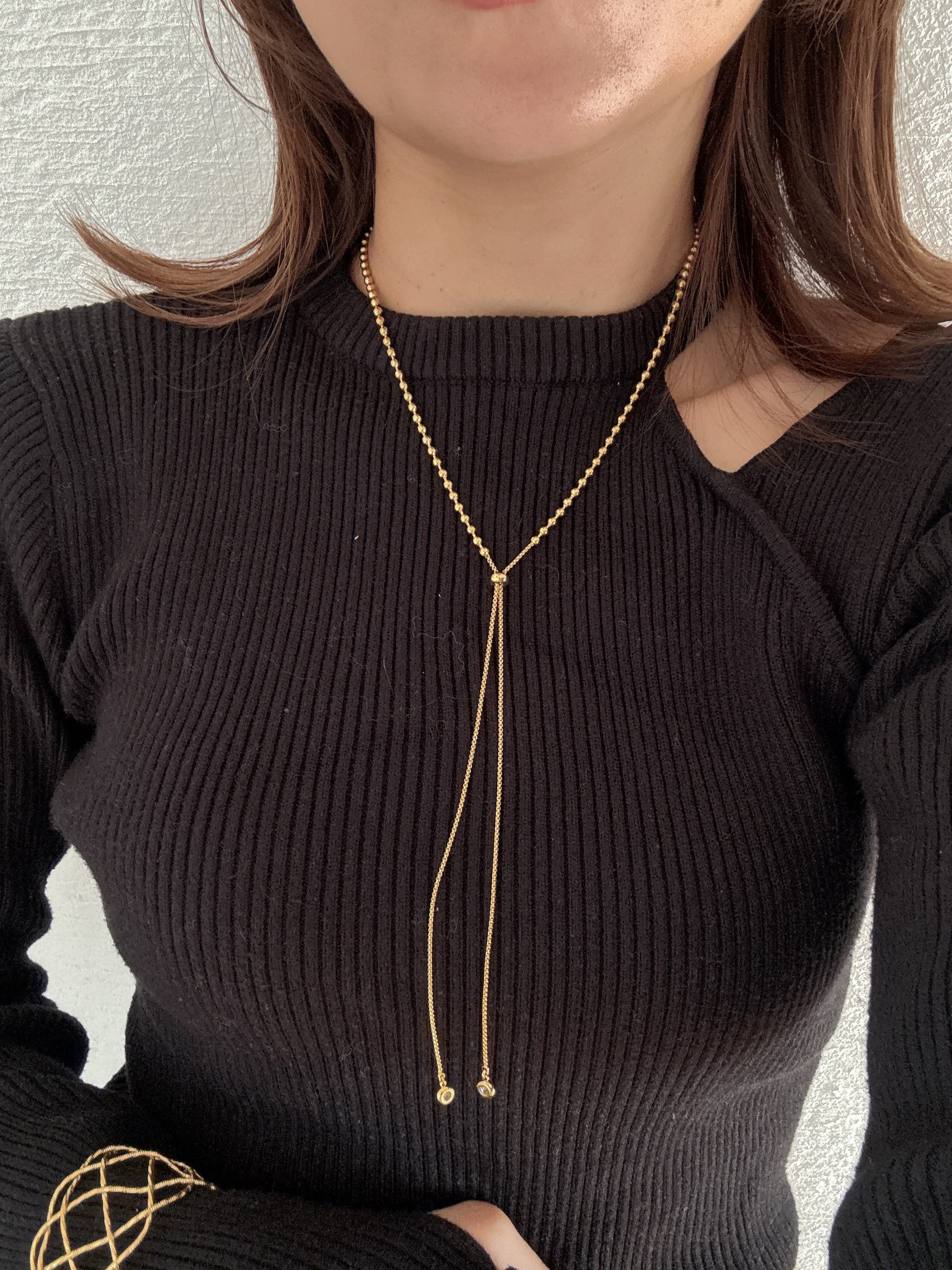 チョーカー風にも、ロングネックレスとしても楽しめる2way仕様。