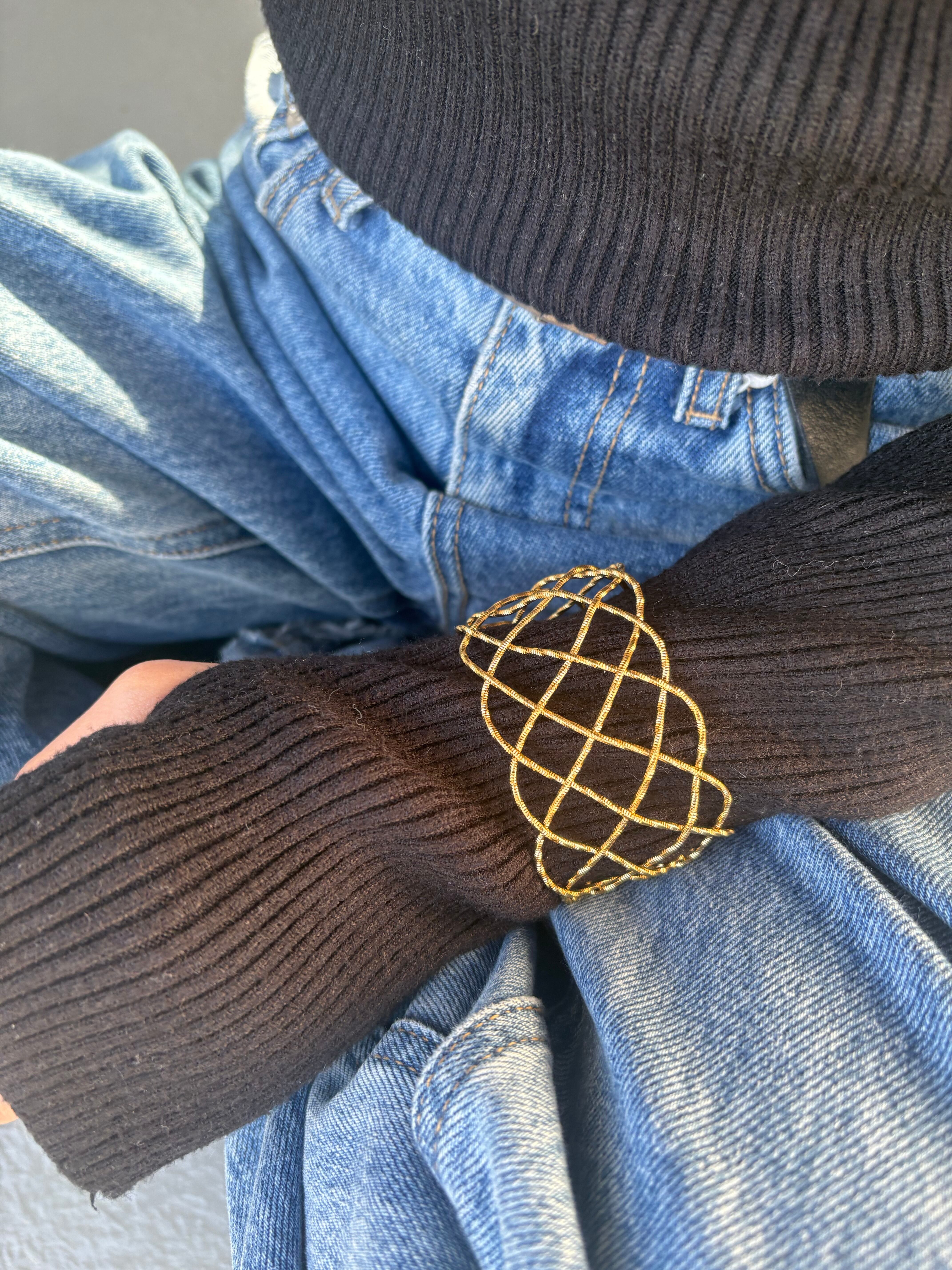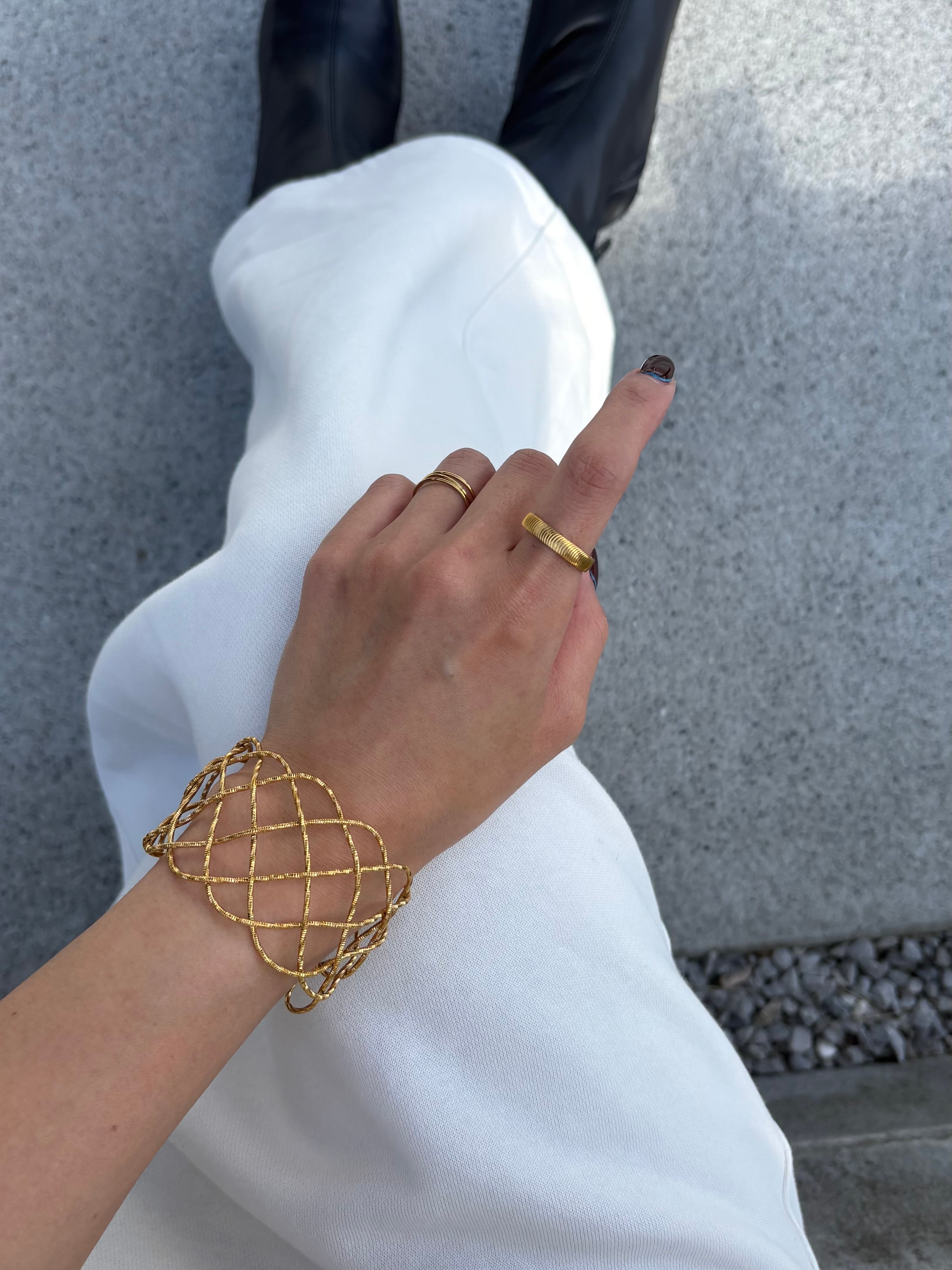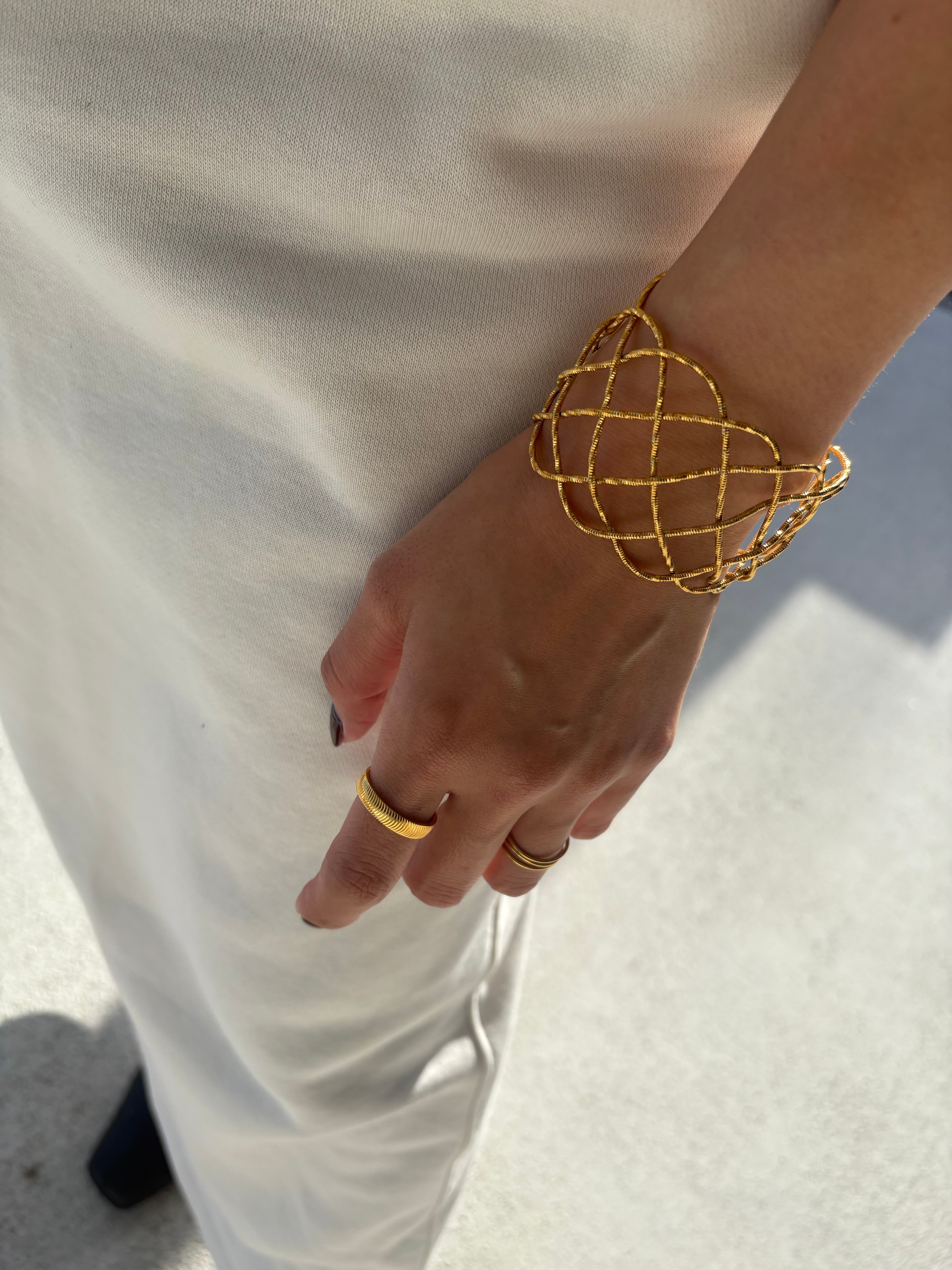 立体的で奥行きのある表情を生み出すインターレースバングル。
