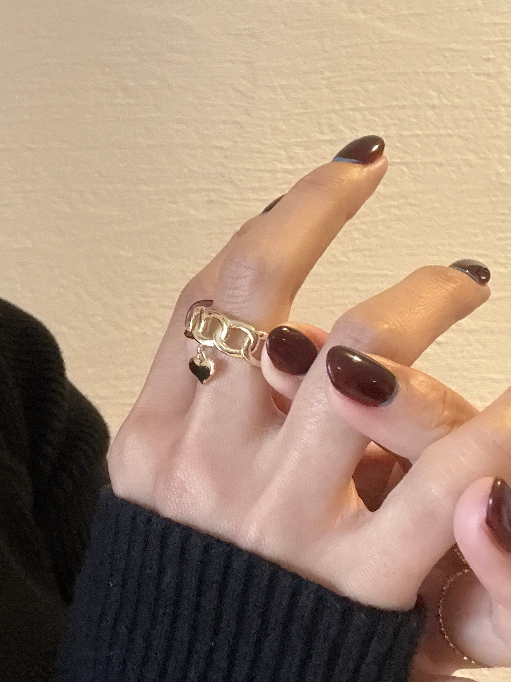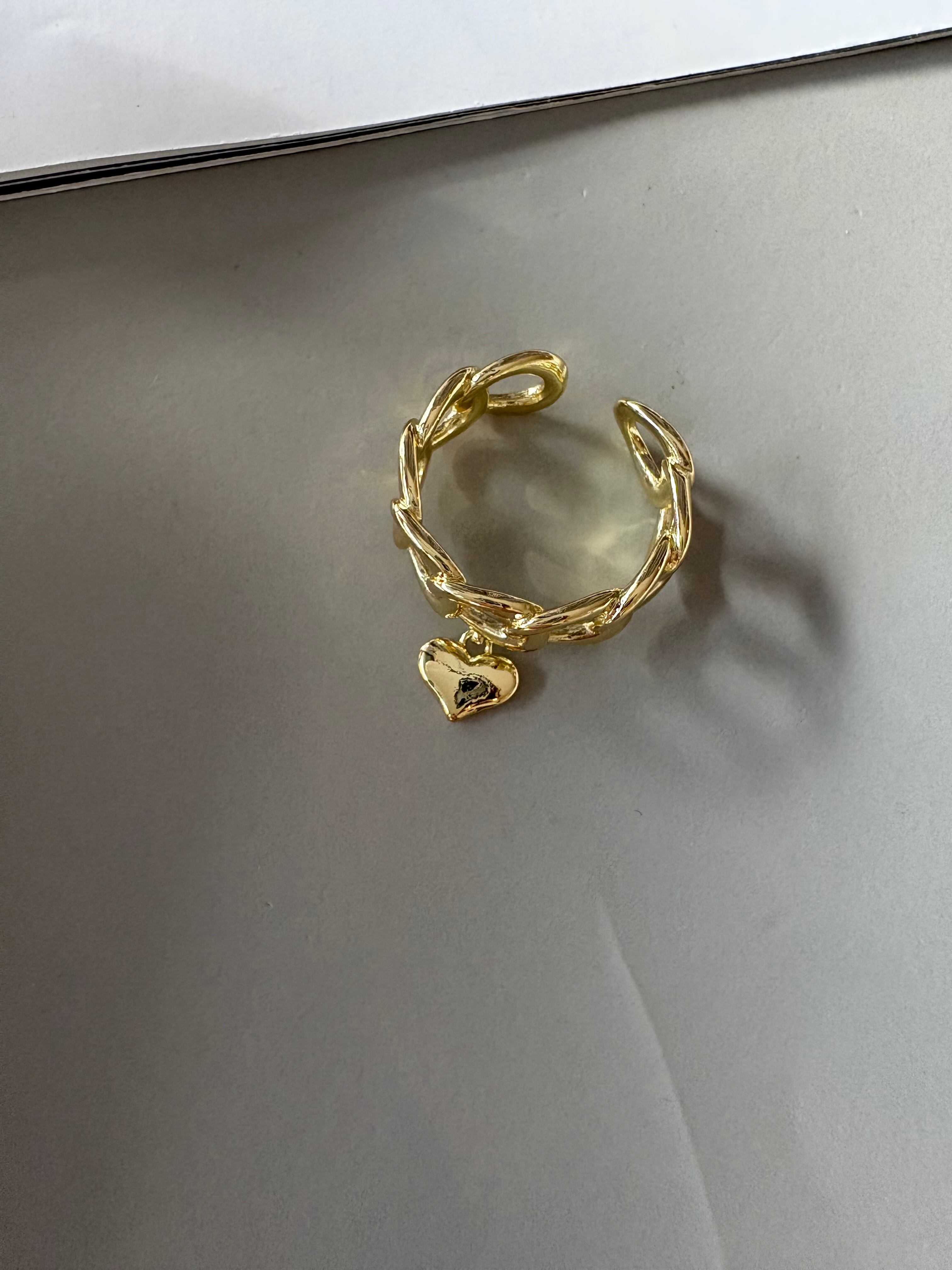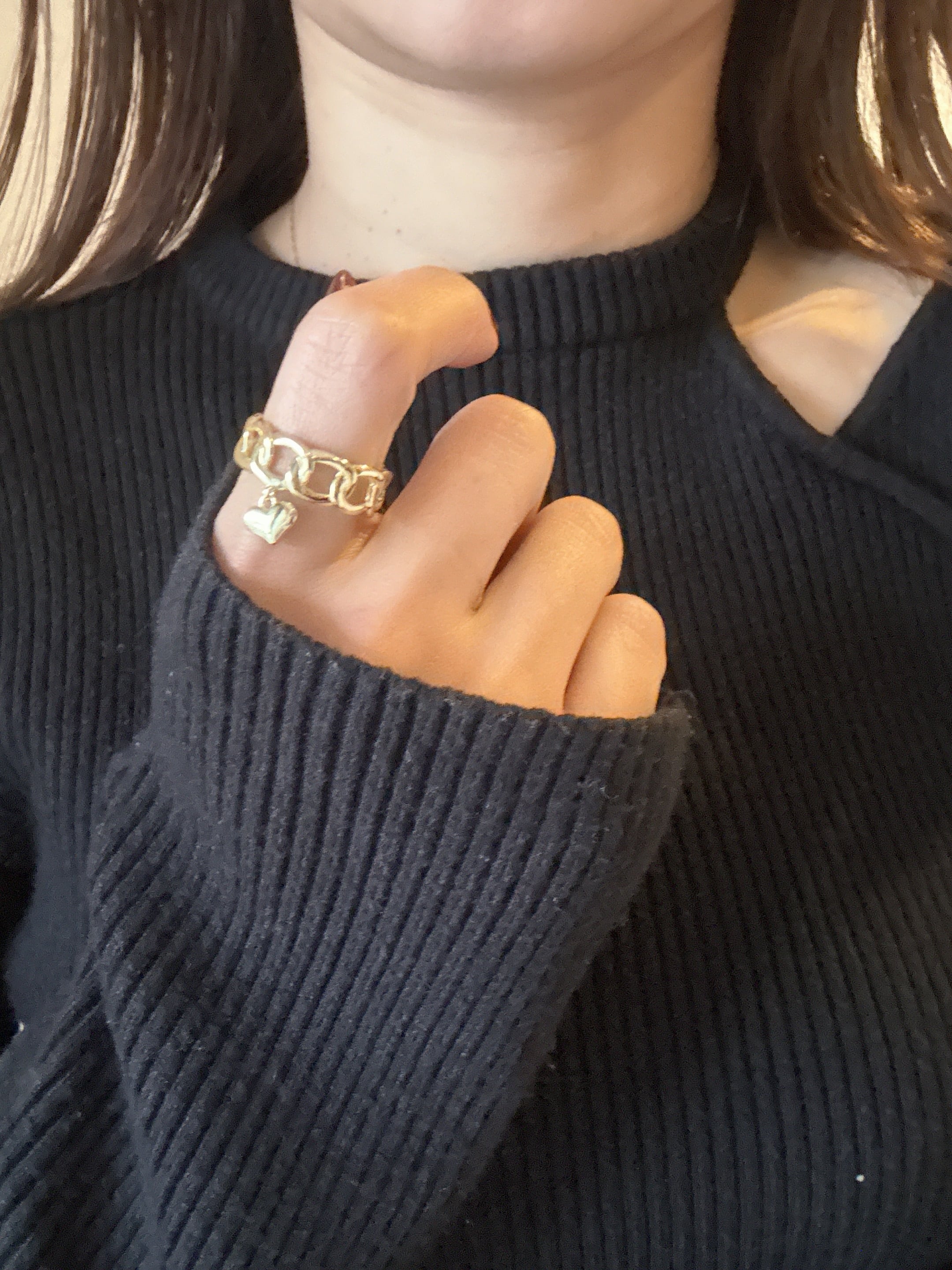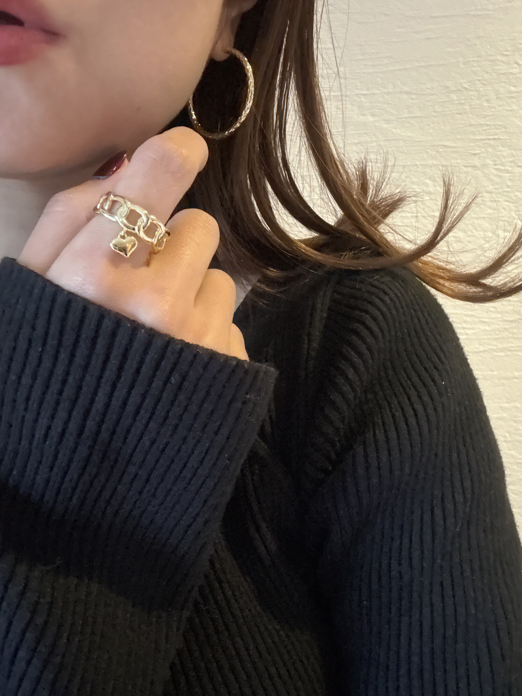 動くたびにハートチャームがさりげなく揺れる、遊び心を添えたオープンリング。