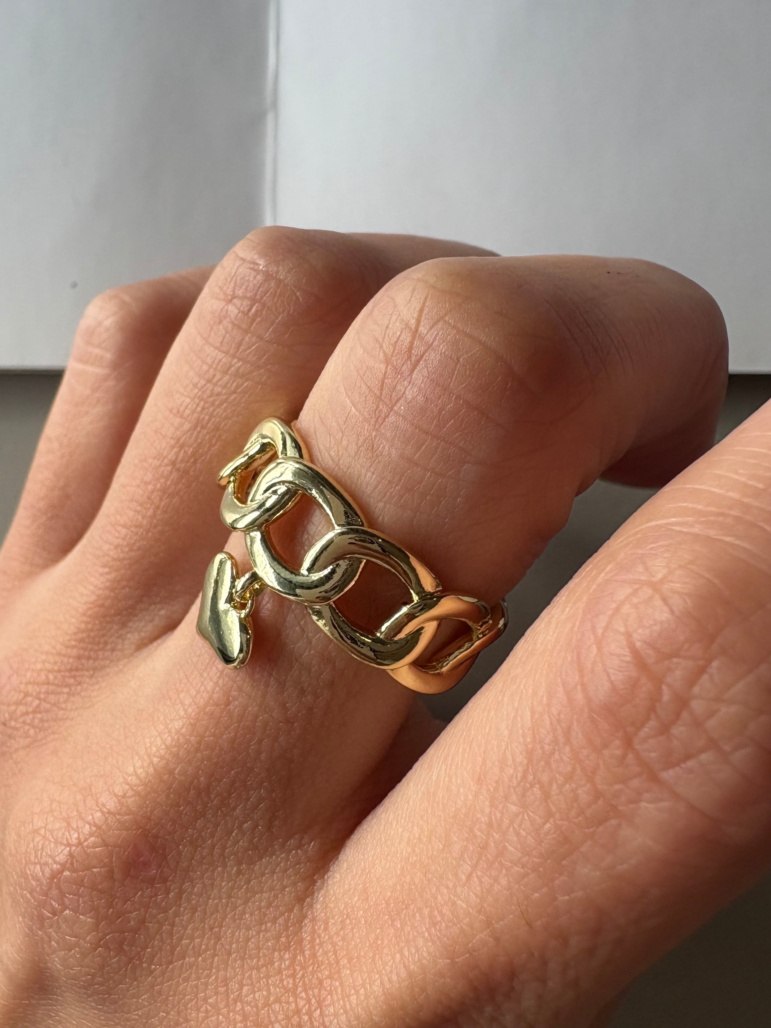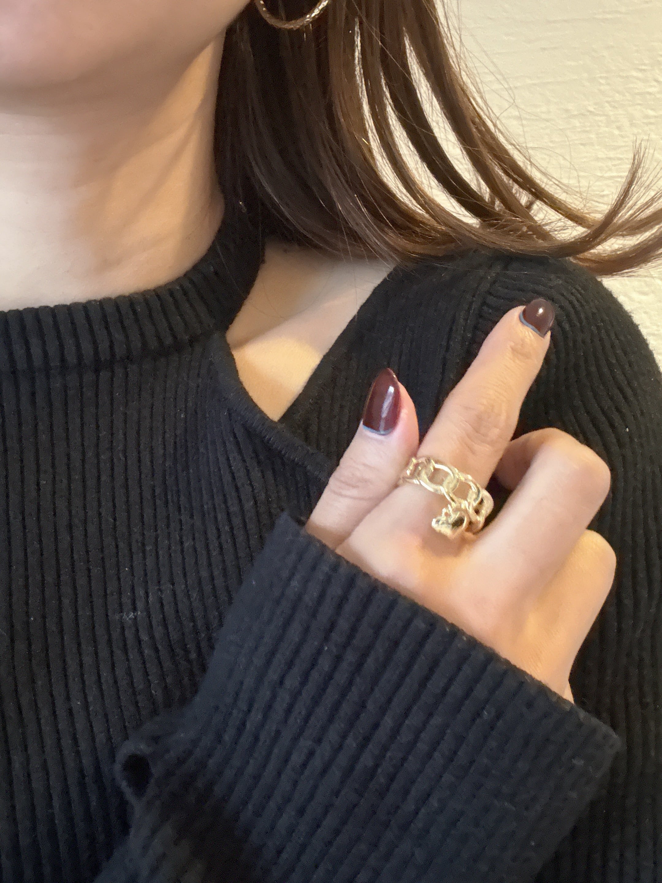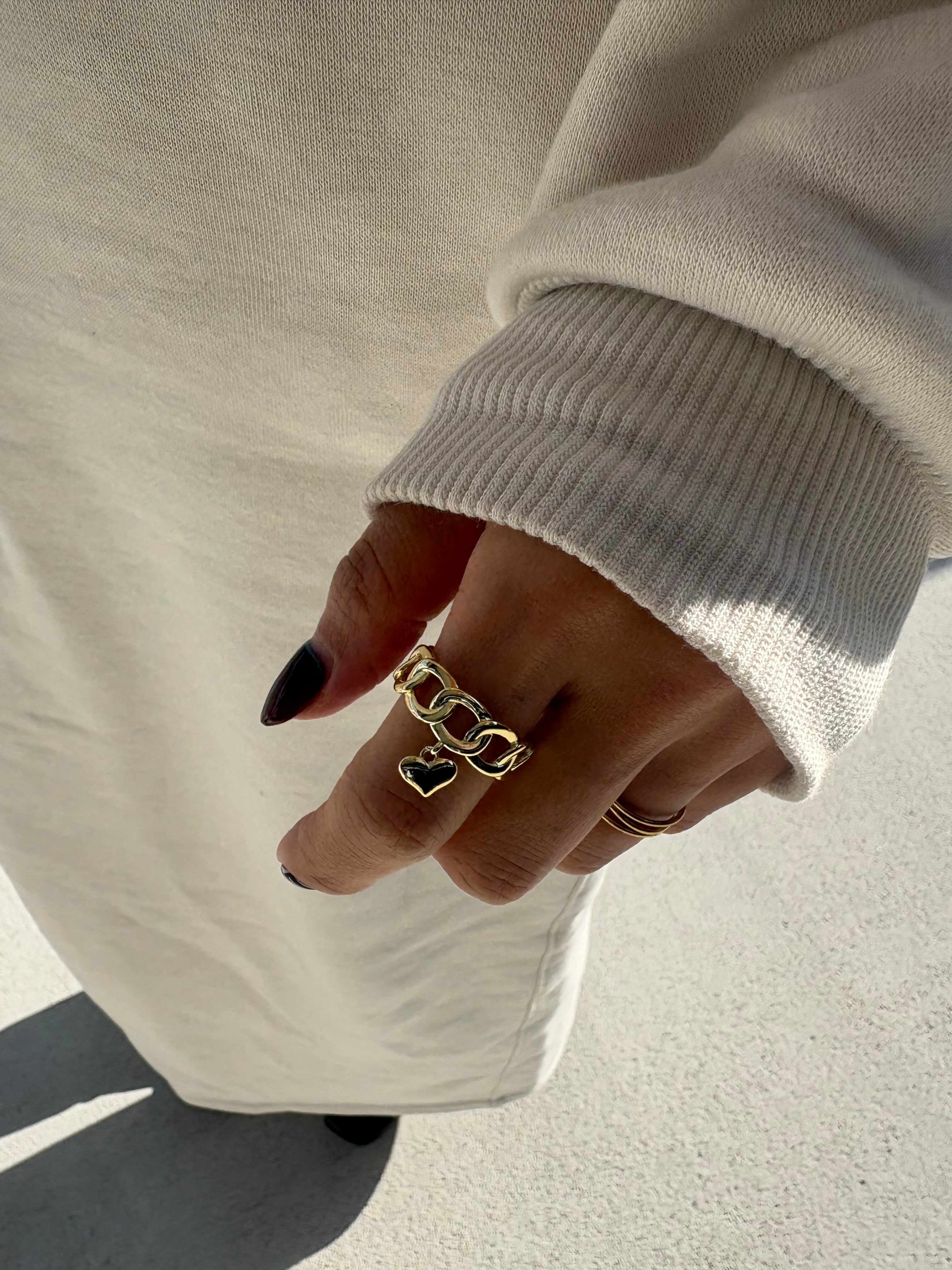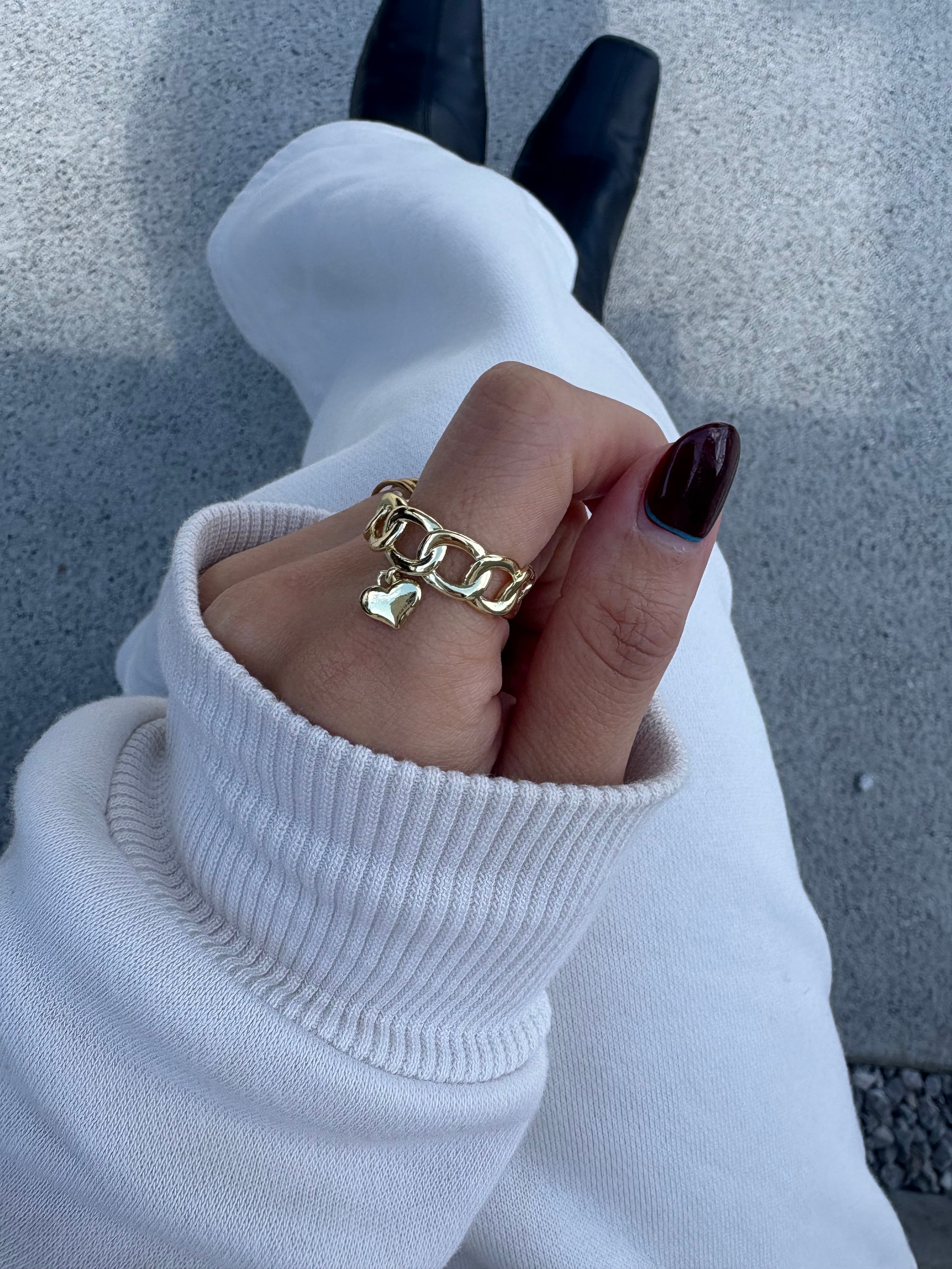 動くたびにハートチャームがさりげなく揺れる、遊び心を添えたオープンリング。