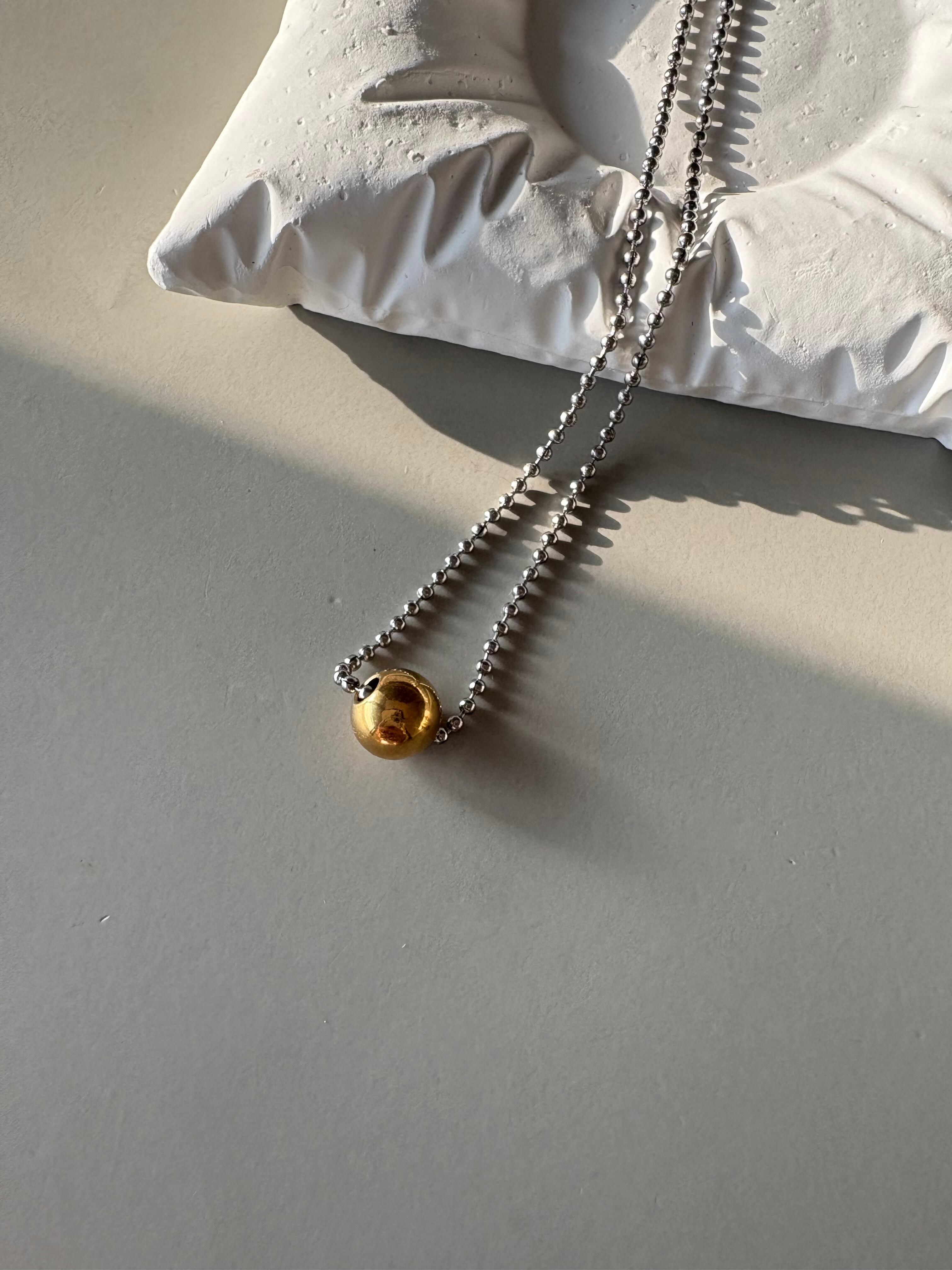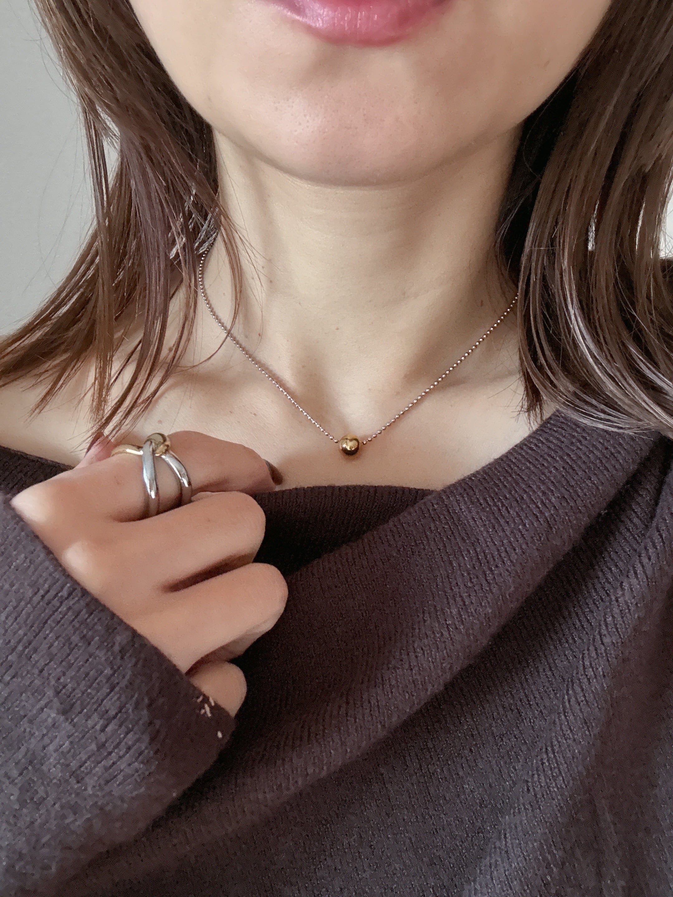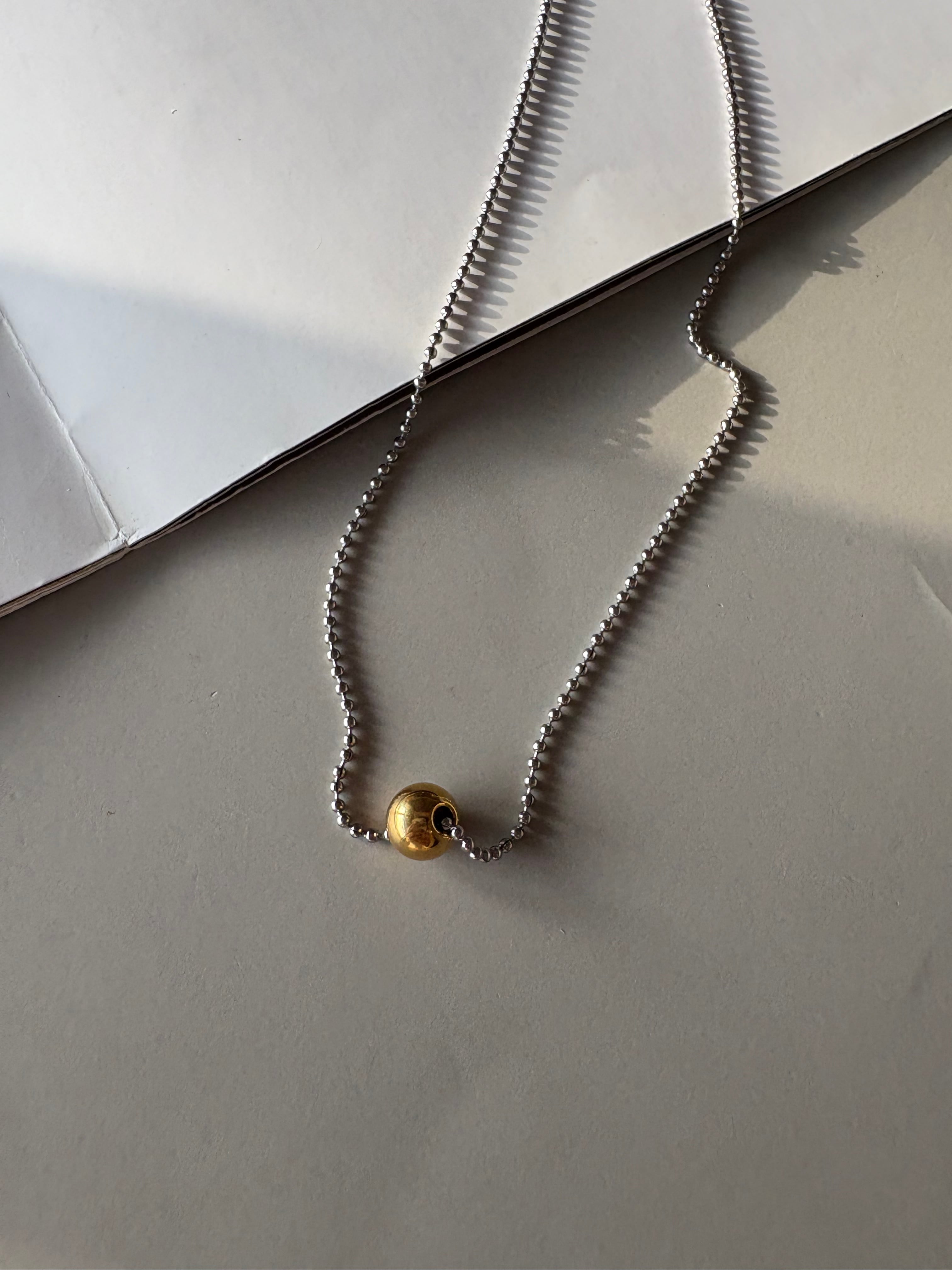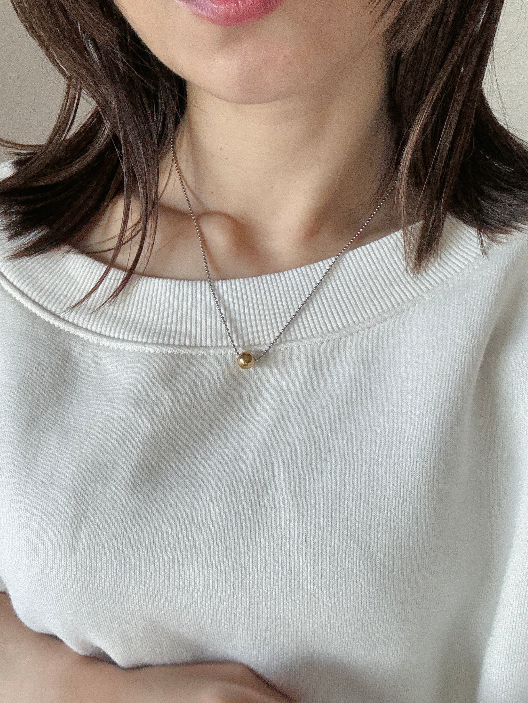ゴールドのワンポイントボールをひとつ添えたネックレス。