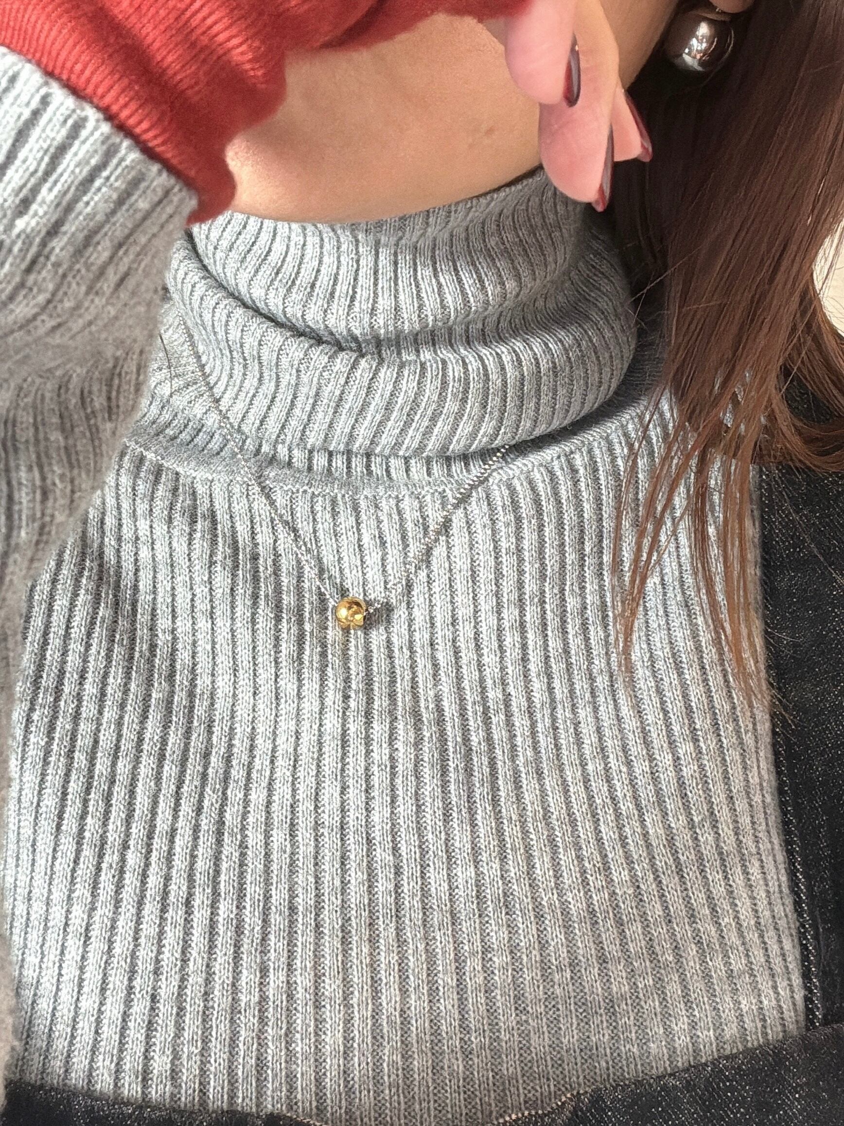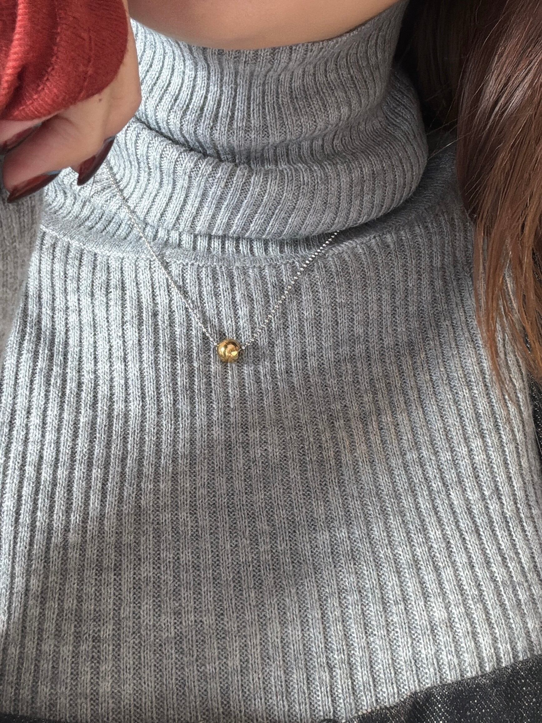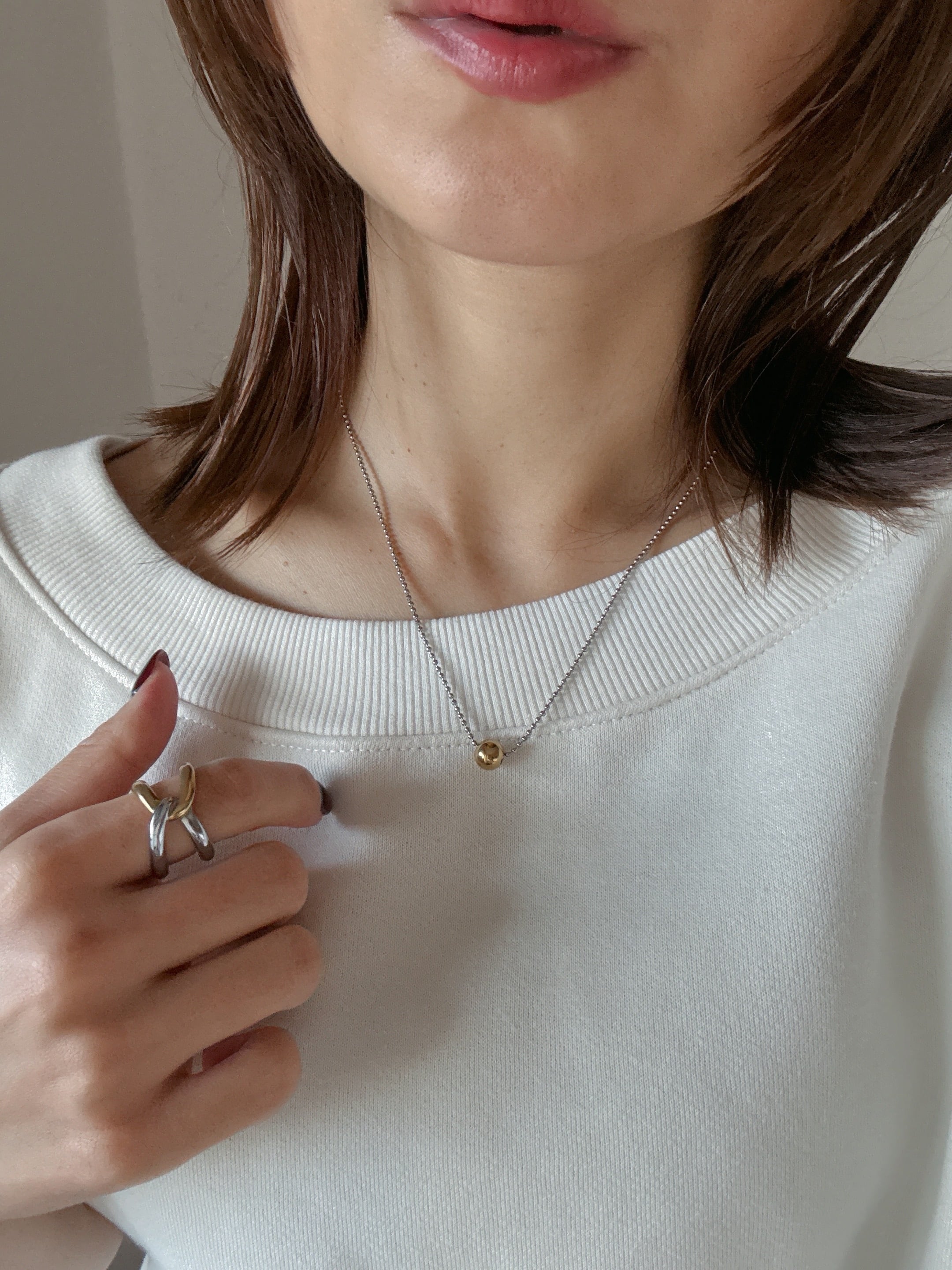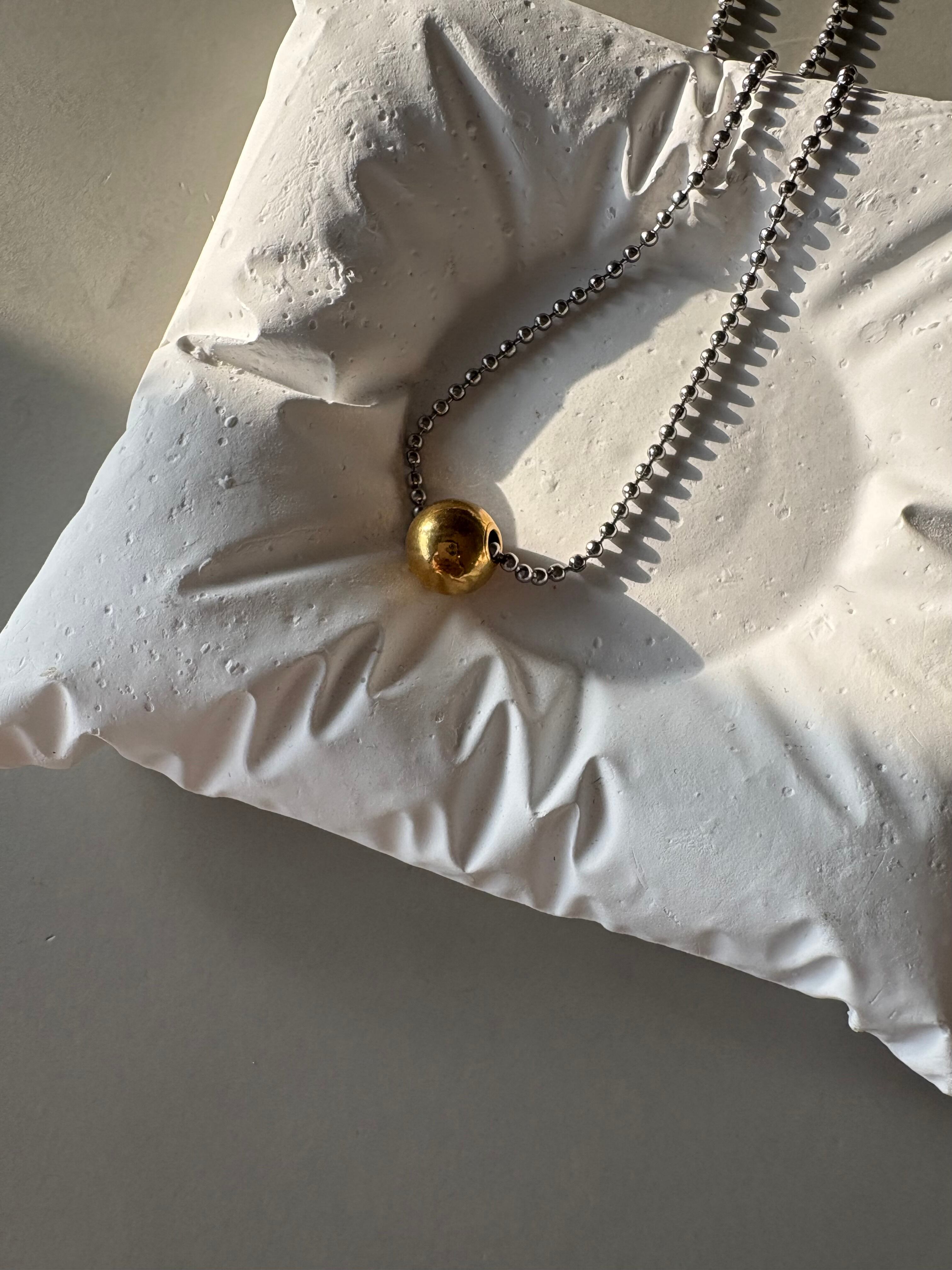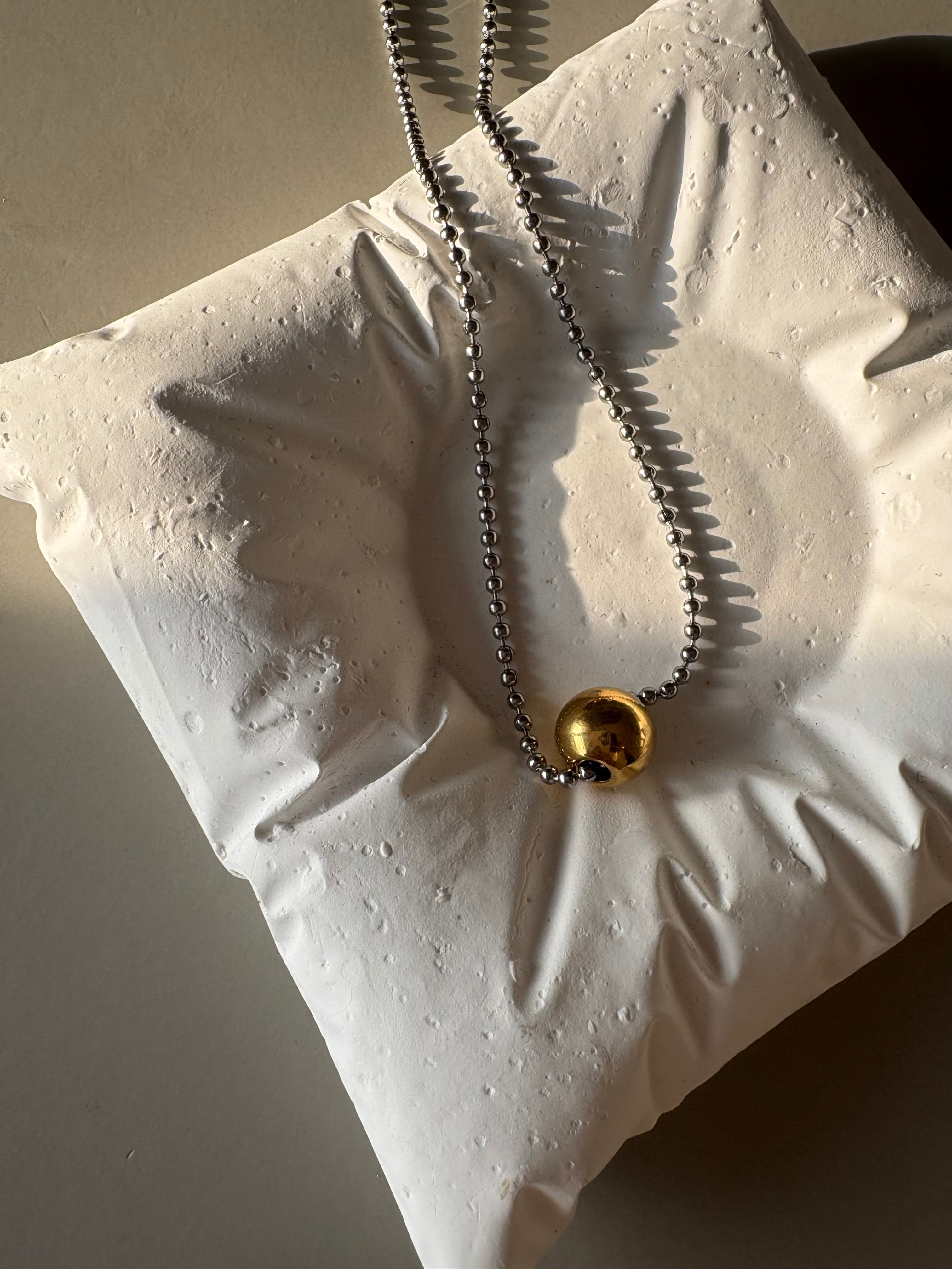 ゴールドのワンポイントボールをひとつ添えたネックレス。