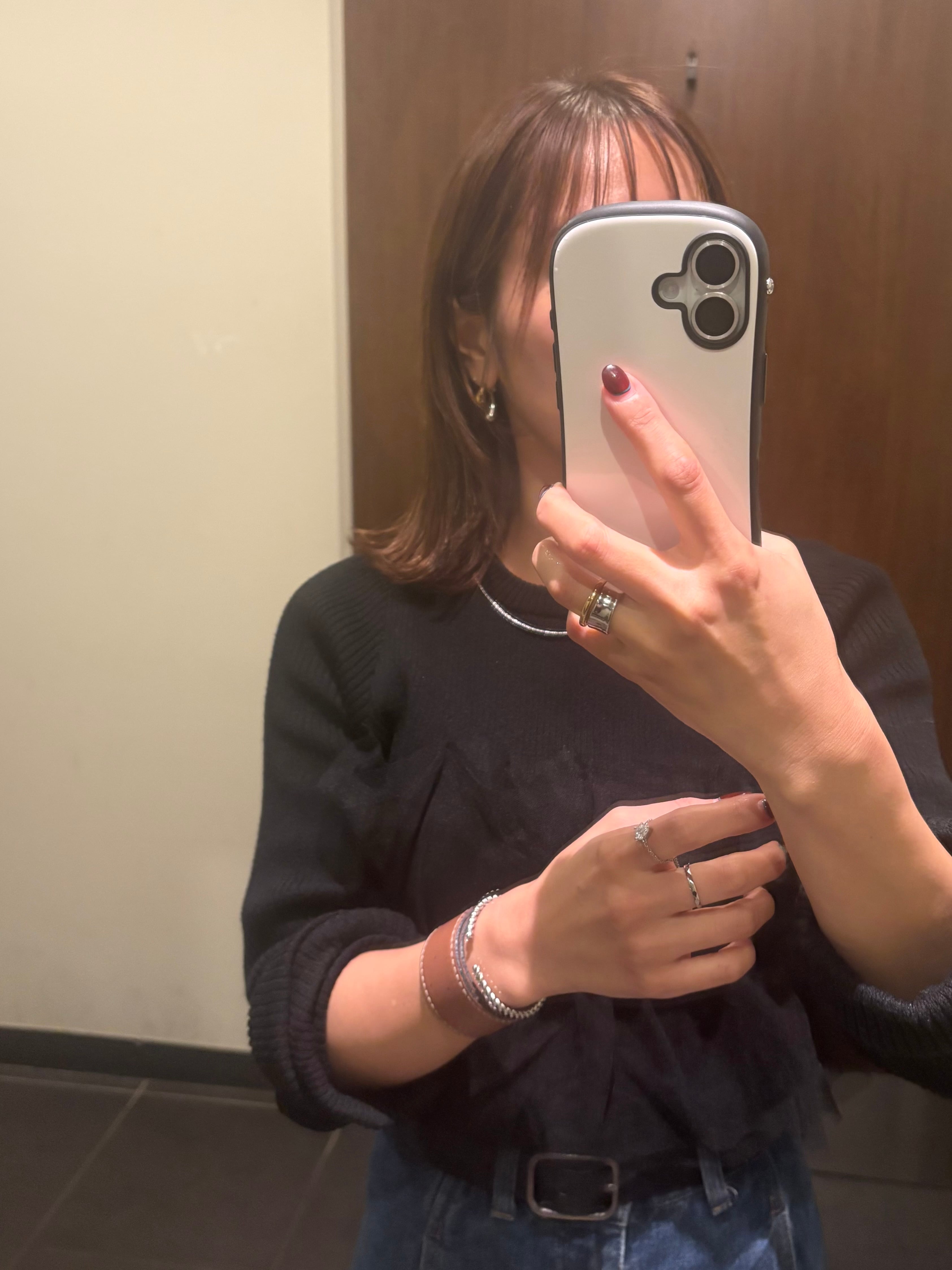 季節を問わず、Tシャツやニット、シャツなど幅広いコーディネートに寄り添います。