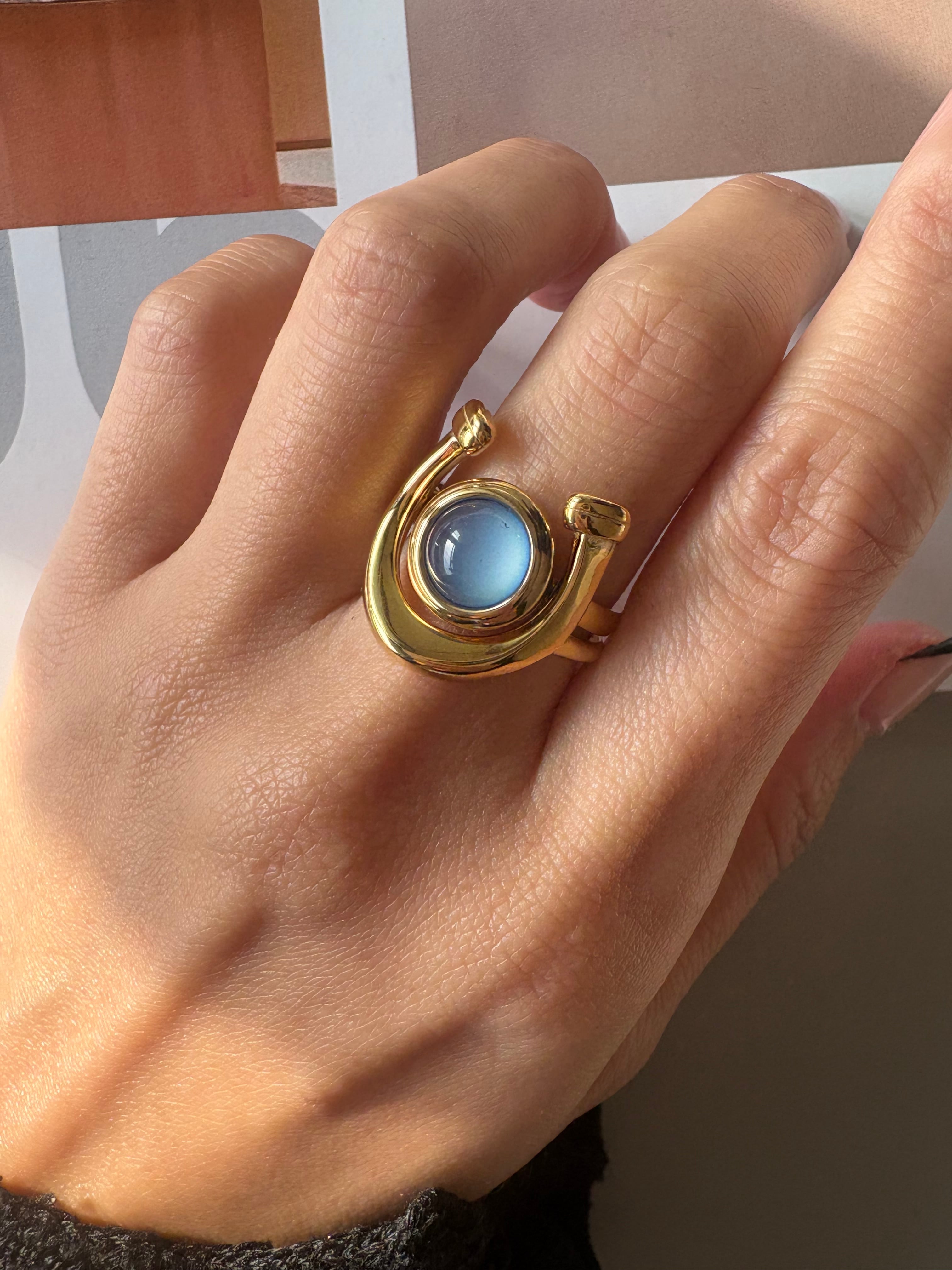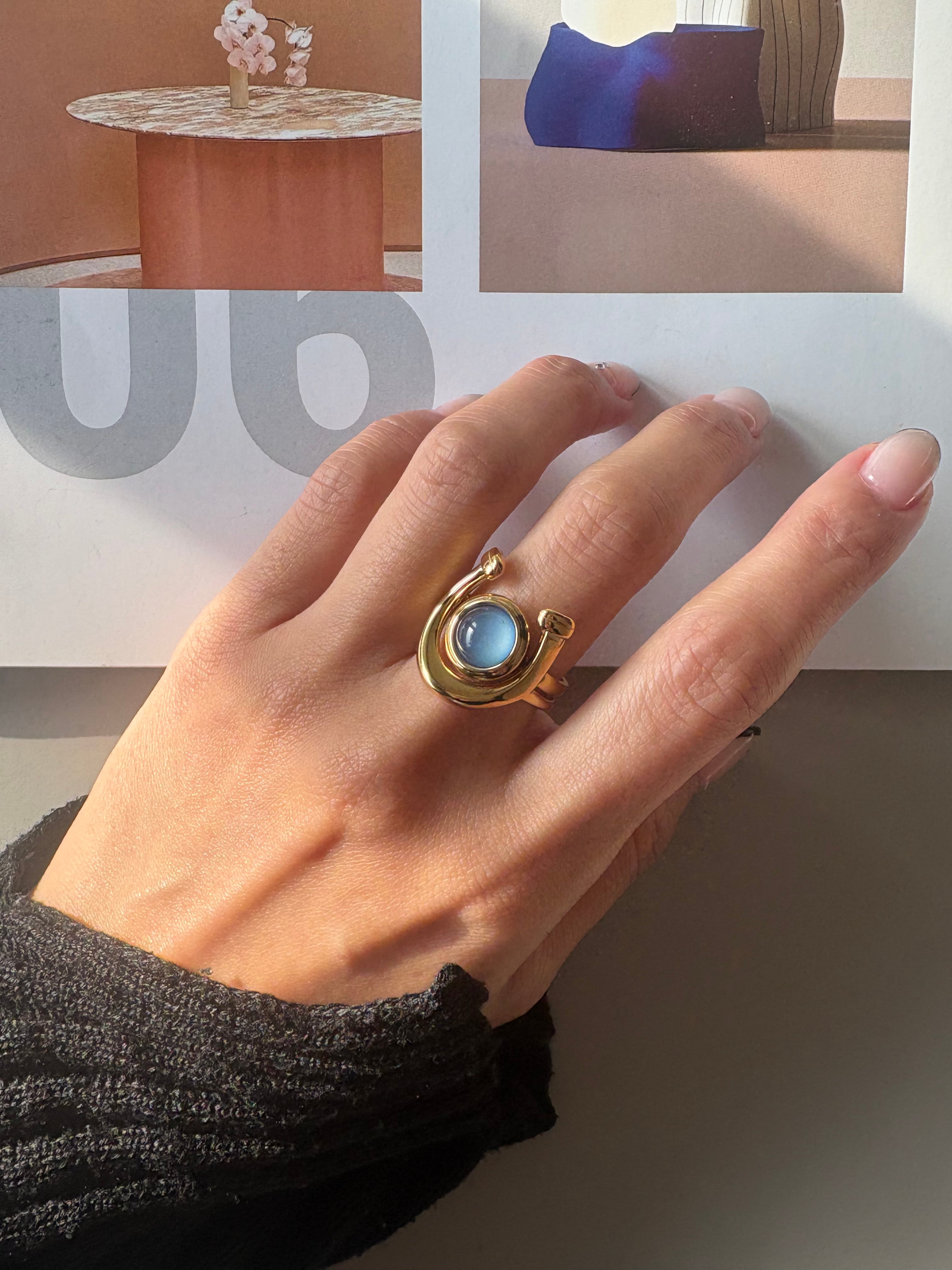 ブルーストーンリングとの重ねづけもおすすめ。