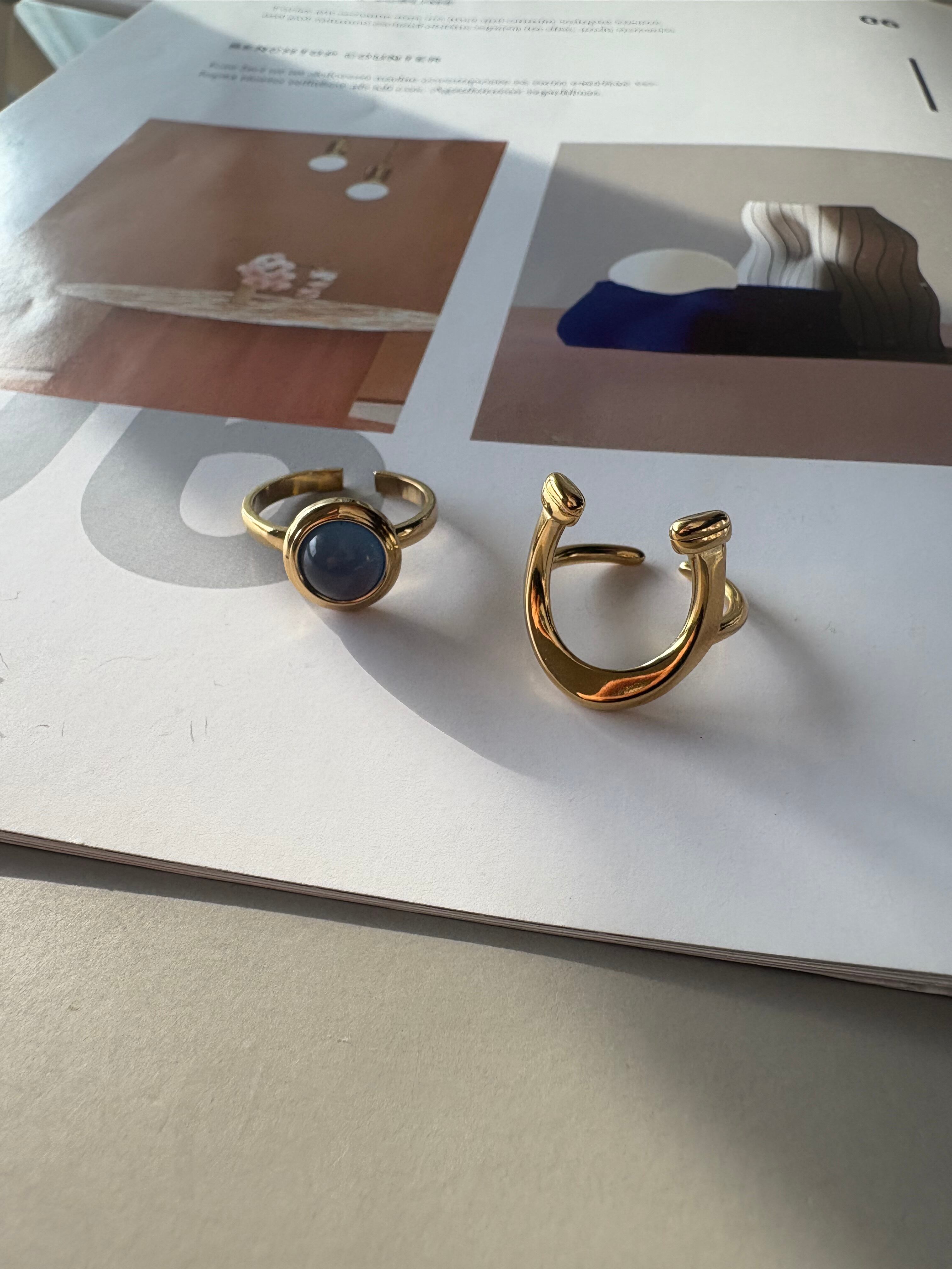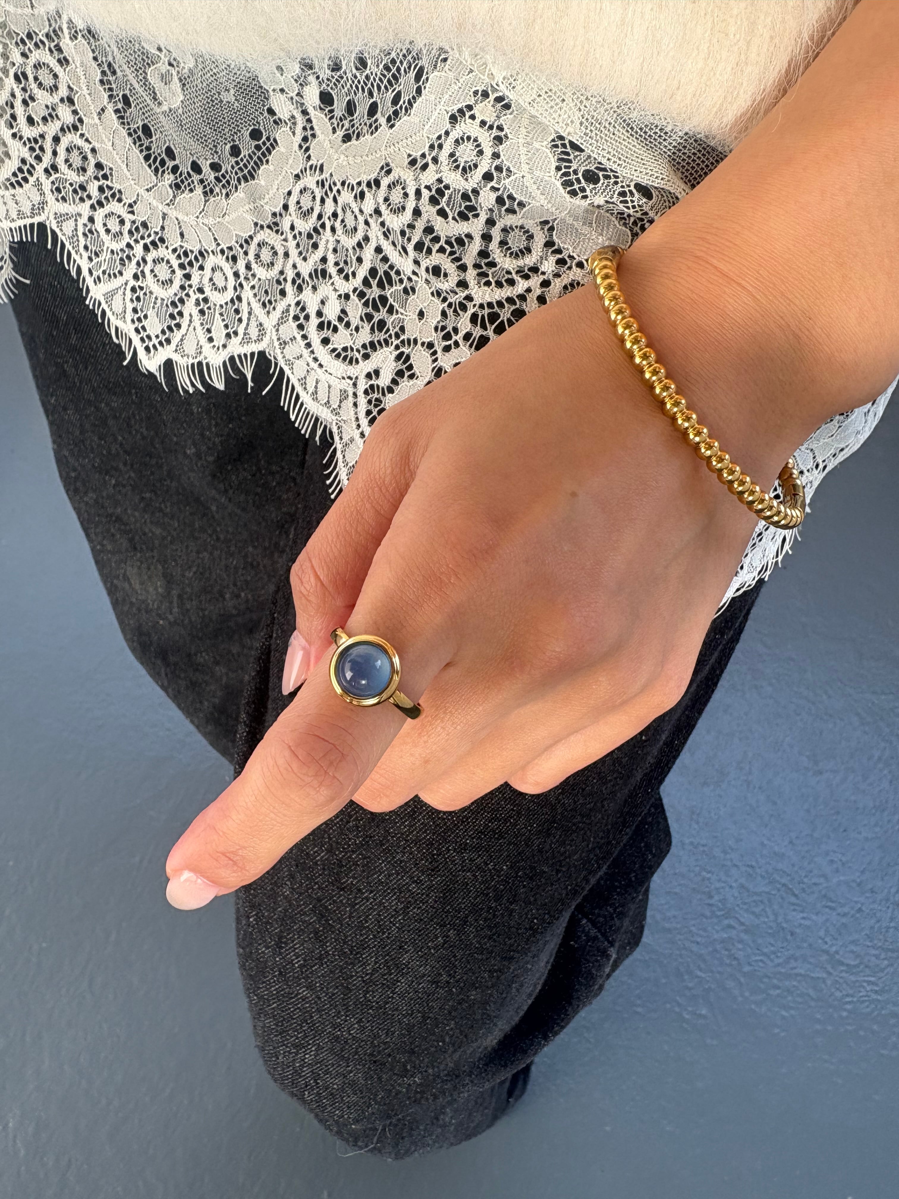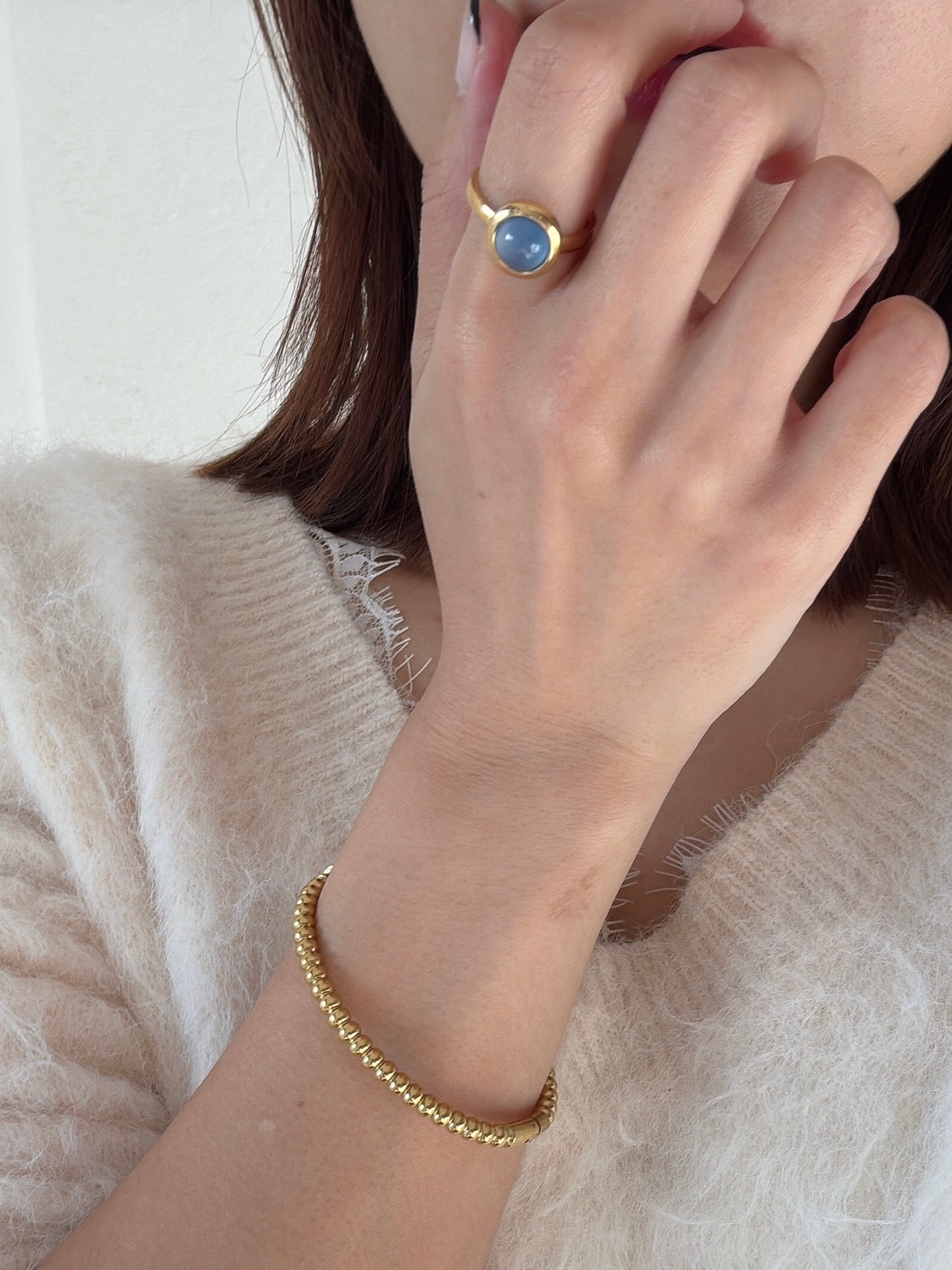 深みのあるブルーストーンが、手元に静かな存在感を添えるリング。