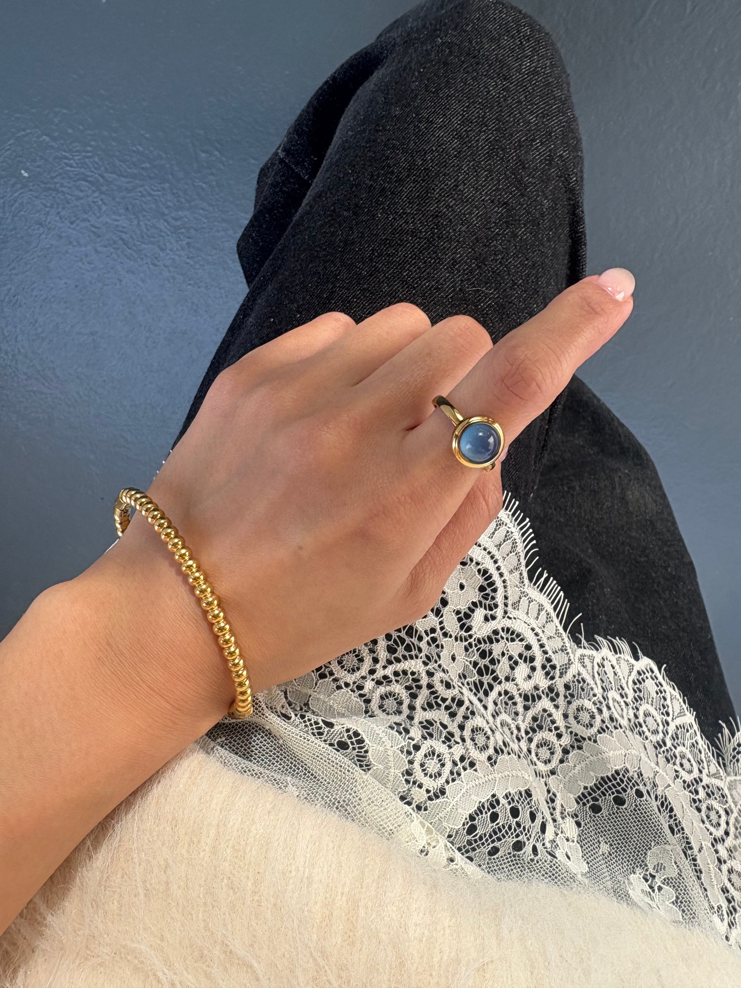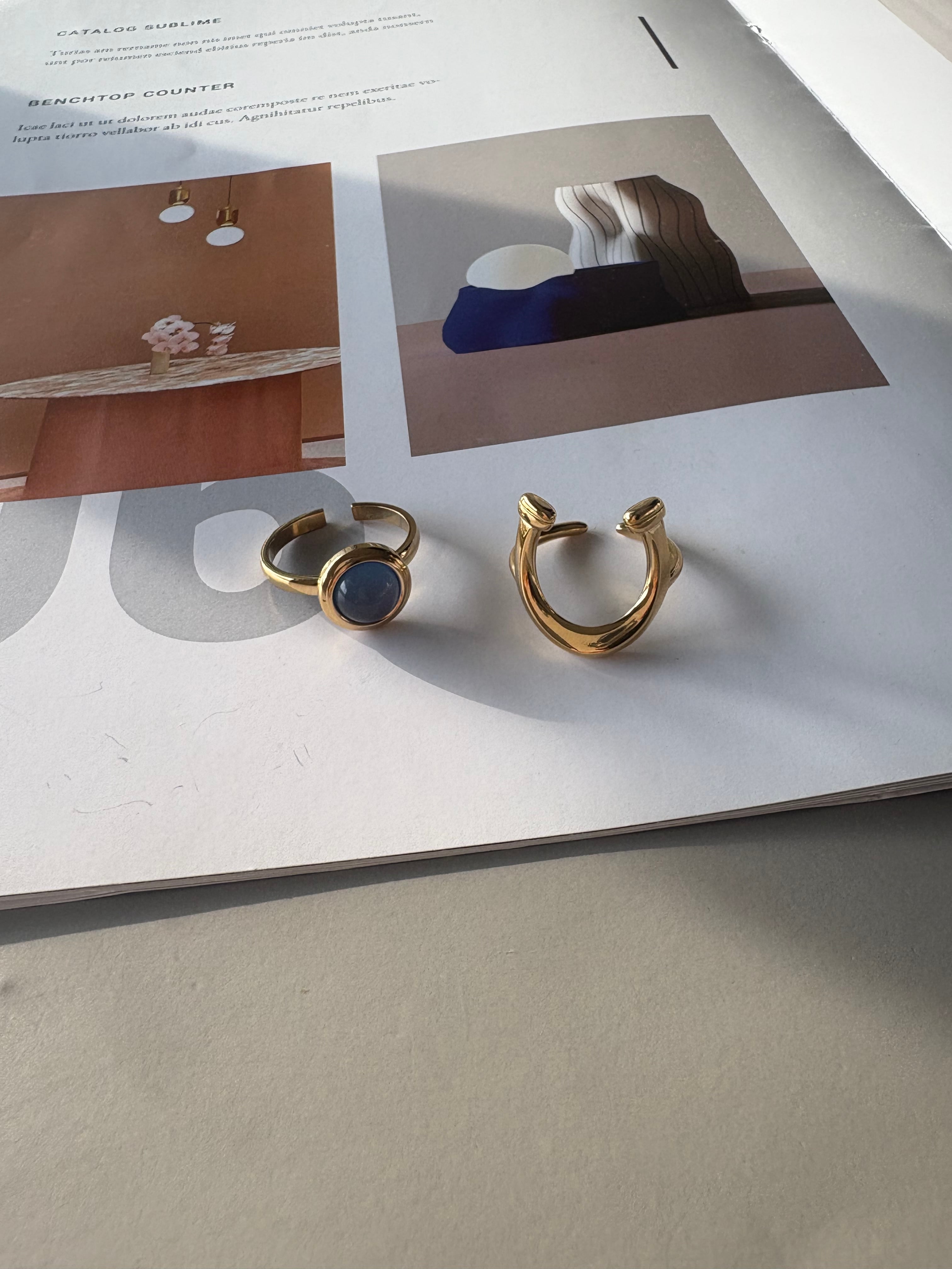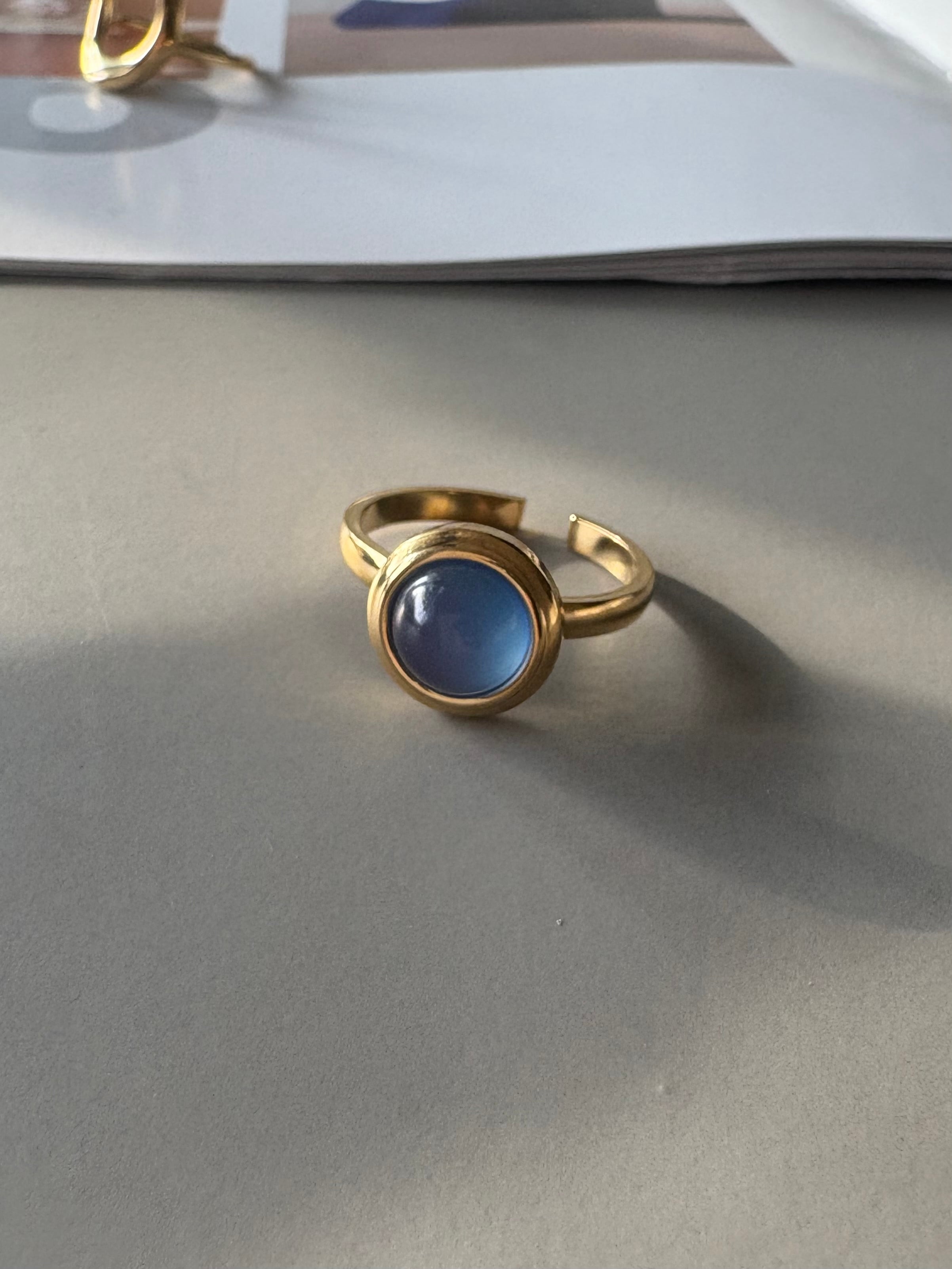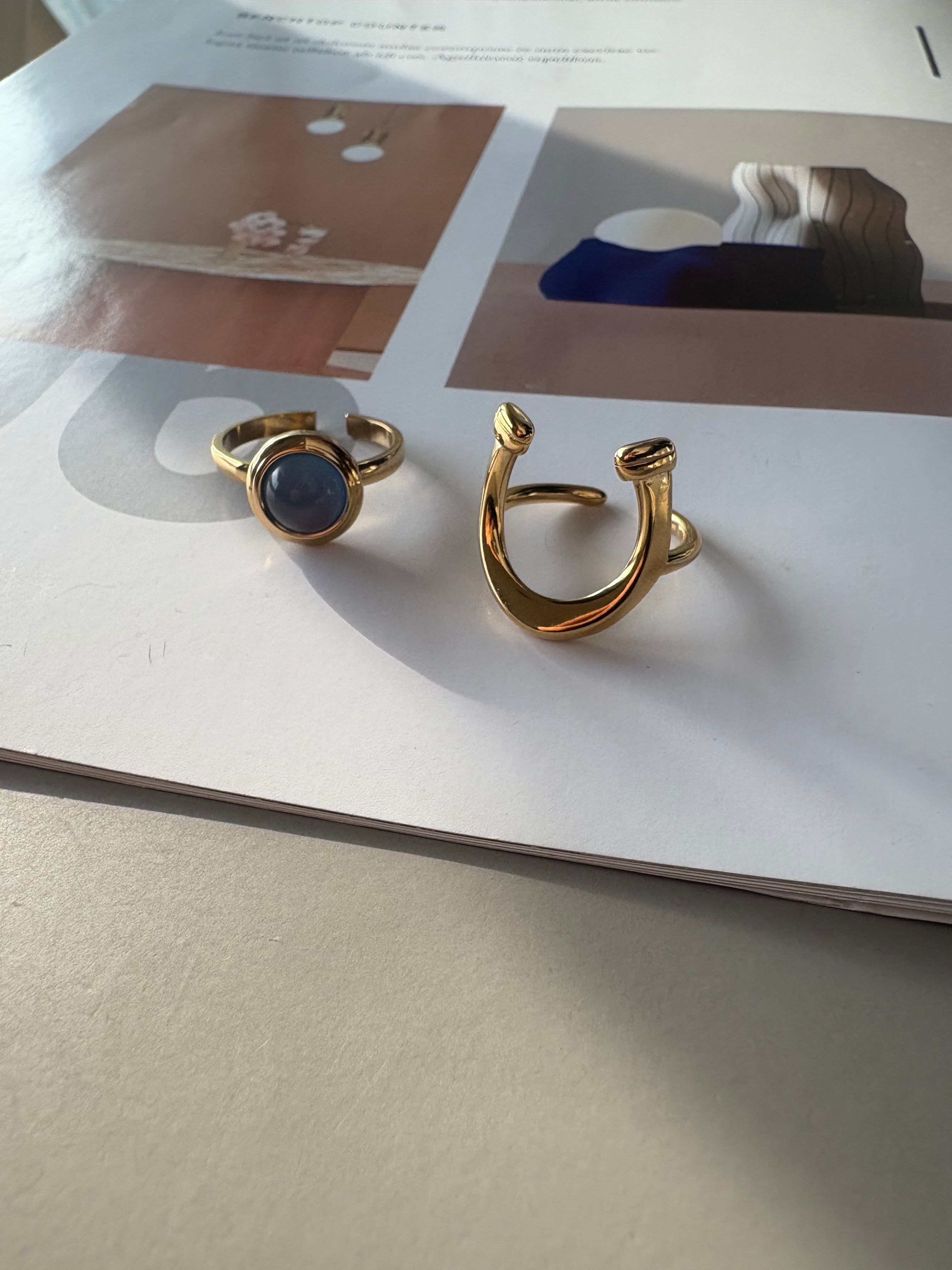 深みのあるブルーストーンが、手元に静かな存在感を添えるリング。