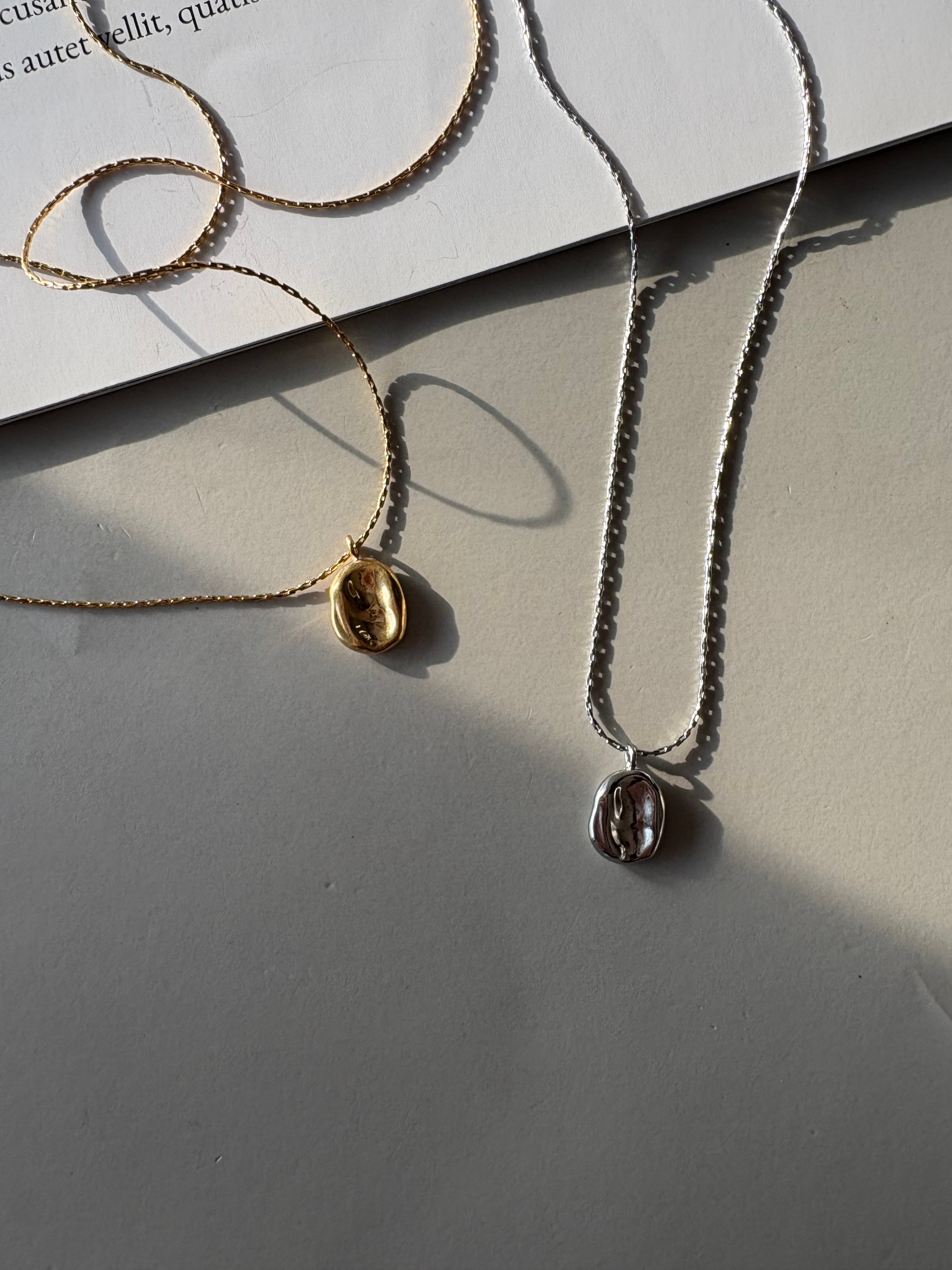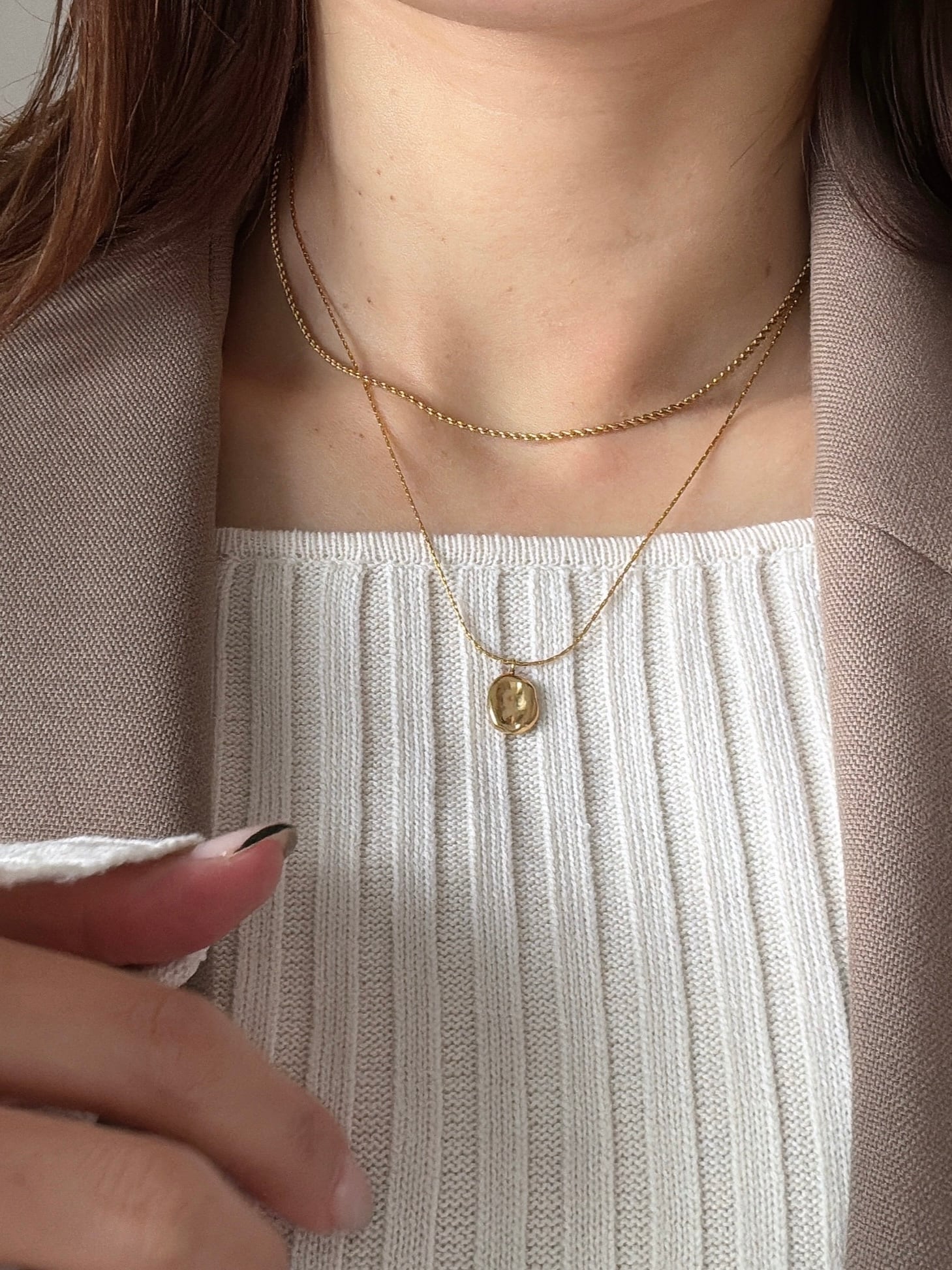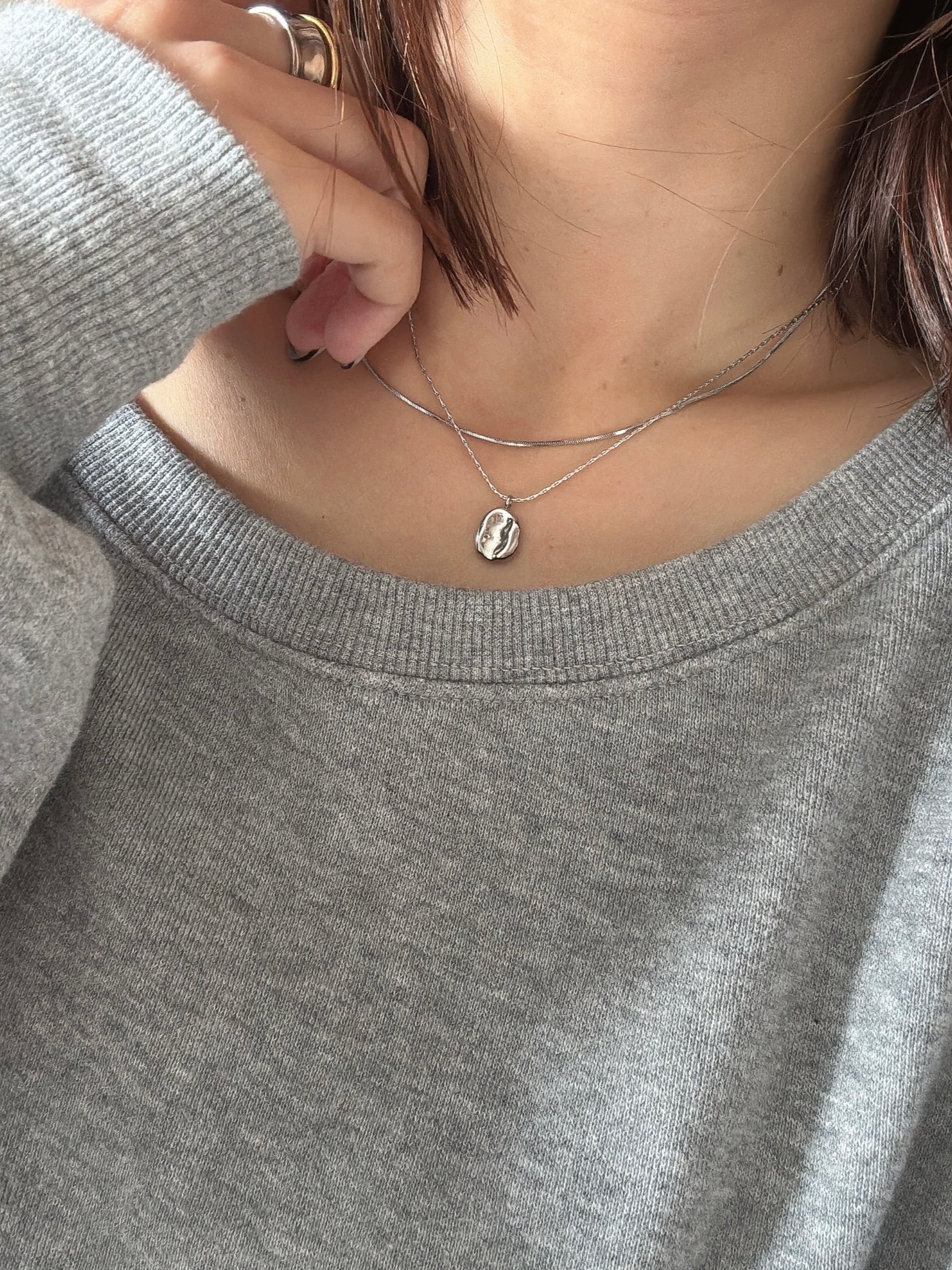 ハンマー加工のような凹凸を施したペンダントトップが、