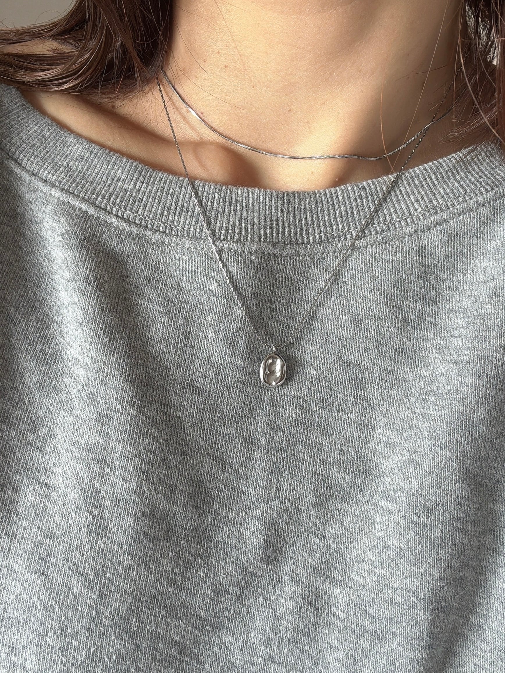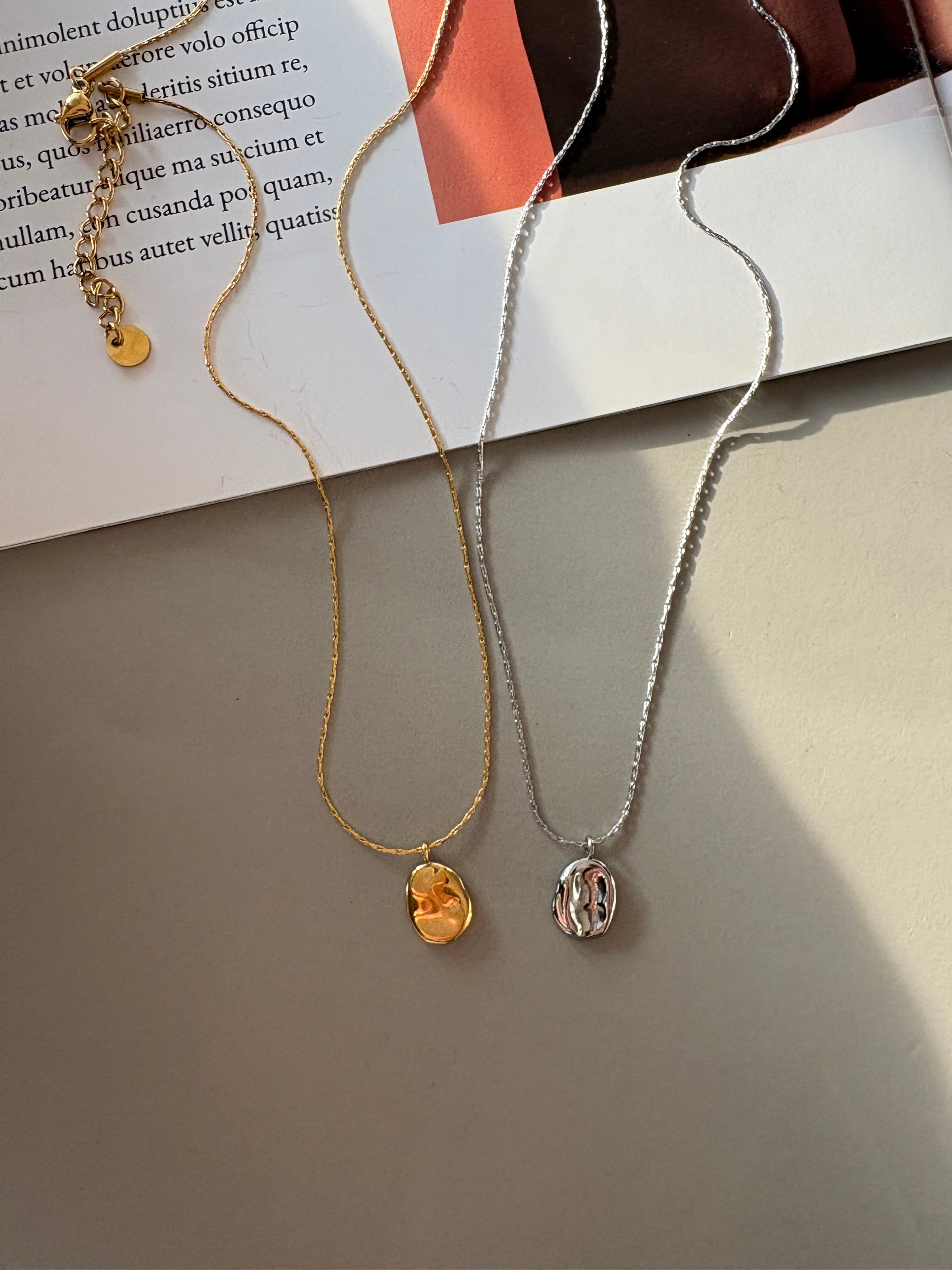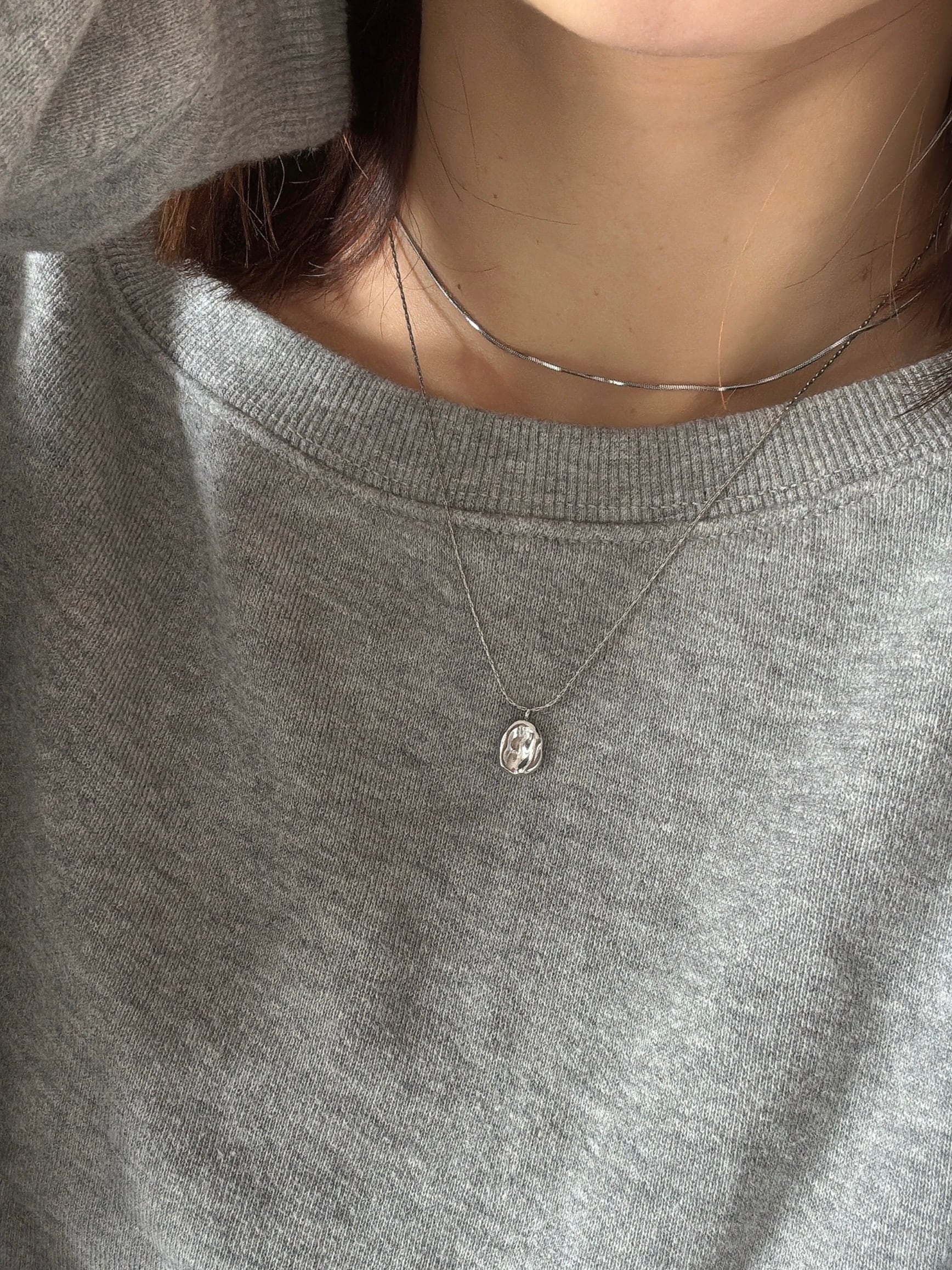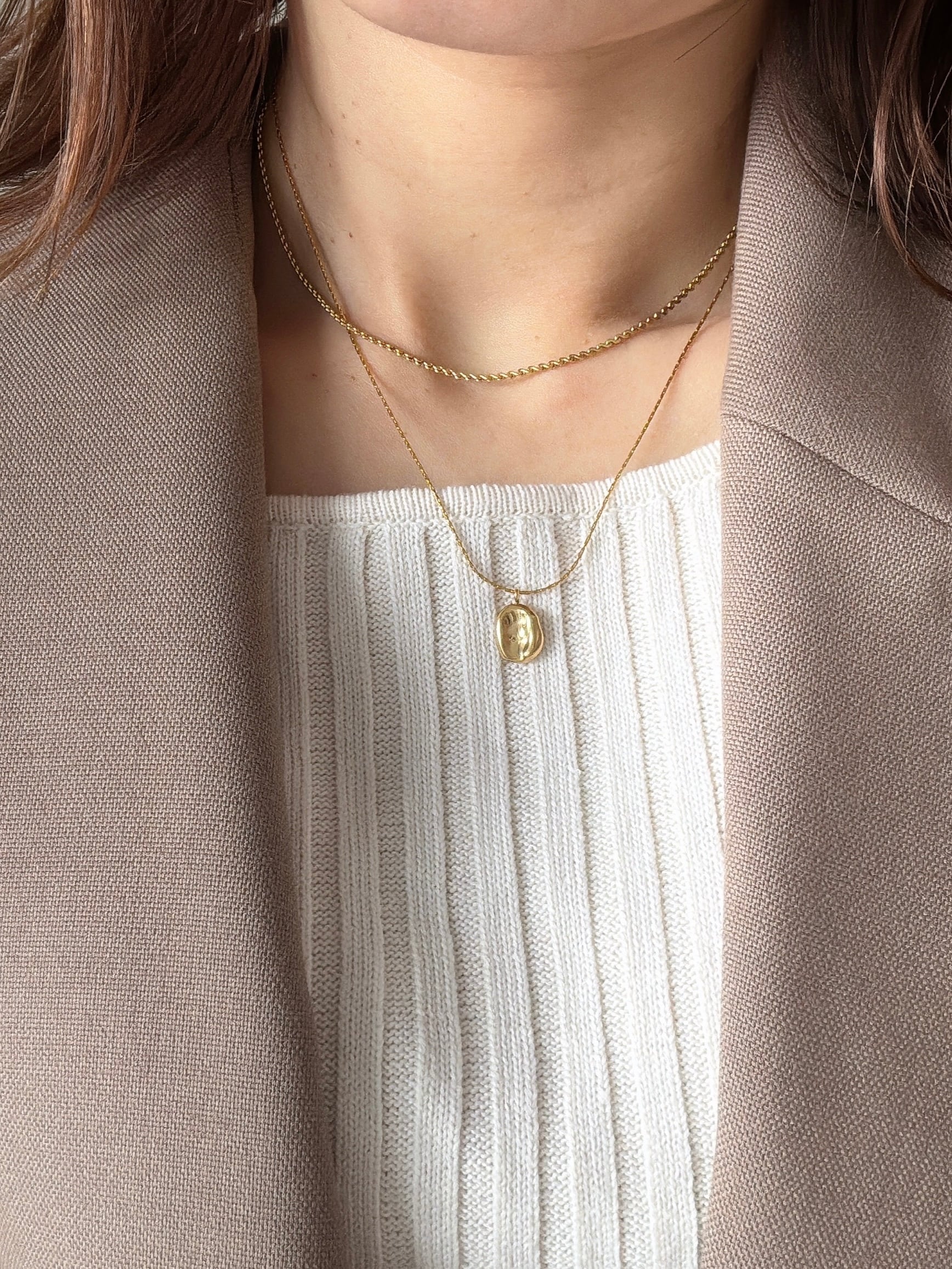 ハンマー加工のような凹凸を施したペンダントトップが、