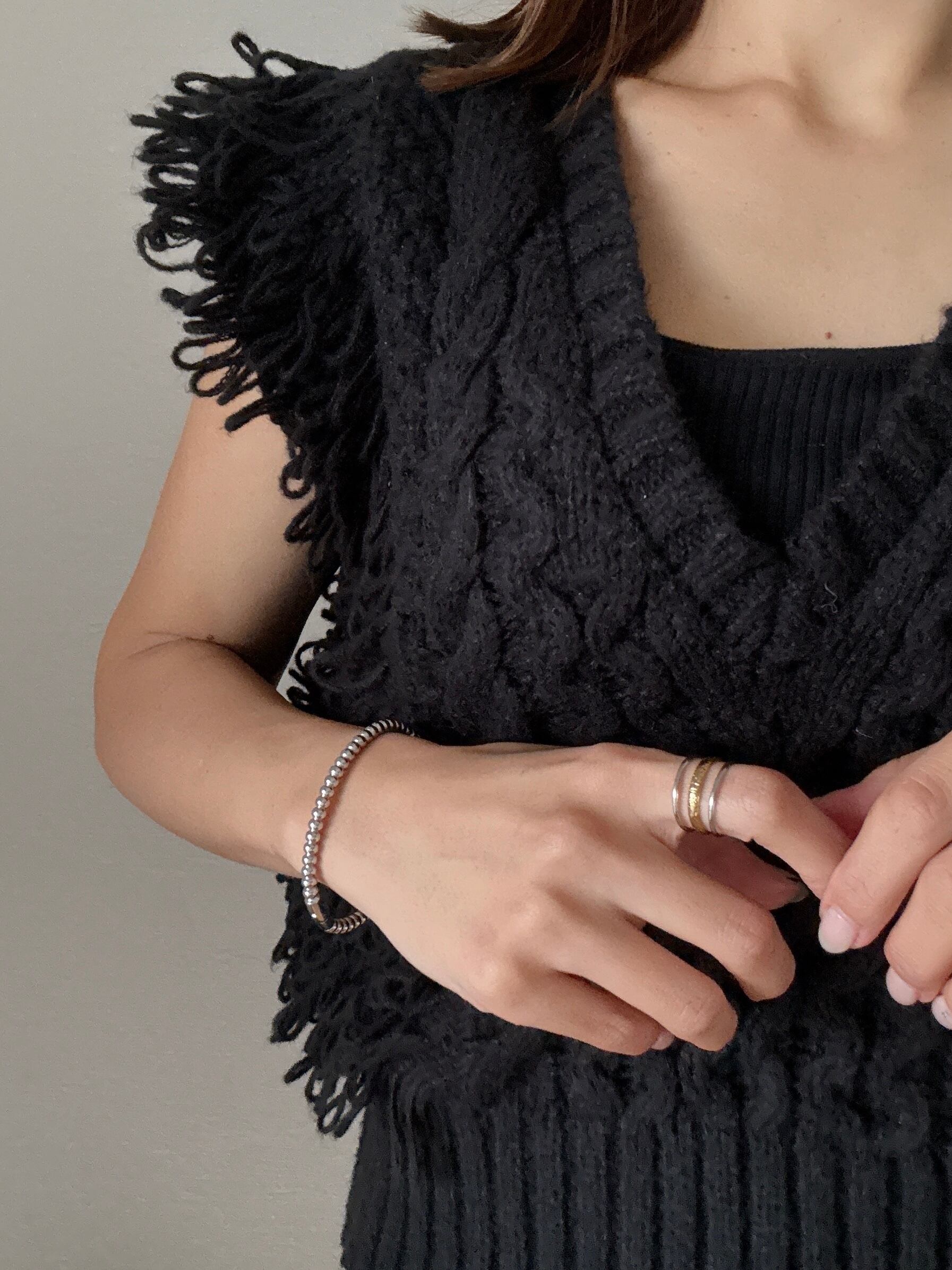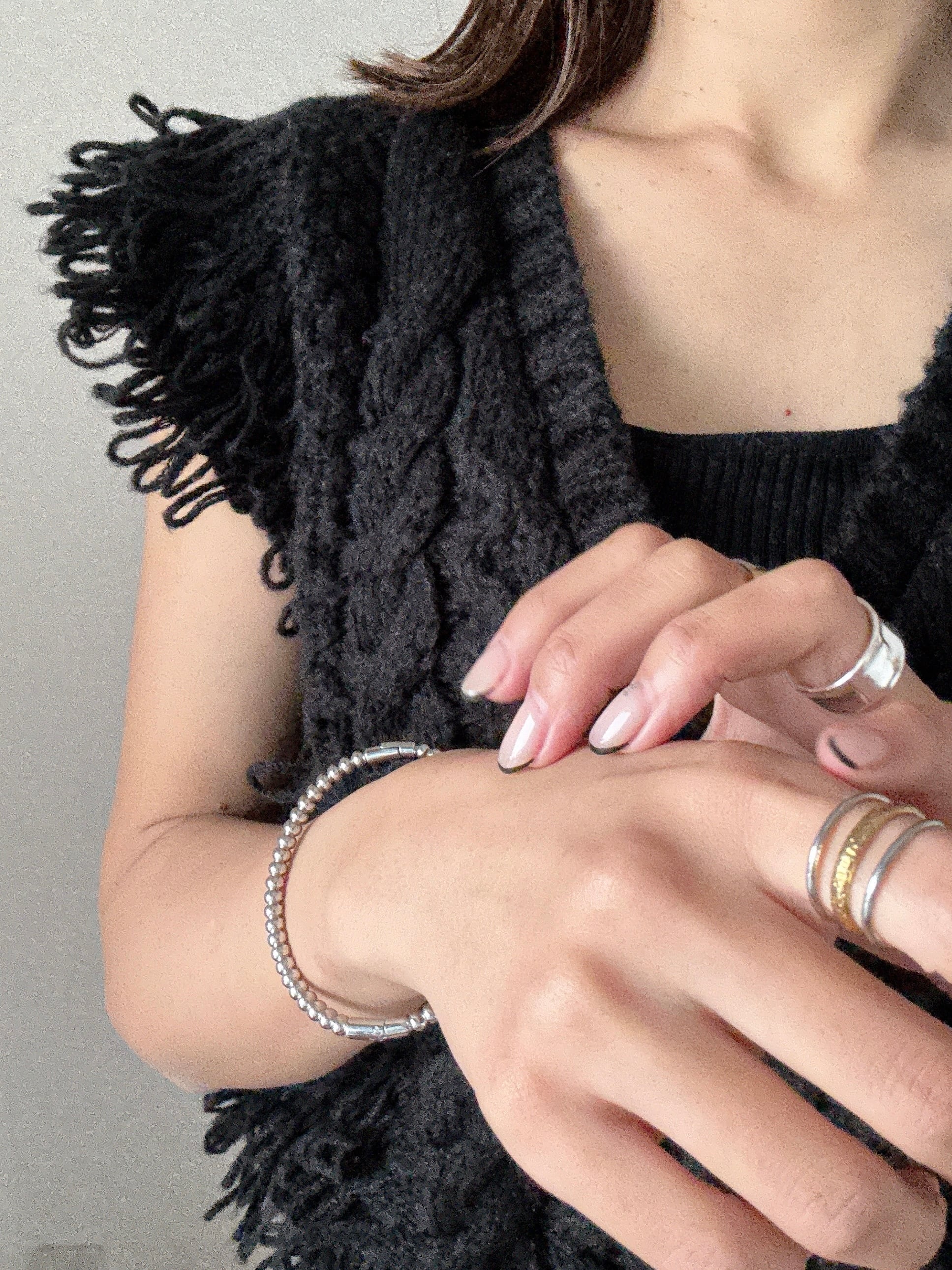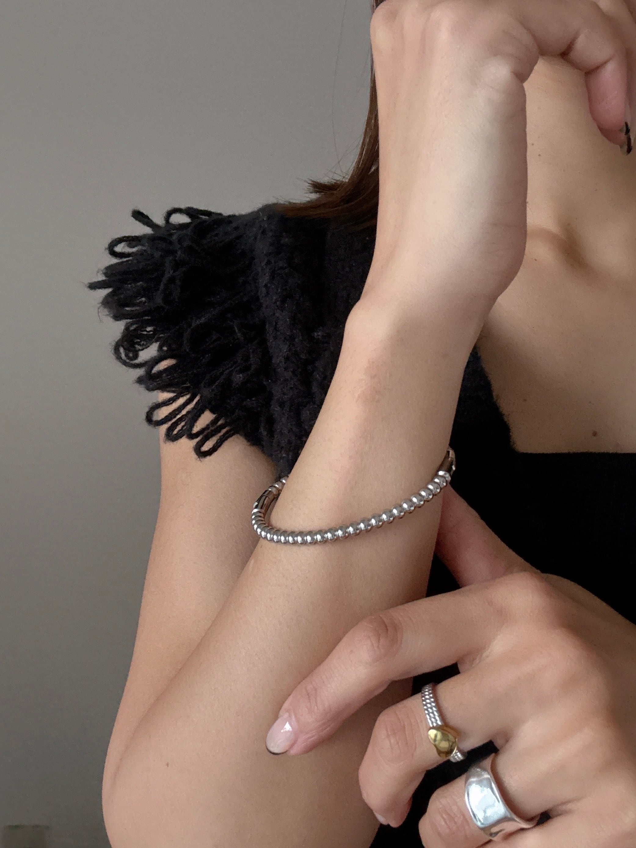 一本使いはもちろん、時計やリングとのレイヤードも楽しめる万能ブレスレットです。