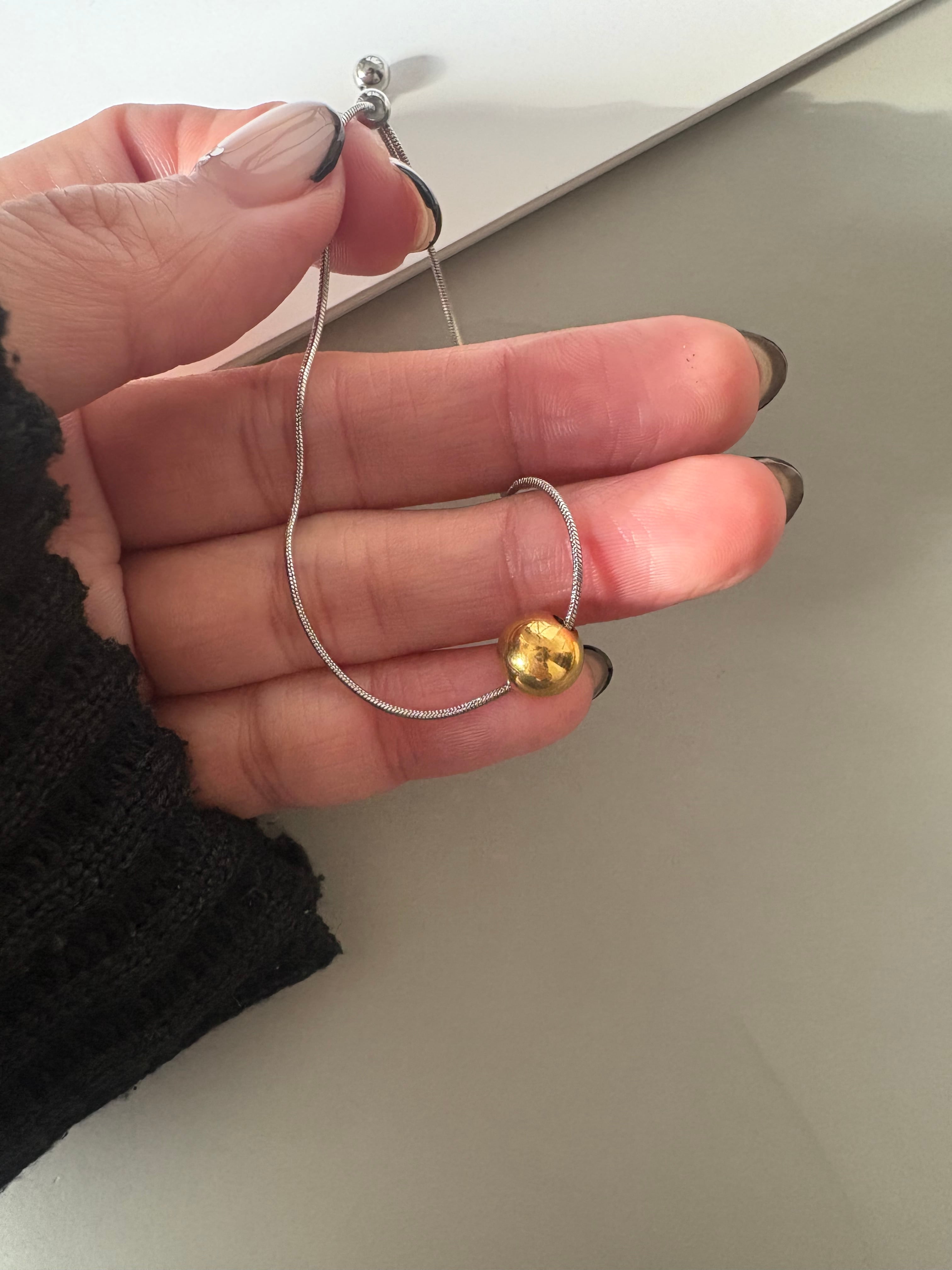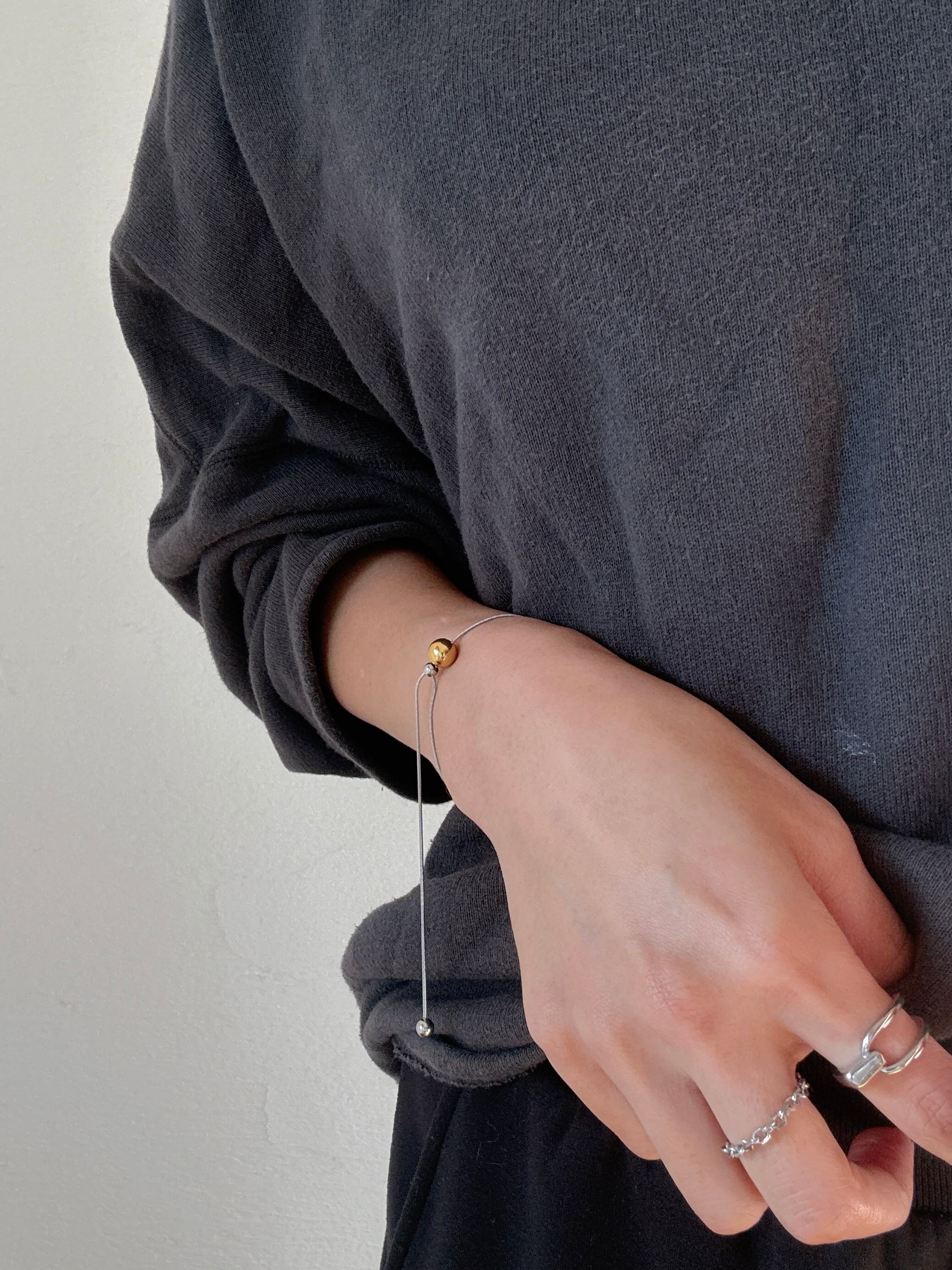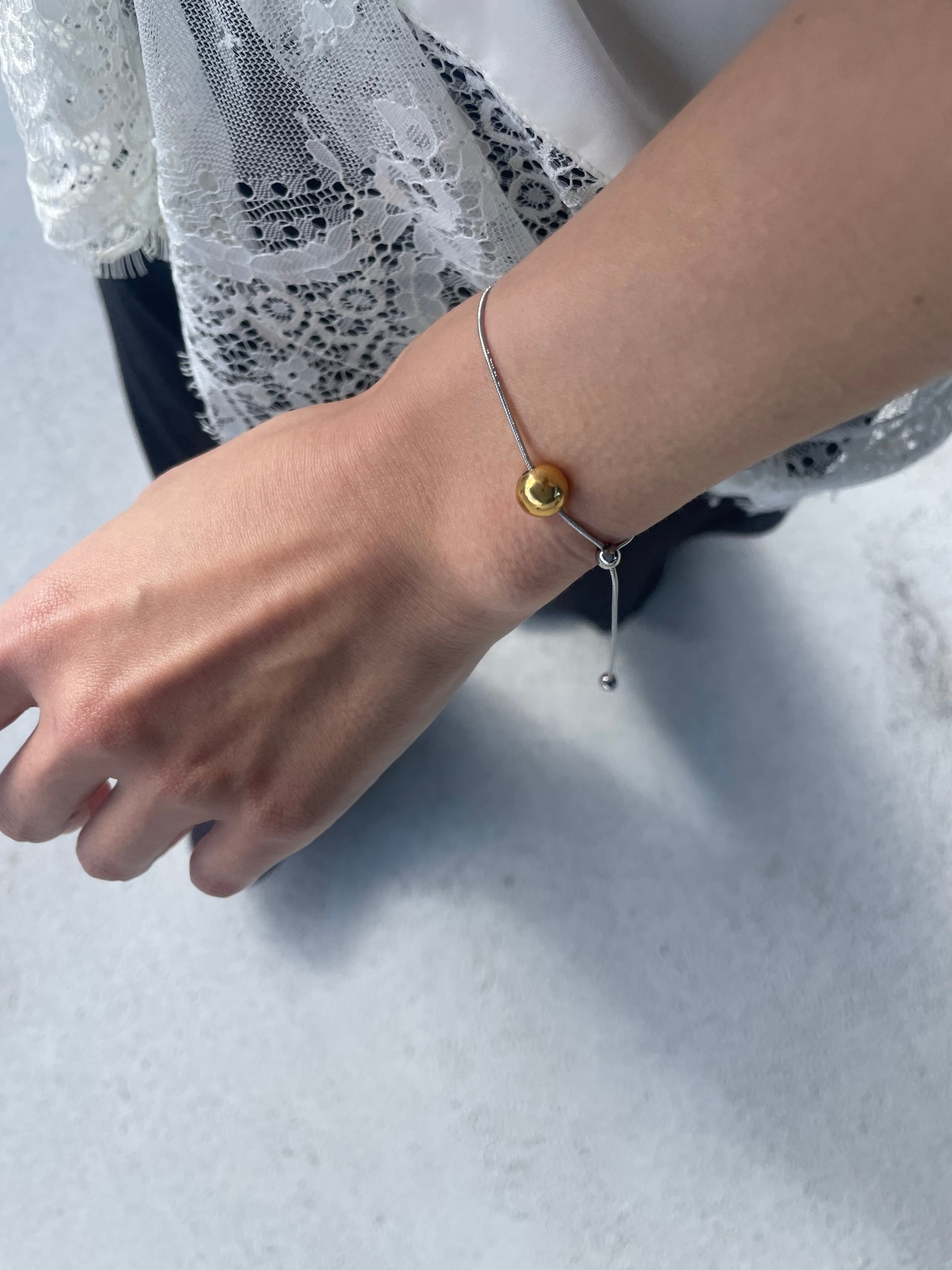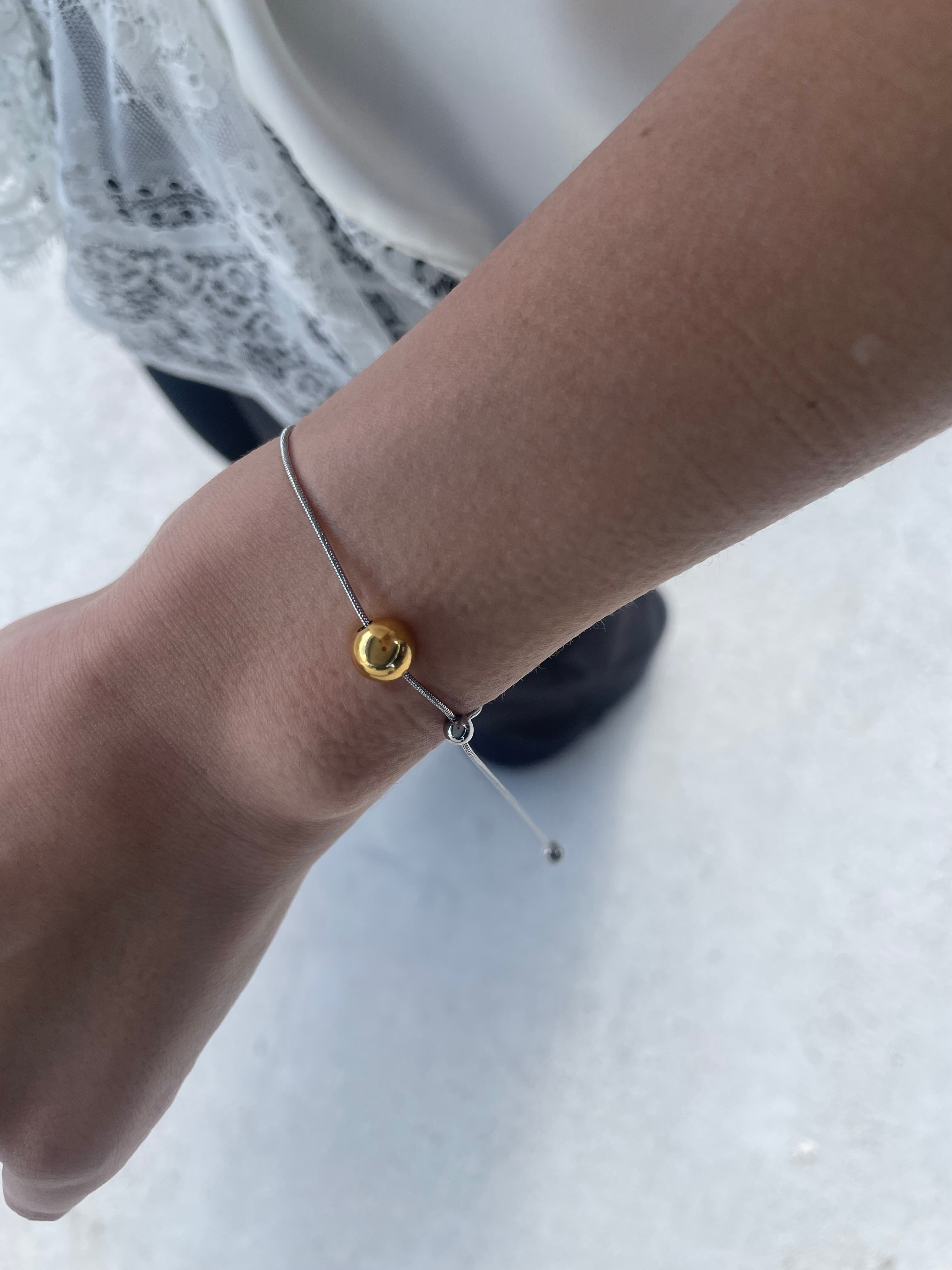 ゴールドとシルバー、2色のボールをアクセントに添えたバイカラーブレスレット。