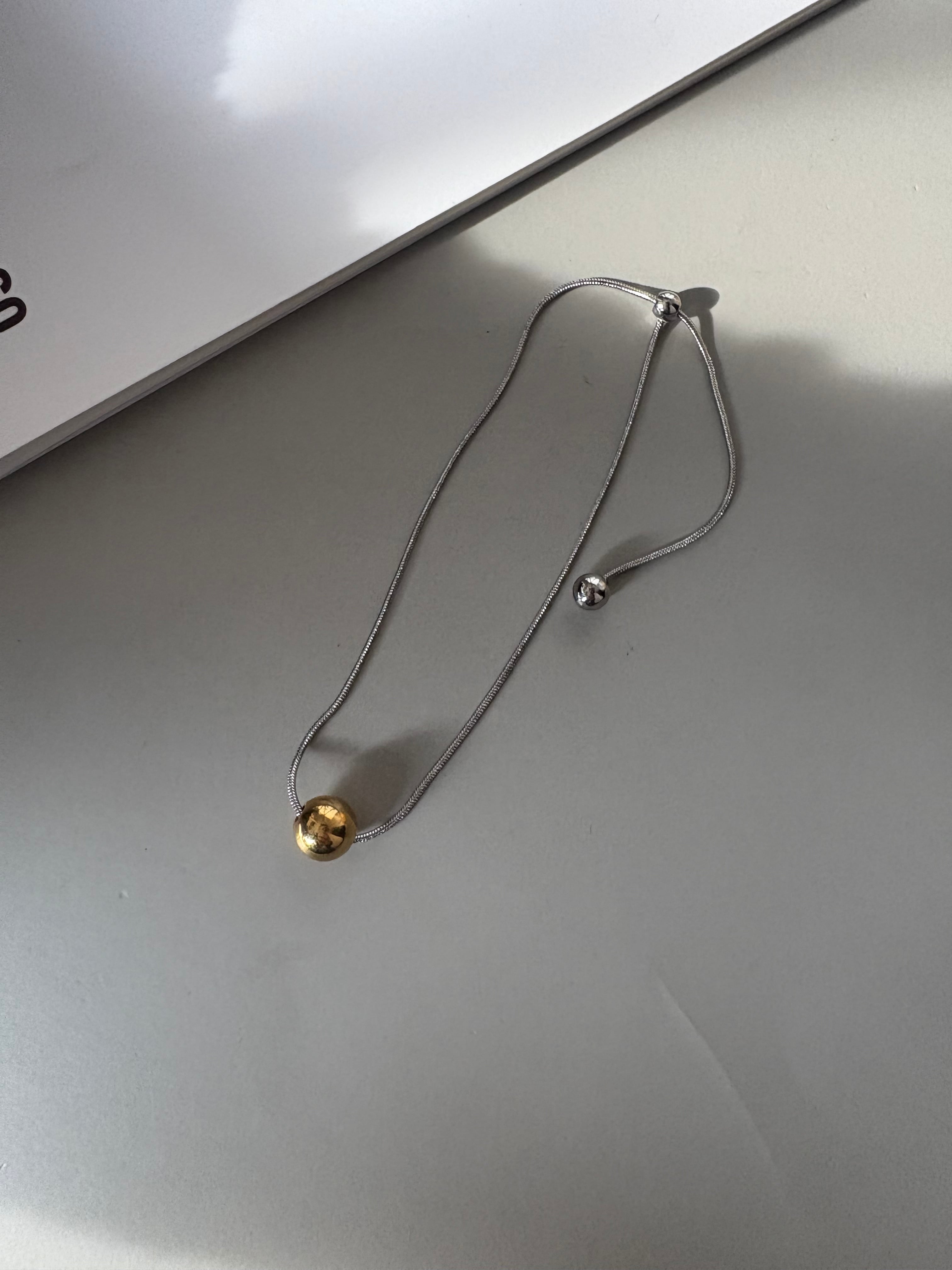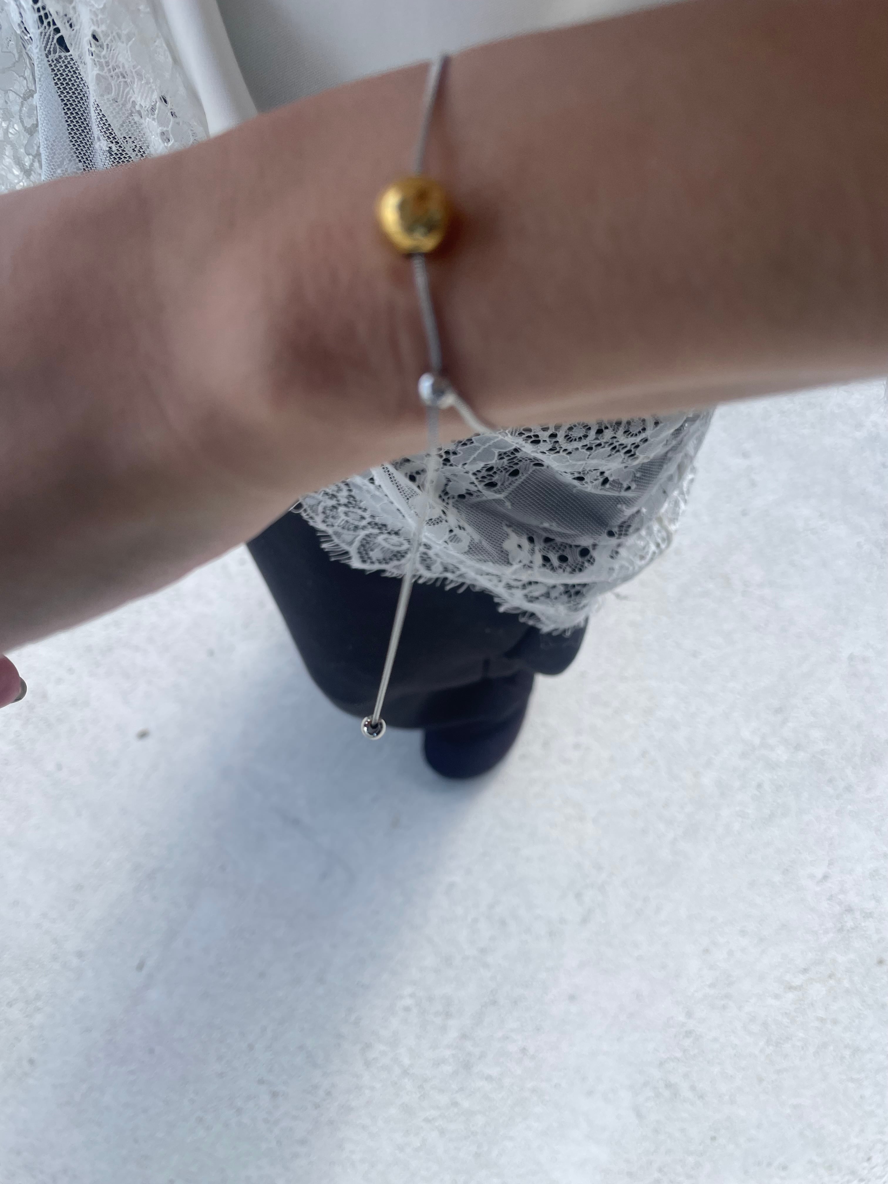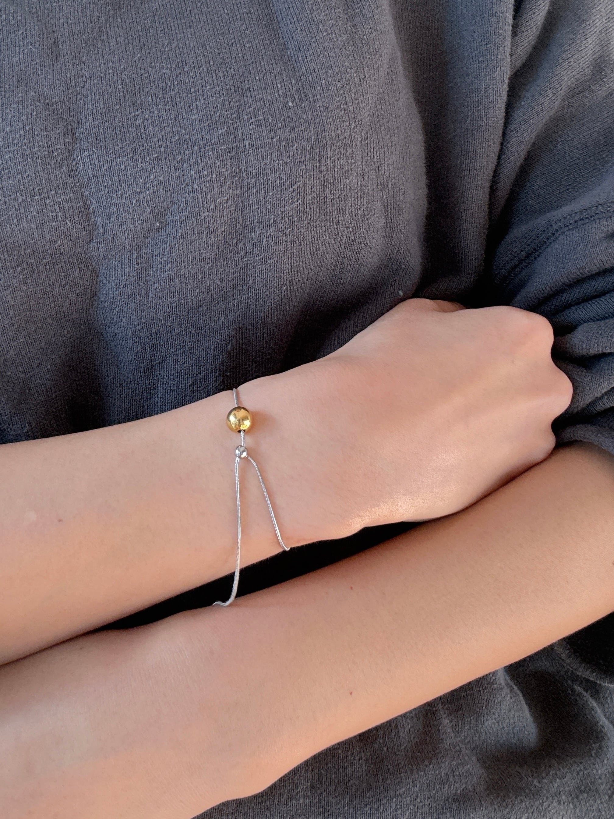 ゴールドとシルバー、2色のボールをアクセントに添えたバイカラーブレスレット。