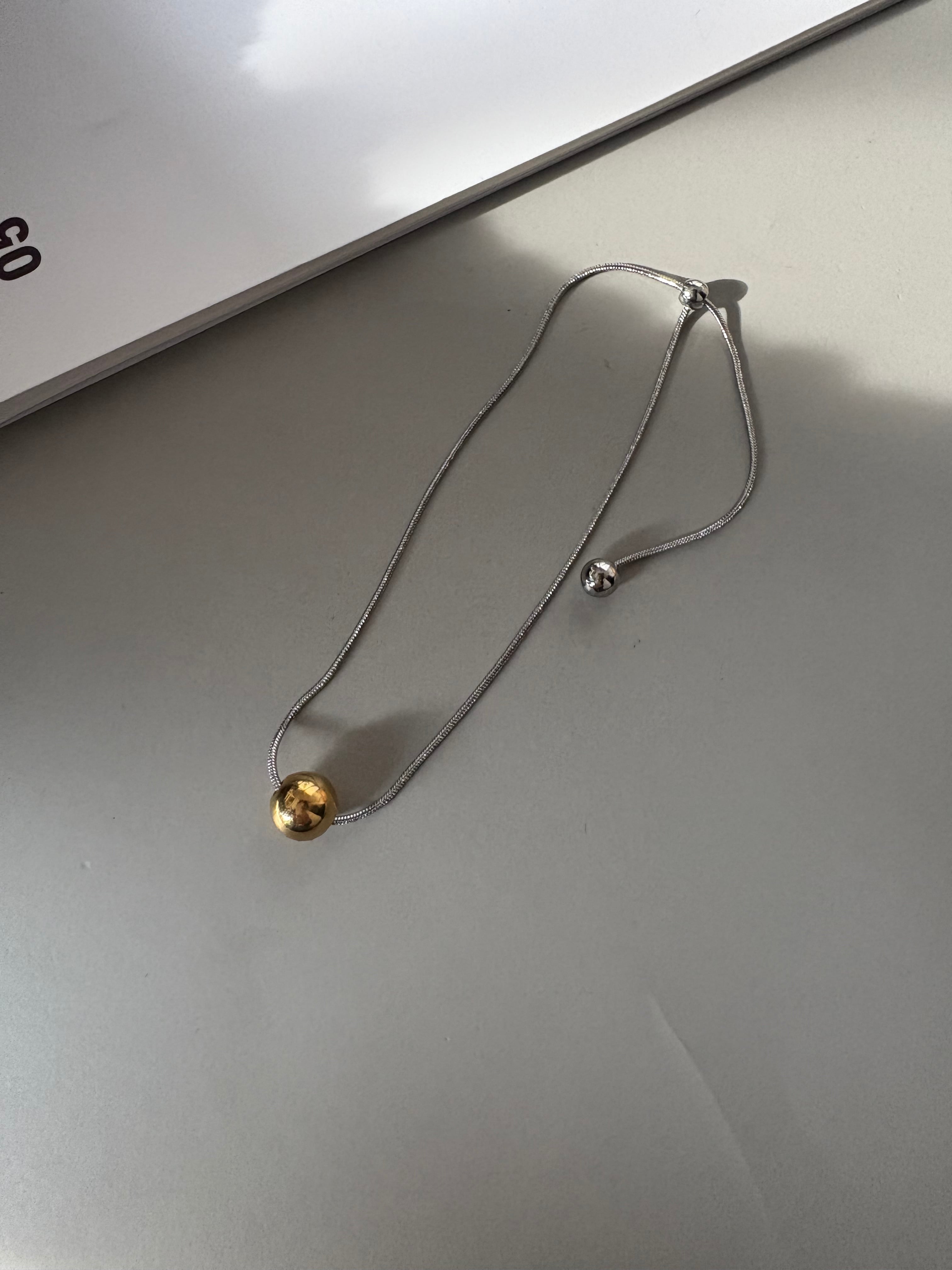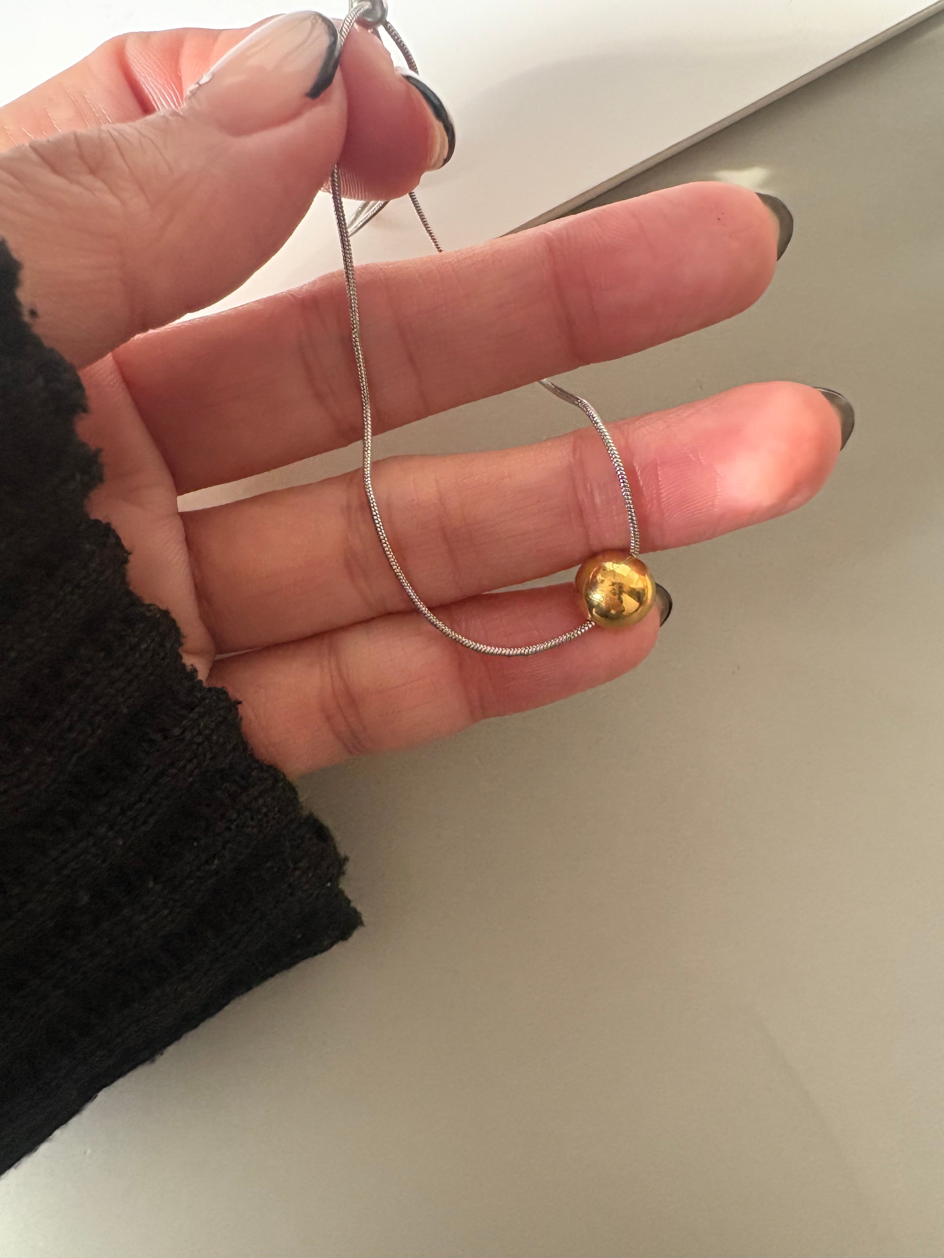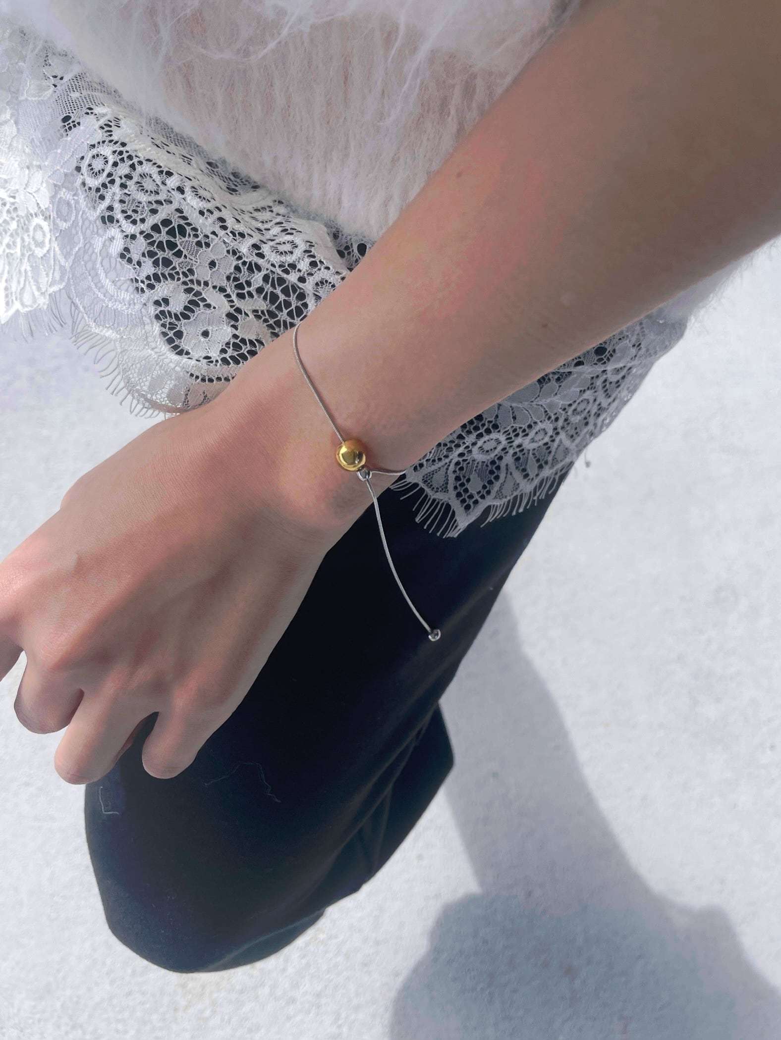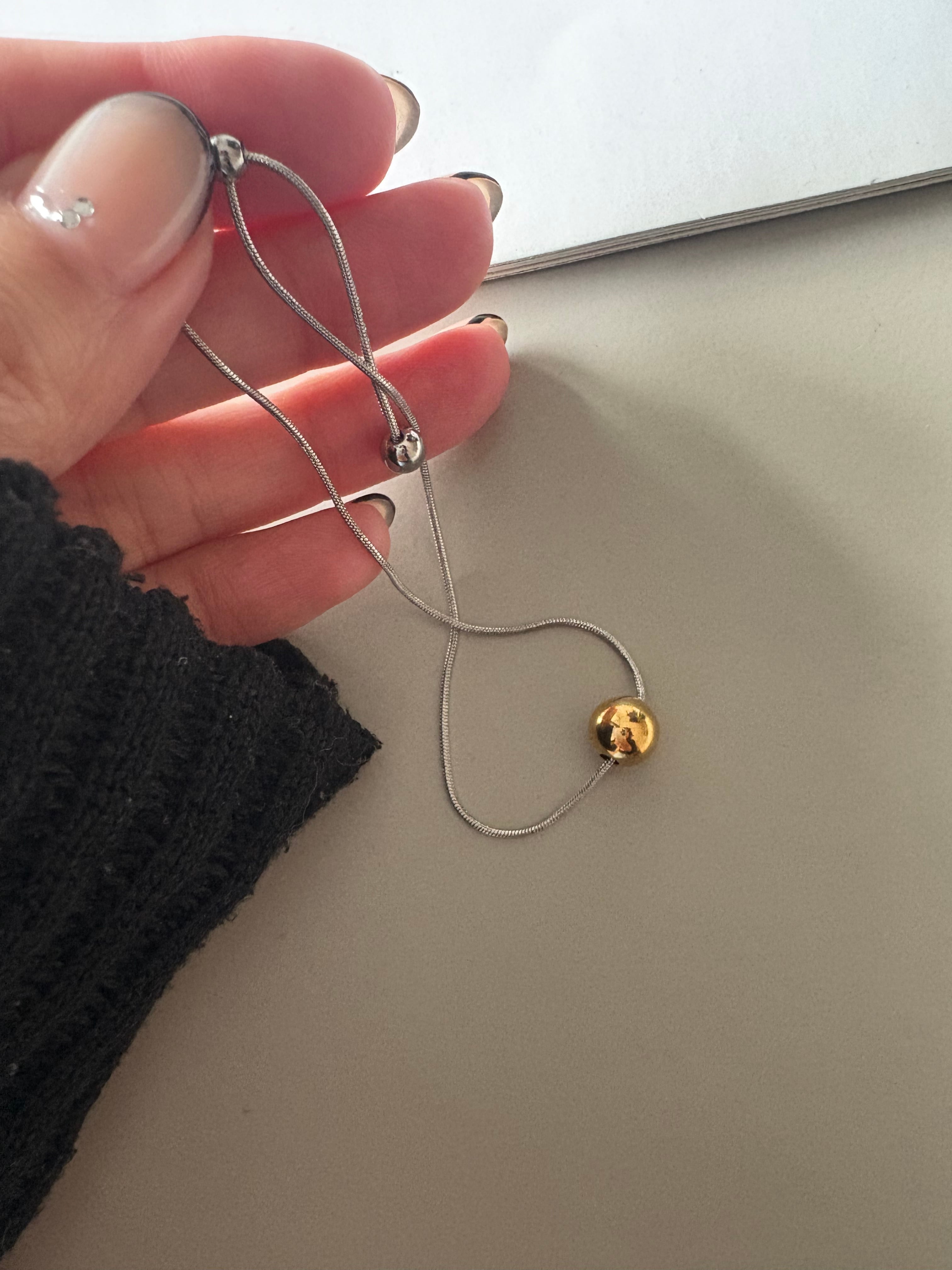 ゴールドとシルバー、2色のボールをアクセントに添えたバイカラーブレスレット。