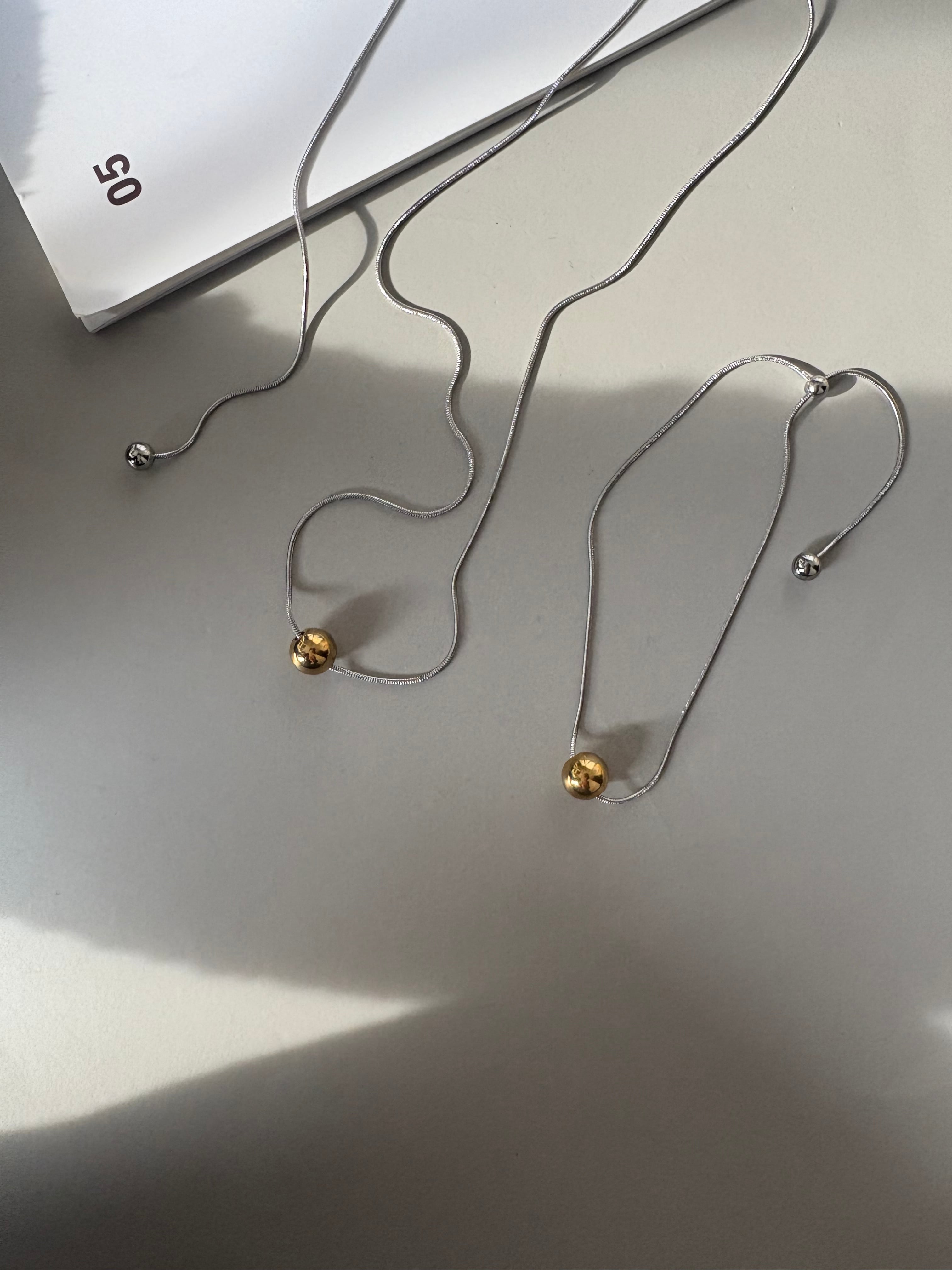 シルバーの繊細なチェーンに、