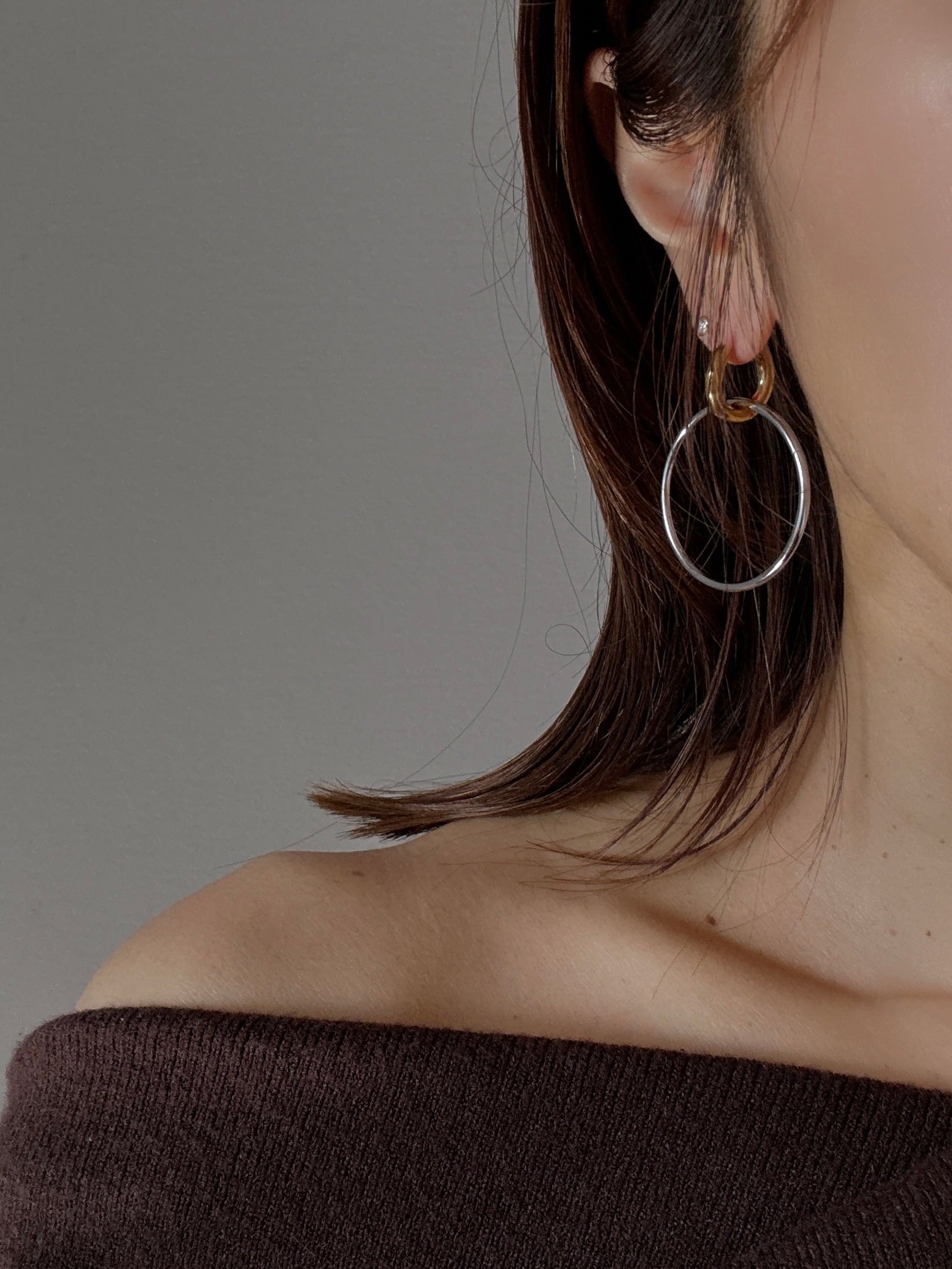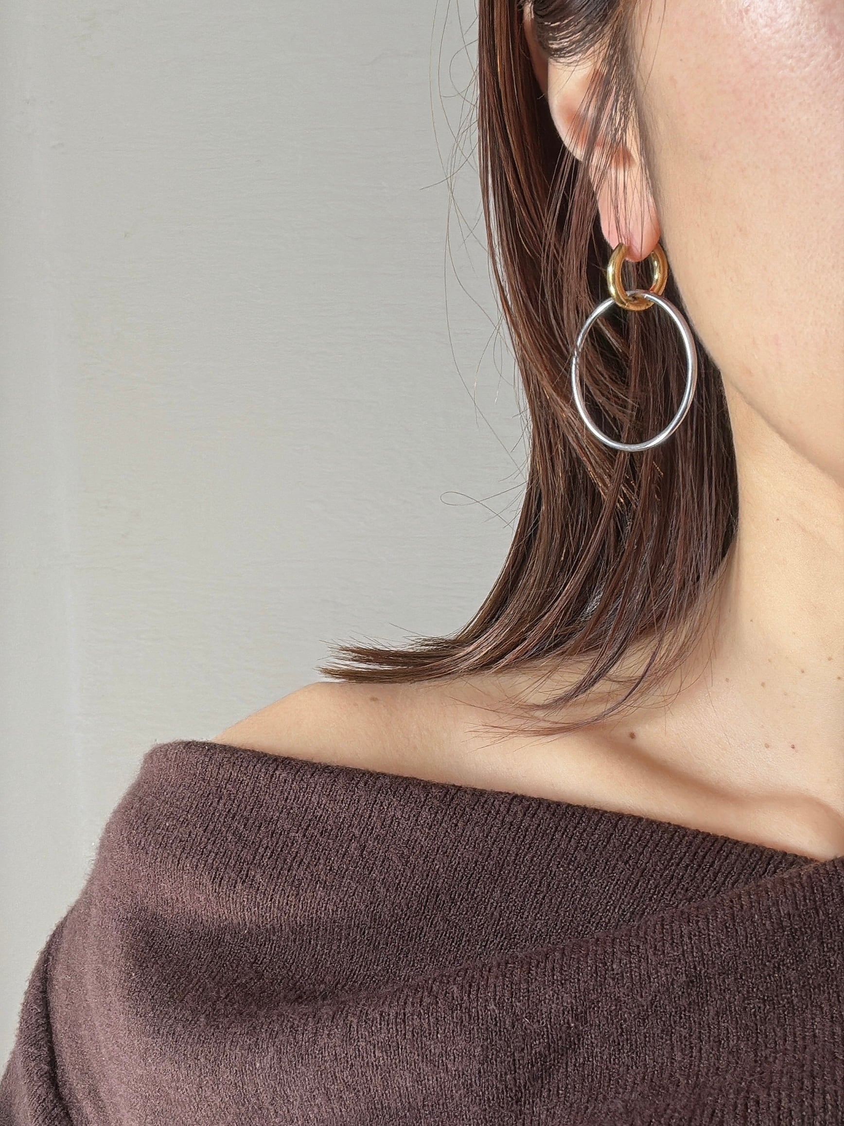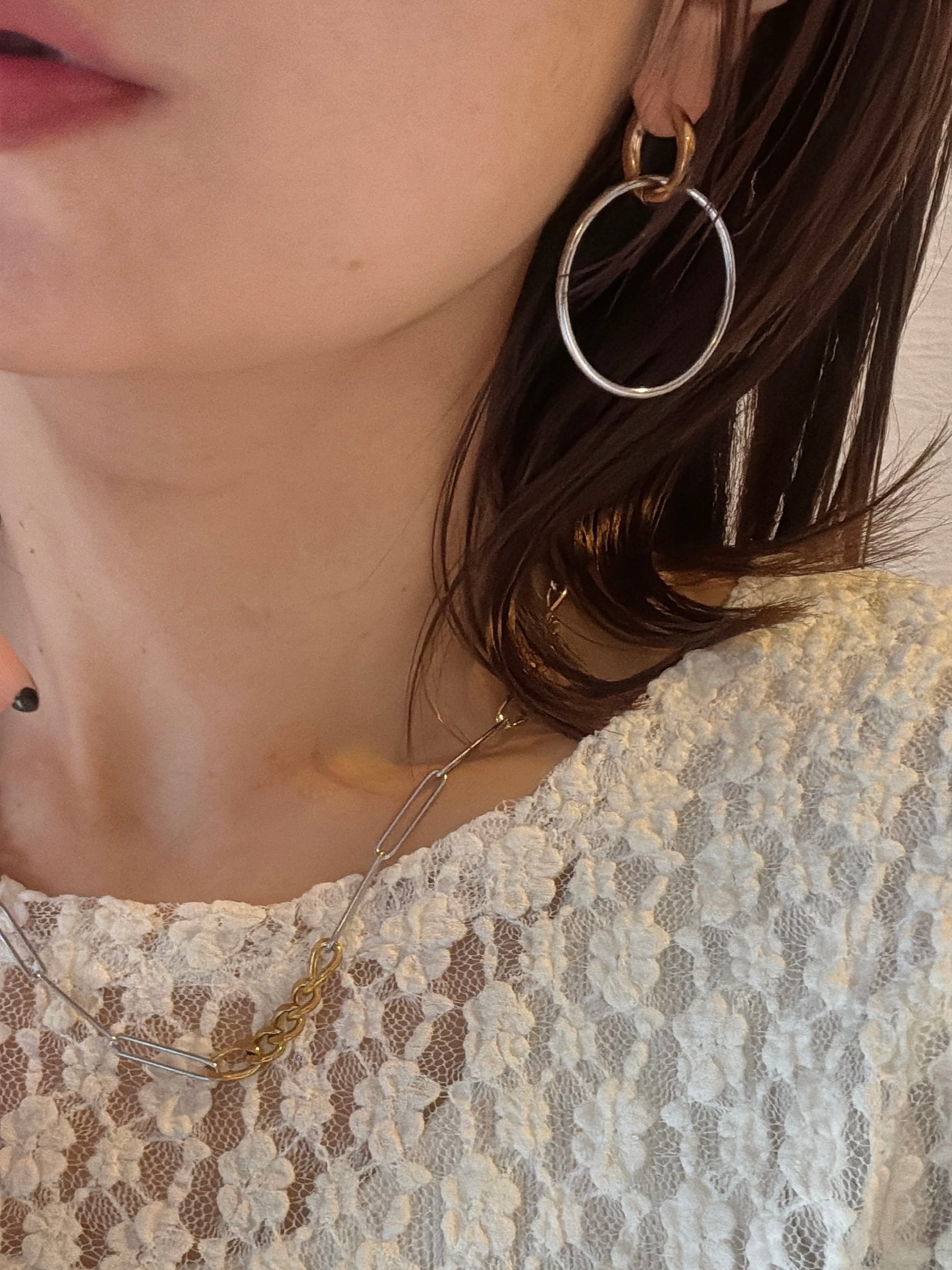 ・シルバーフープを付けて、華やかで印象的に